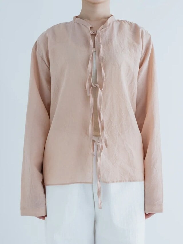 年間を通して長い期間着られる、ブラウスとジャケットの中間のようなアイテム。羽織として、冷房対策、日除け対策にと、とても便利な一枚です。シワ加工されているので、くしゅくしゅと丸めてバッグに入れても大丈夫。旅行や出張などでもとても重宝♪