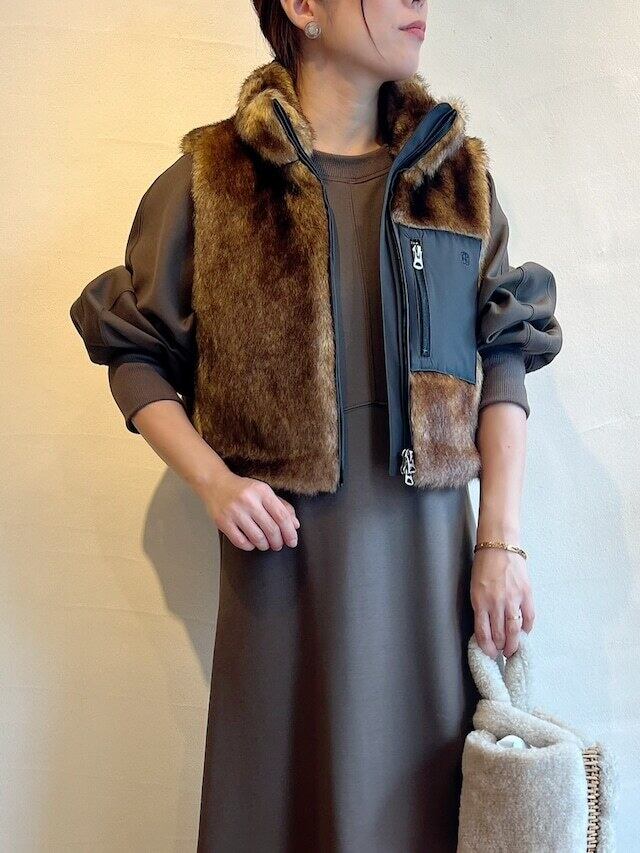 伝統技術で作られた繊細なクラフトファーのベスト。着丈を少し短くして今季らしいコーディネートのバランスを追求しました。