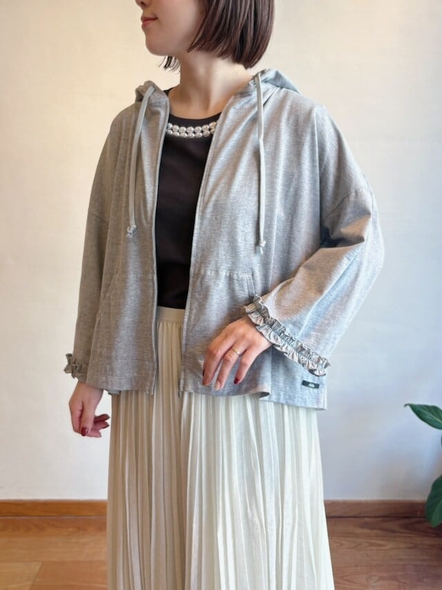 シンプルな中に袖のフリルで“ビリティスらしさ”がしっかり効いて、カジュアルすぎず女性らしく着られるフーディー。軽やかに羽織れて、毎日にちょうどいい一枚。暑い季節の冷房対策や日よけにもぴったりで、夏までしっかり活躍してくれます。
