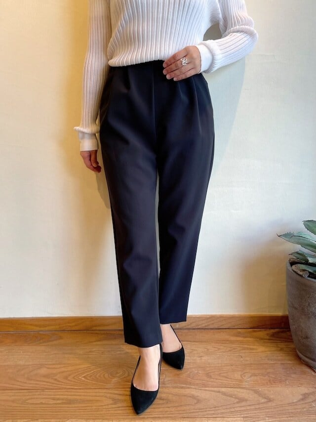 Aライン、ふんわりトップスには、足元スッキリ細身パンツがベストバランス。履き心地は楽なのにきちんと見える、日常のどんな時にもフィットする一本。ご自宅でお洗濯できる、嬉しいハンドウォッシャブル対応。