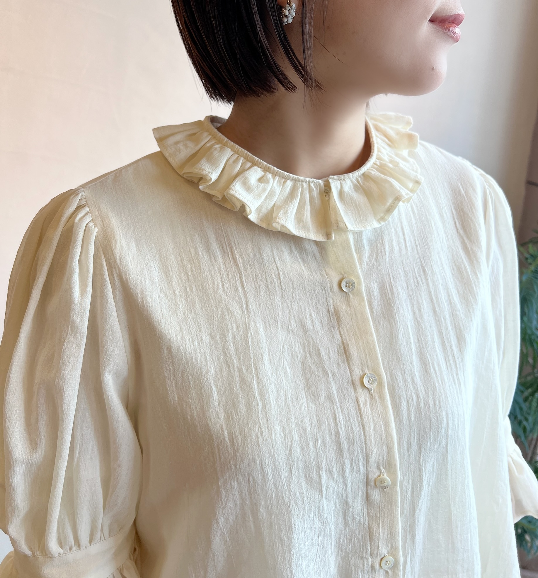 ◆パリジェンヌブラウス (Half Sleeve) ¥28600税込 BEIGE / BLACK