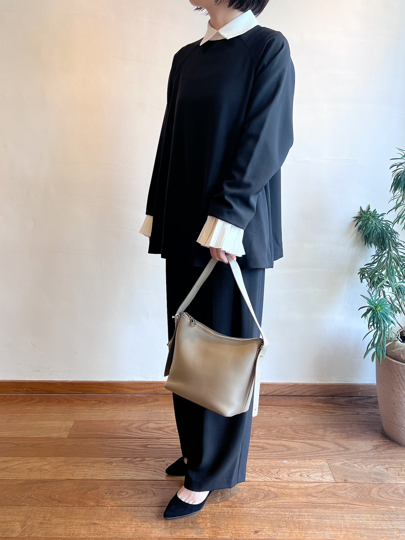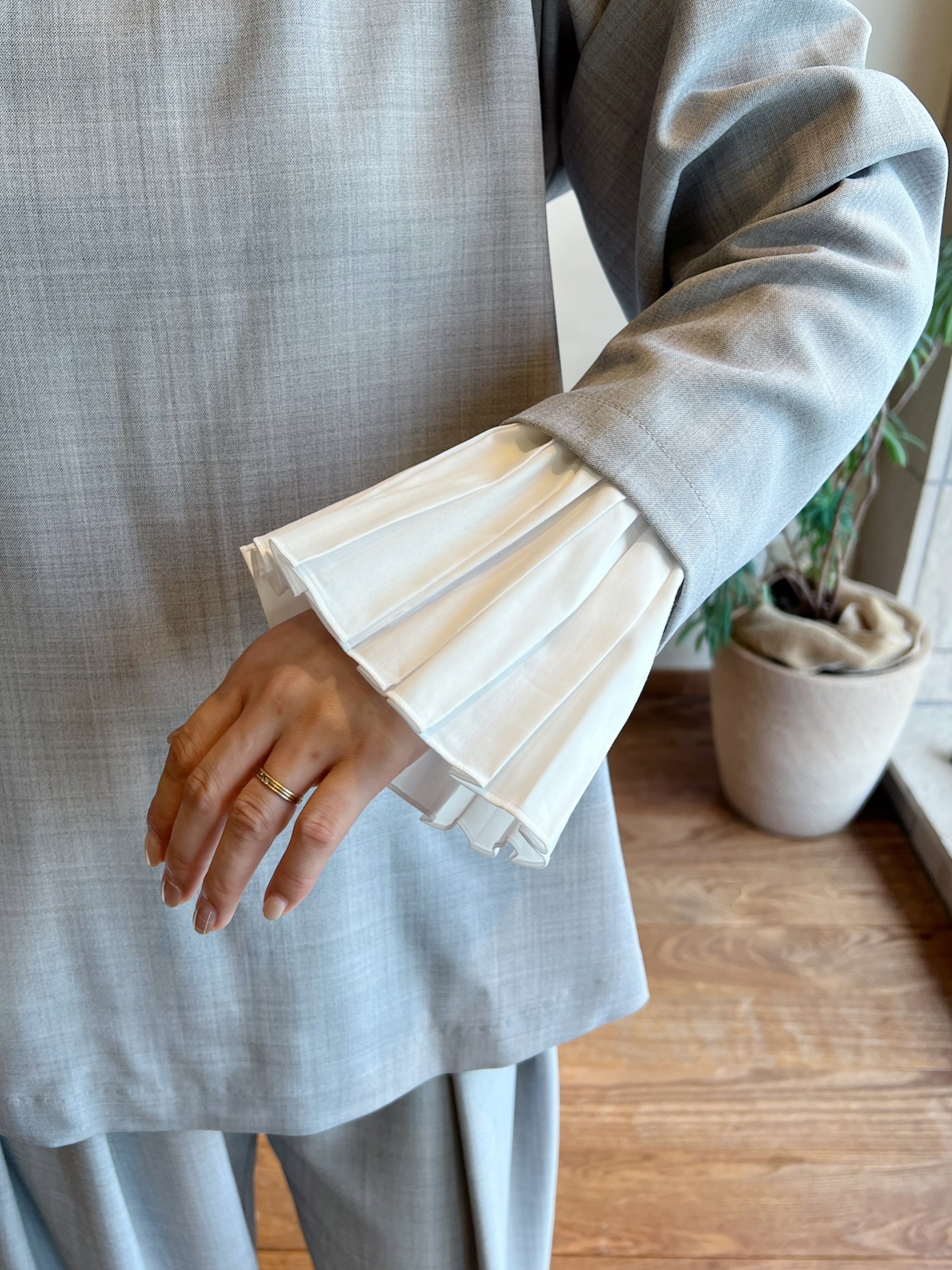 ◆カフス付きブラウス ¥18480税込 L.GRAY / BLACK (カフス取り外し可能)