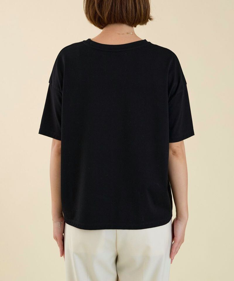 SOLD OUT 目を惹くフロッキープリントがポイントのロゴTシャツ。立体感のあるプリントは、柔らかいフロッキー加工による独特の質感でシンプルなロゴが一気にスタイリッシュに。着回しのしやすいストレートラインでどんなボトムスとの相性もよく、コーディネートの幅がぐんと広がります。詰まり過ぎないクルーネックでアクセサリーも映えるシルエット。袖幅も広すぎず、大人な雰囲気のTシャツとしてお楽しみいただけます。