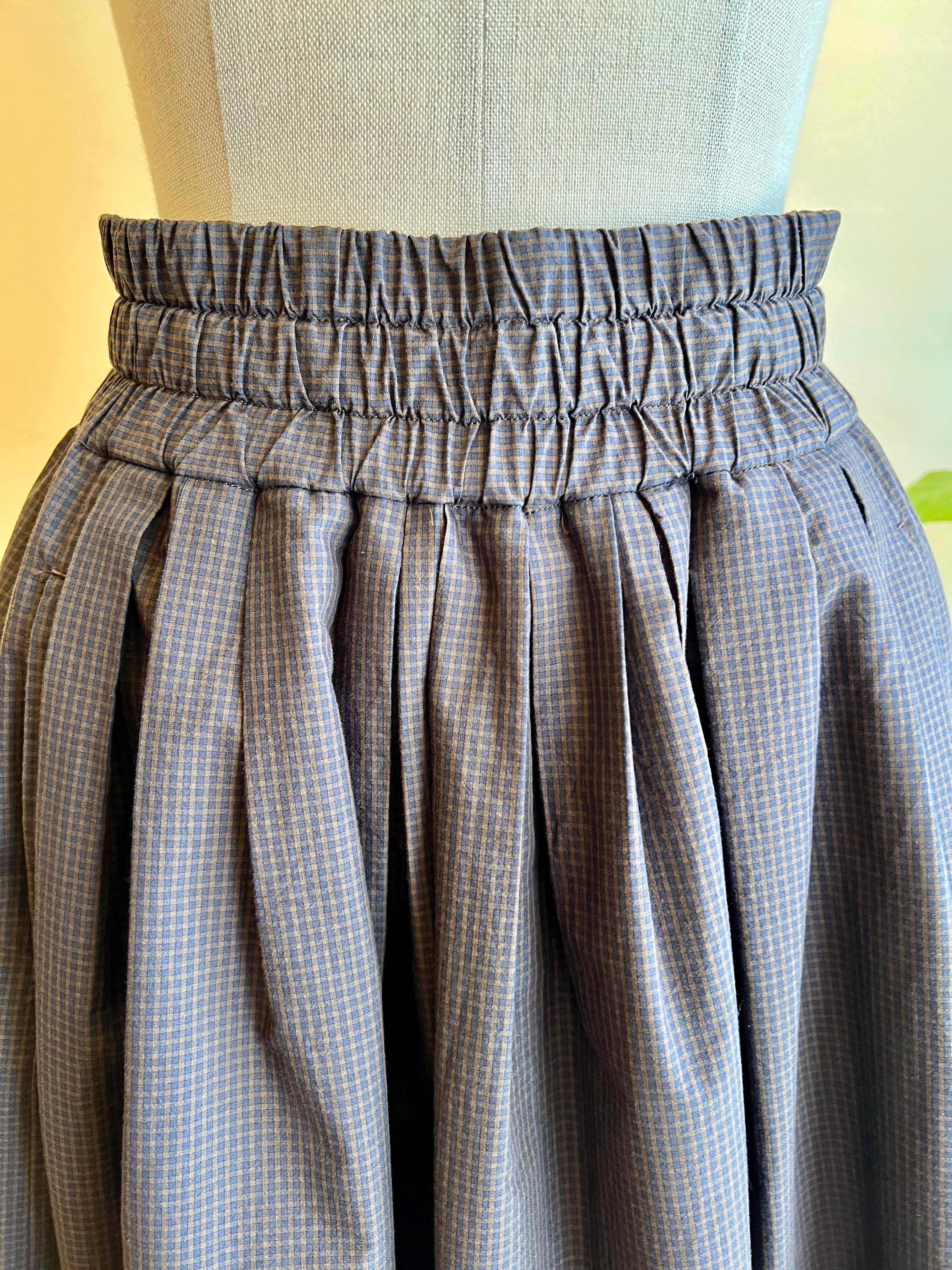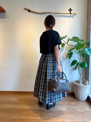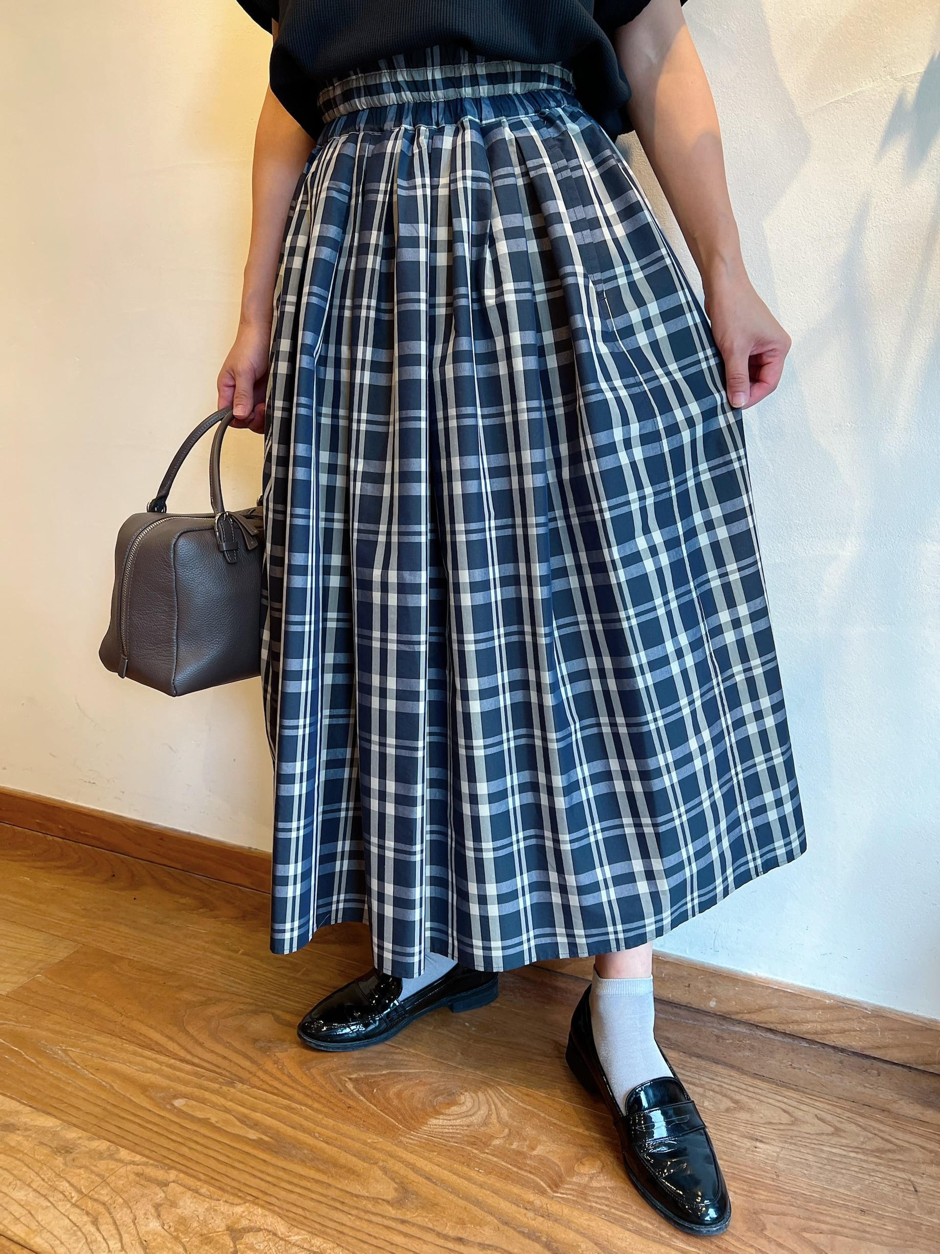 SOLD OUT オーガニックコットンとリサイクルPE交織タフタを使用したイージーフレアーながら、ランダムタックですっきりとしたシルエットを展開しつつ、フロントには開きの無いスウェットライクなイージー仕様なので気軽に穿ける一枚に仕上げています。