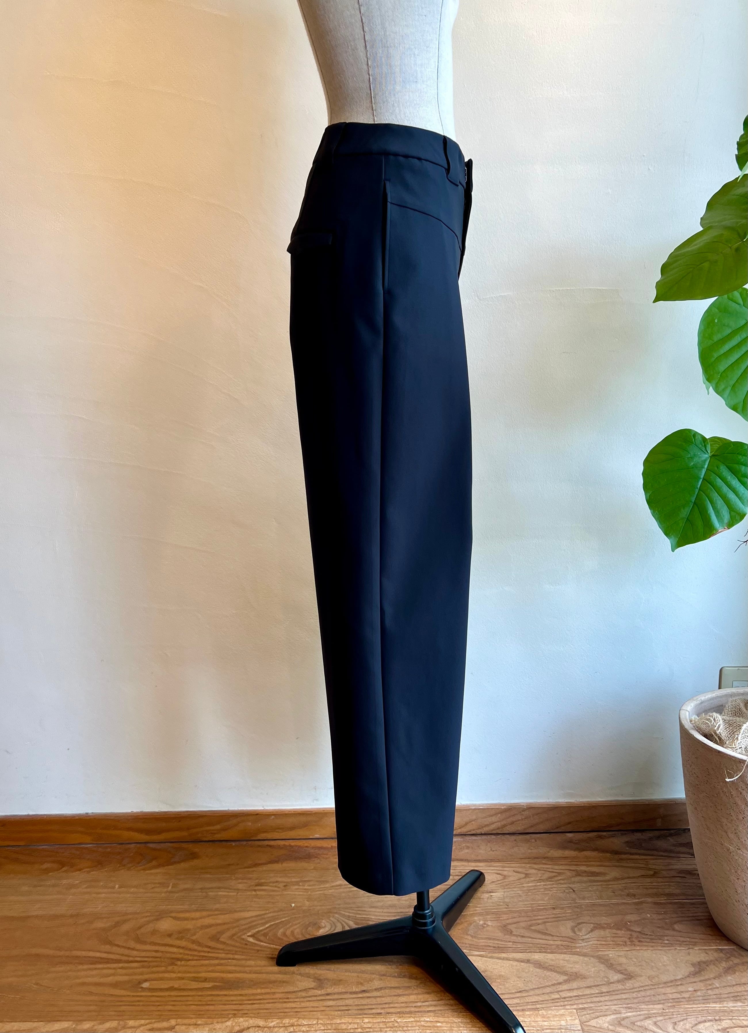 srieee(シュリ)の新型カーブパンツ。今回は大人モードをイメージしたカーブパンツです。お腹からヒップにかけて斜めに走る切替、そこからの内タックがポイント。ウエストはストレッチの効いたリラックス感のある着心地。素材とデザインがパーフェクトにマッチしたパンツです!