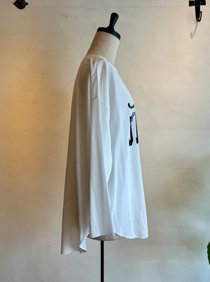 SOLD OUT 半袖Tシャツが大人気だった、 MARGAUX VINTAGE(マルゴーヴィンテージ)から秋の一番最初に使えるシアーロンTが登場!シワになりにくく、とろみ感が上品綺麗なスタイリングを叶えます。ほどよいシアー感が涼しげな印象を残しつつ、ベストやサロペットなどと相性もよく秋のレイヤードスタイルをよりお洒落に見せてくれるアイテム。リラックス感あるドルマンシルエットと、腕先にかけてはすっきりするシルエットが女性らしさを引き立てます。