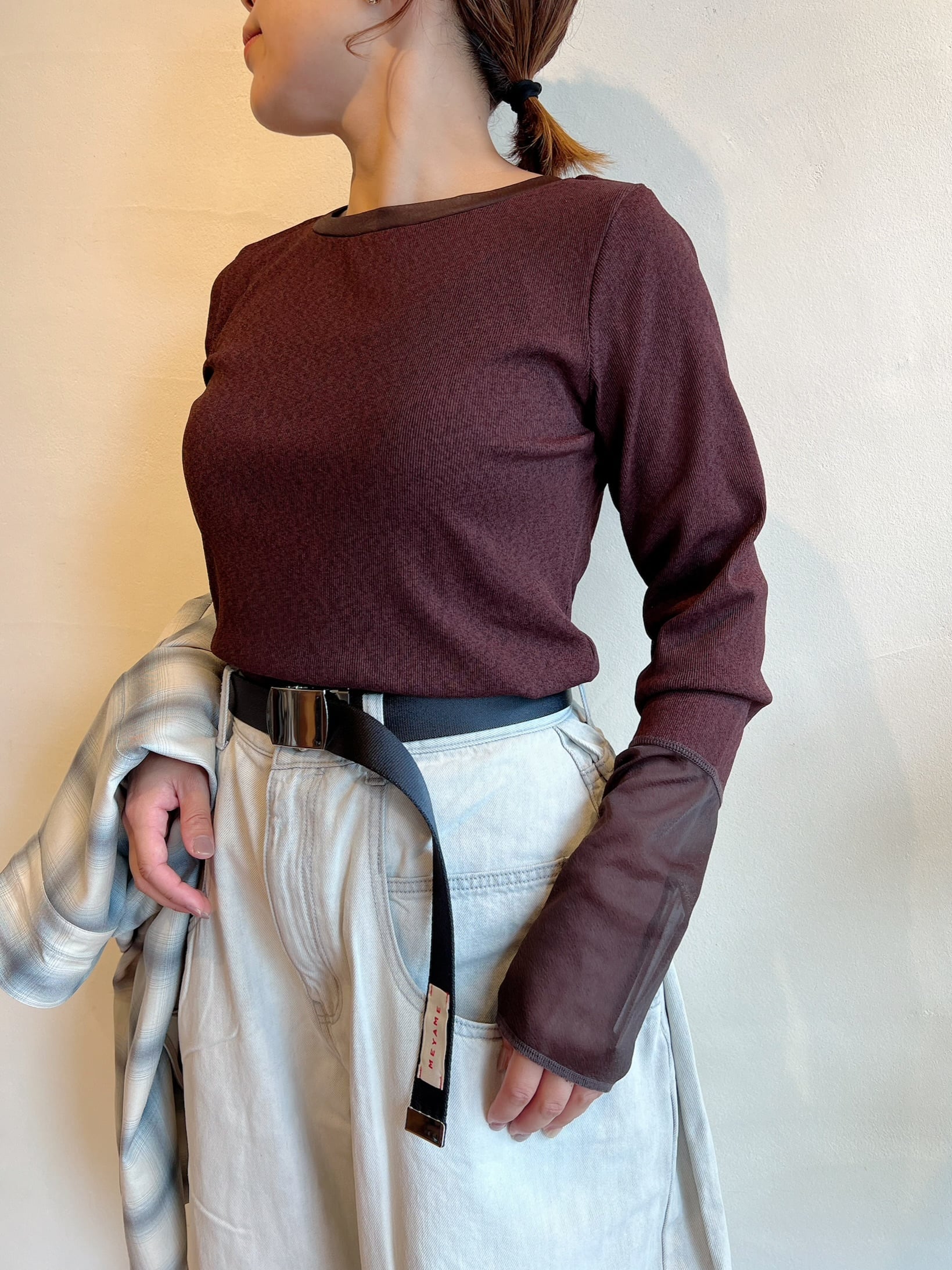 シンプルながらもエレガントな雰囲気を漂わせるリブシアープルオーバー。柔らかな素材感とリブ編みのデザインが、カジュアルにもきれいめにも活躍します。1枚ではもちろん、ニットやベストのインナーとして季節に合わせたレイヤードスタイルとの相性が抜群です。