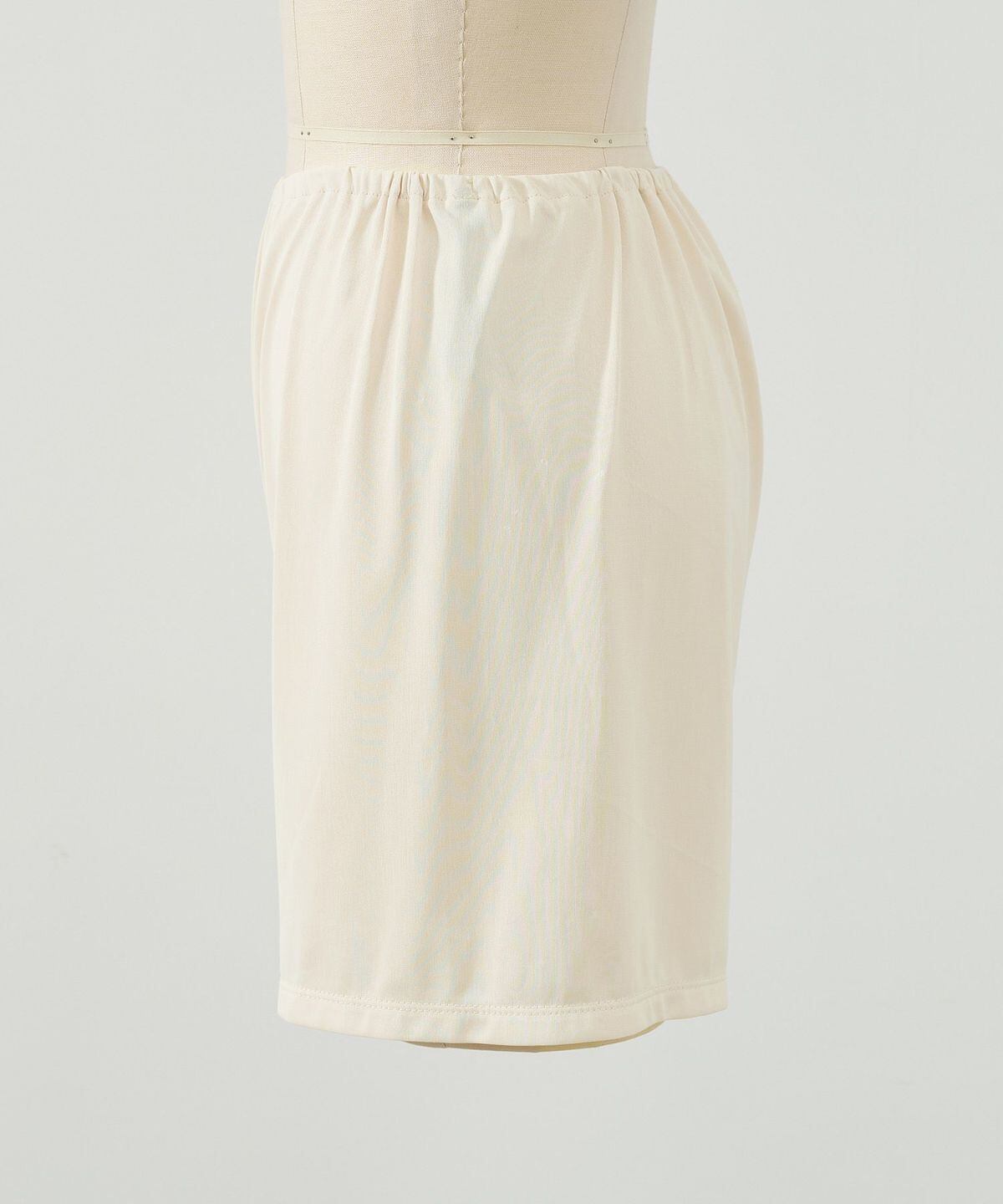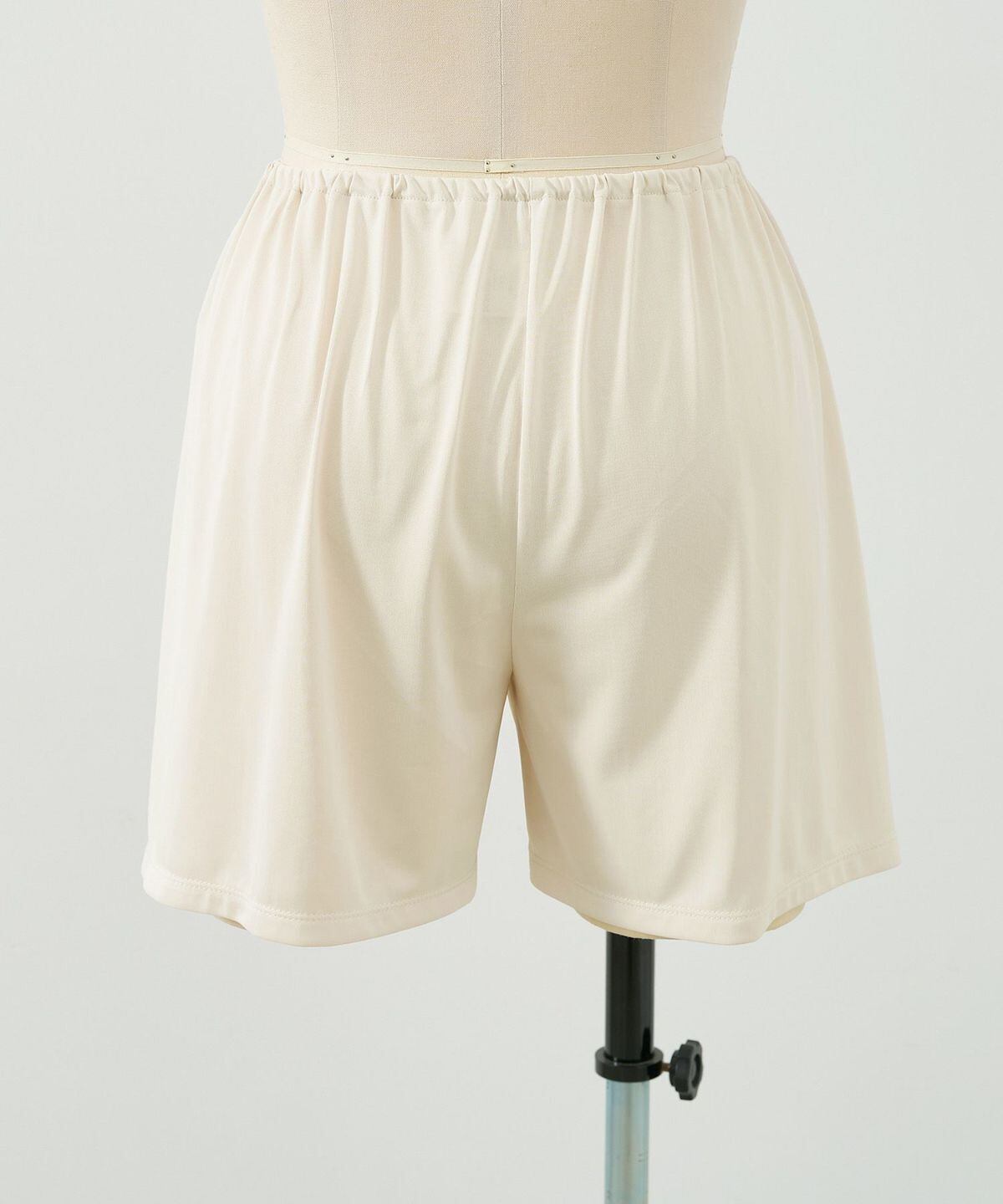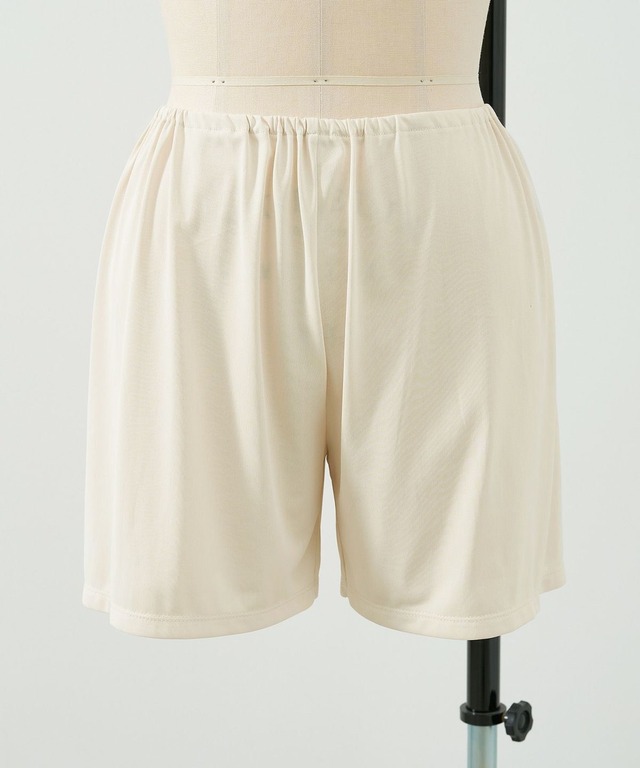 一枚あると便利なペチパンツが登場です。白いボトムなどの透け感軽減やボトムの生地の摩擦が気になる際などにオススメです。速乾性のある素材なので、デイリーに着回しやすいアイテムです。滑らかな肌あたり・程よくマットで上品な表情感の生地を使用しています。ジャージー素材なので、伸びもよくストレスフリーな着心地です。さらっと速乾性があり、デイリーに使い回せます。