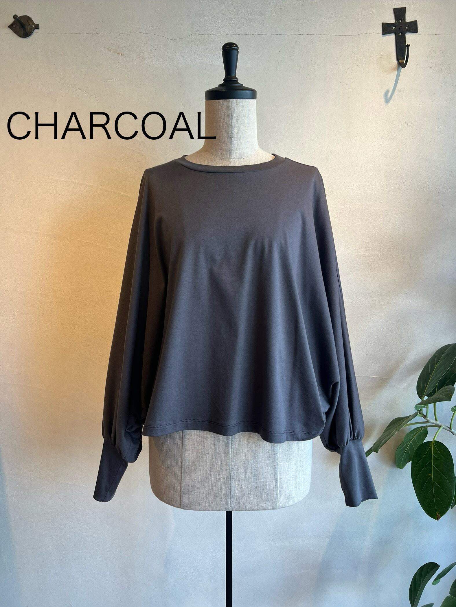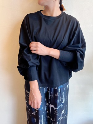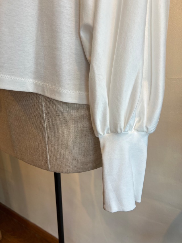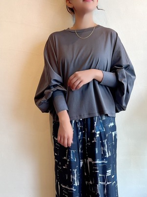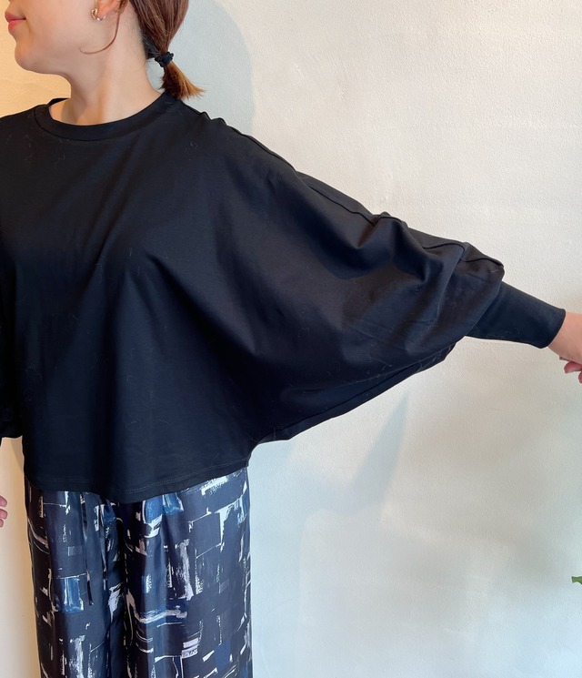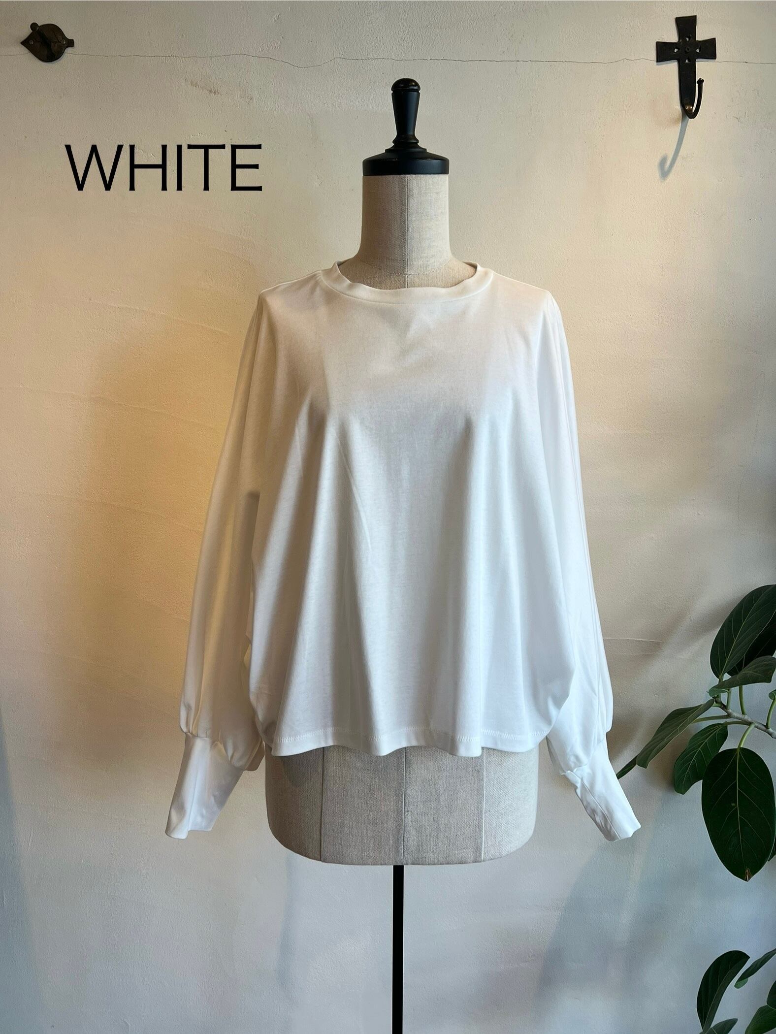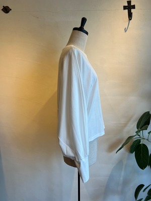 オーガニックコットンのスムース天竺素材を使用しています。カフス付きのドルマンスリーブTシャツです。優雅にブラウスを着用しているようなデザインですので、ラフすぎずオフィスでも着用していただけます。
