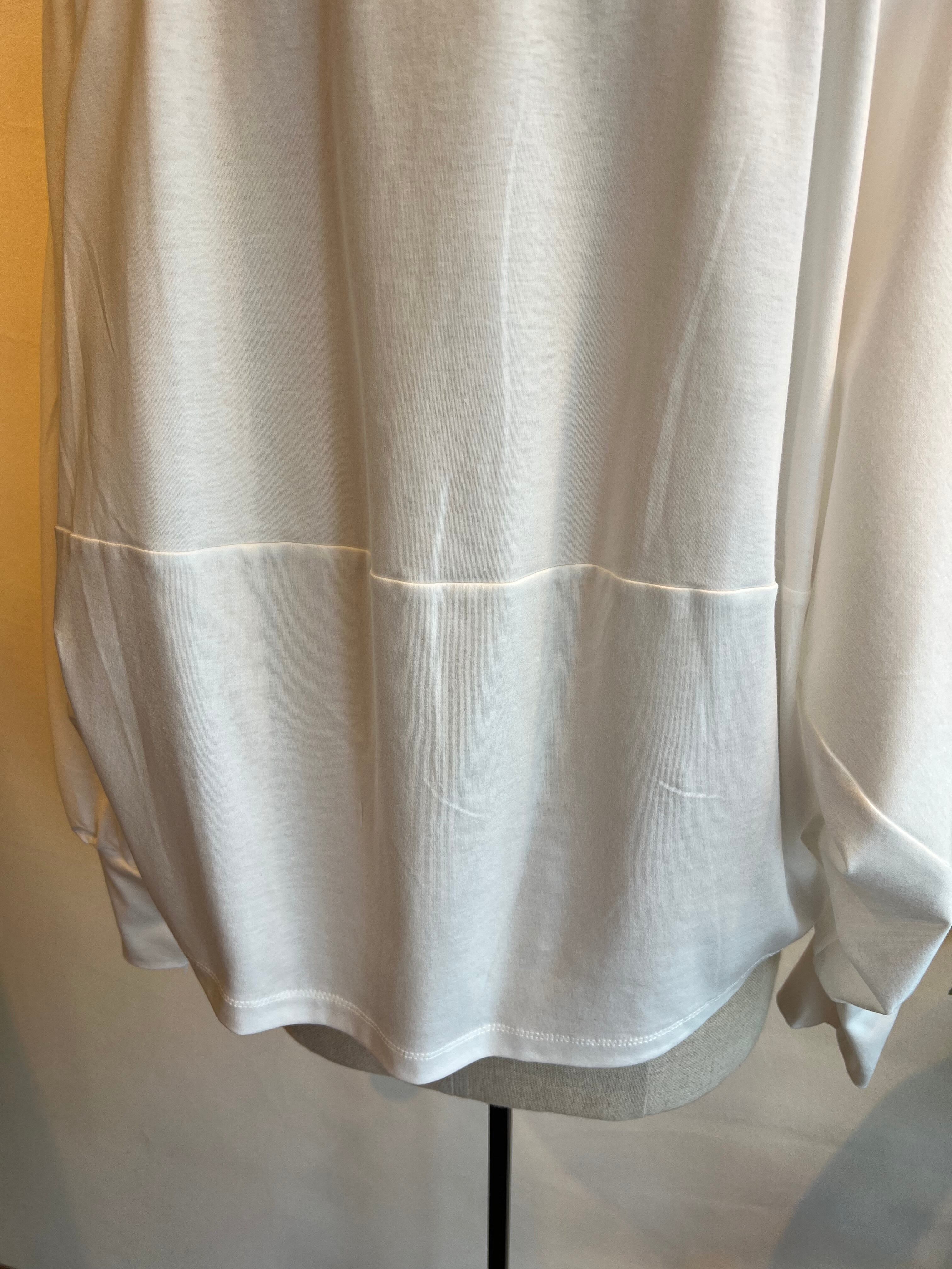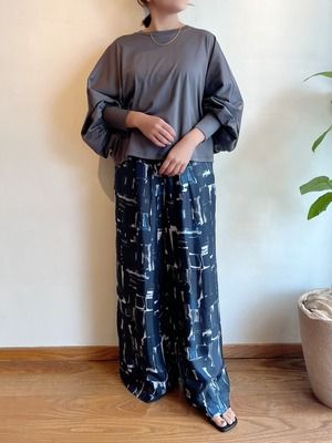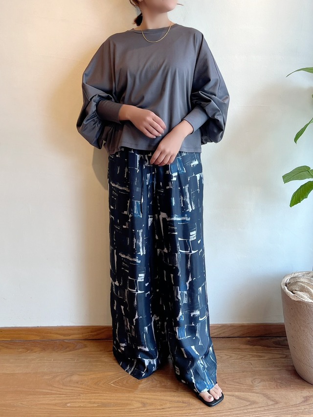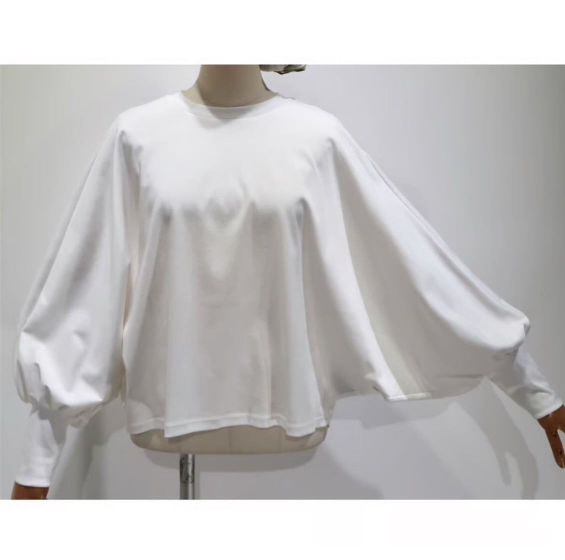 オーガニックコットンのスムース天竺素材を使用しています。カフス付きのドルマンスリーブTシャツです。優雅にブラウスを着用しているようなデザインですので、ラフすぎずオフィスでも着用していただけます。
