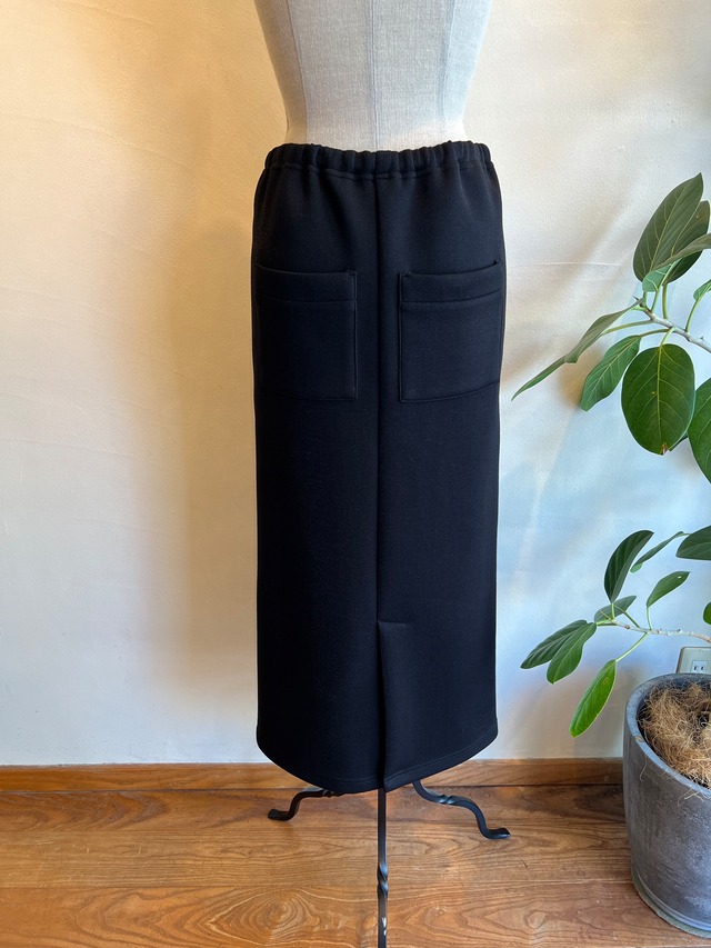 SOLD OUT 毎シーズンご好評頂き、お問い合わせの多いSrieee(シュリ)のダンボールニットタイトスカート。今シーズンは光沢感のあるスパークナイロン糸を使った新素材で登場です。ウエスト内側のドローストリングスでサイズの調整ができ、サイドラインが少し前にくることで細見えします。ヒップ部分の低めのポケットがカジュアル感をプラス。軽量でスポンディッシュな膨らみと、柔らかさからくる穿き心地はもちろん健在です。