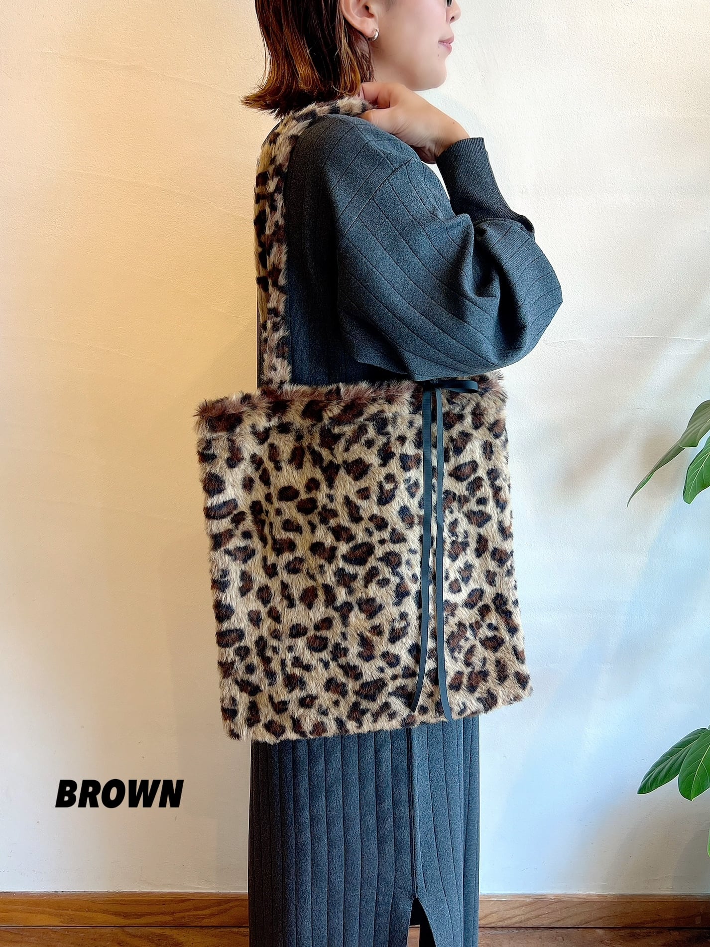 コーディネートにプラスワンで気分高まる、レオパード柄のトートバッグ。ふわふわのファー素材が秋冬のコーディネートにパッと映えそう。すっきりとしたシンプルなサイズ感ながら、財布やスマートフォン、ポーチなど、日常の必需品をしっかりと収納できる実用性も魅力。単調になりがちな秋冬の装いに投入するだけで、スタイル全体をクラスアップしてくれそう。