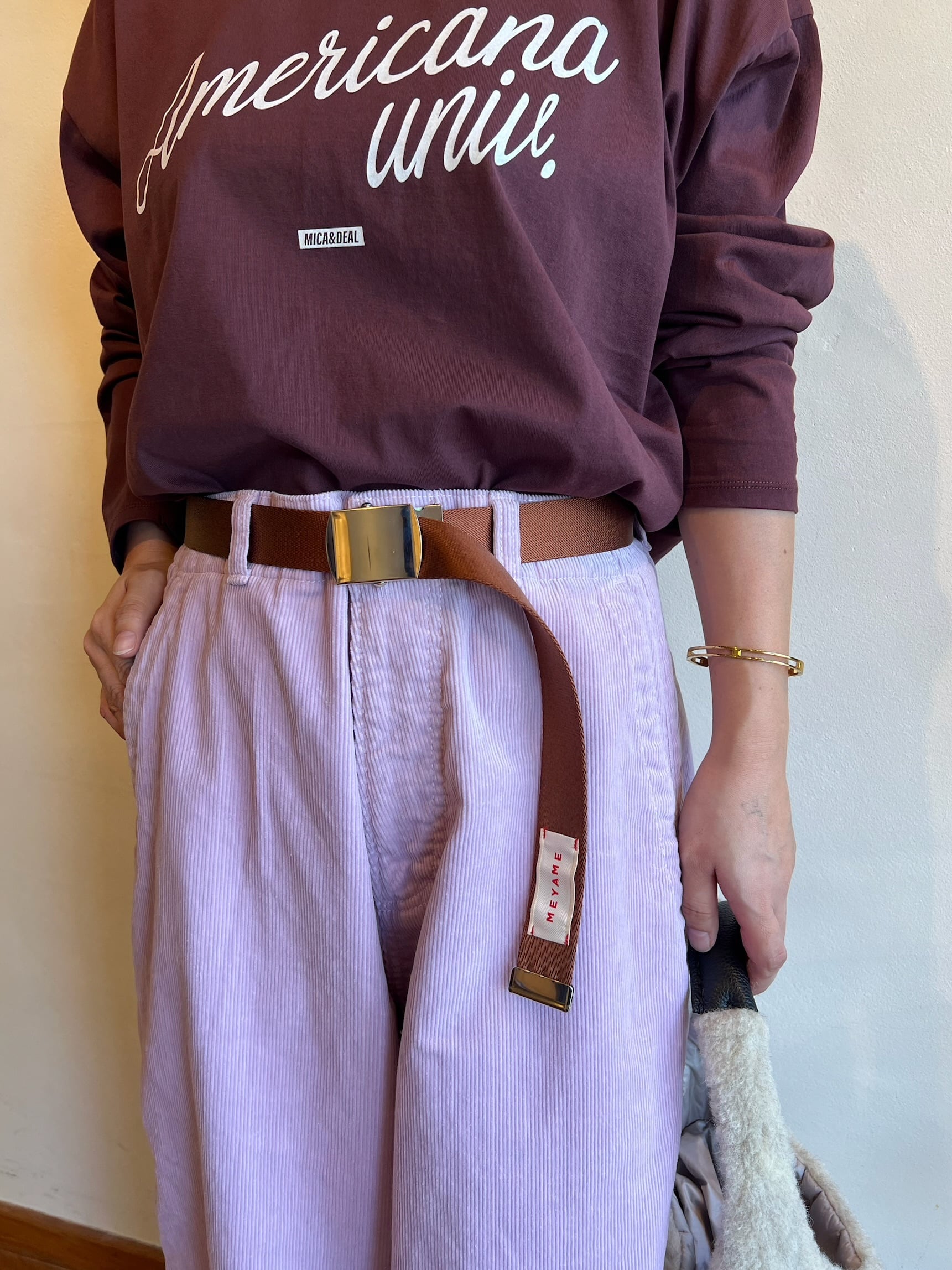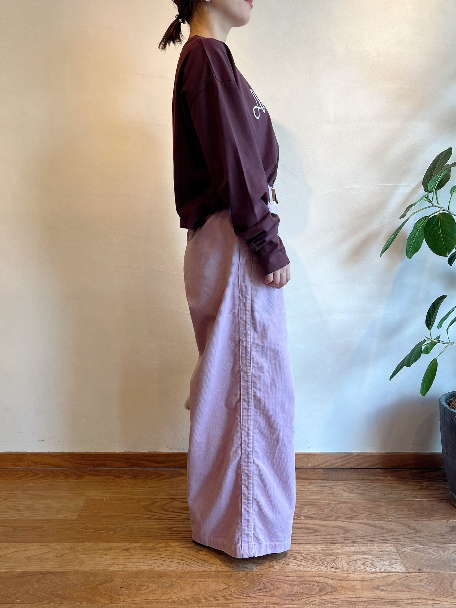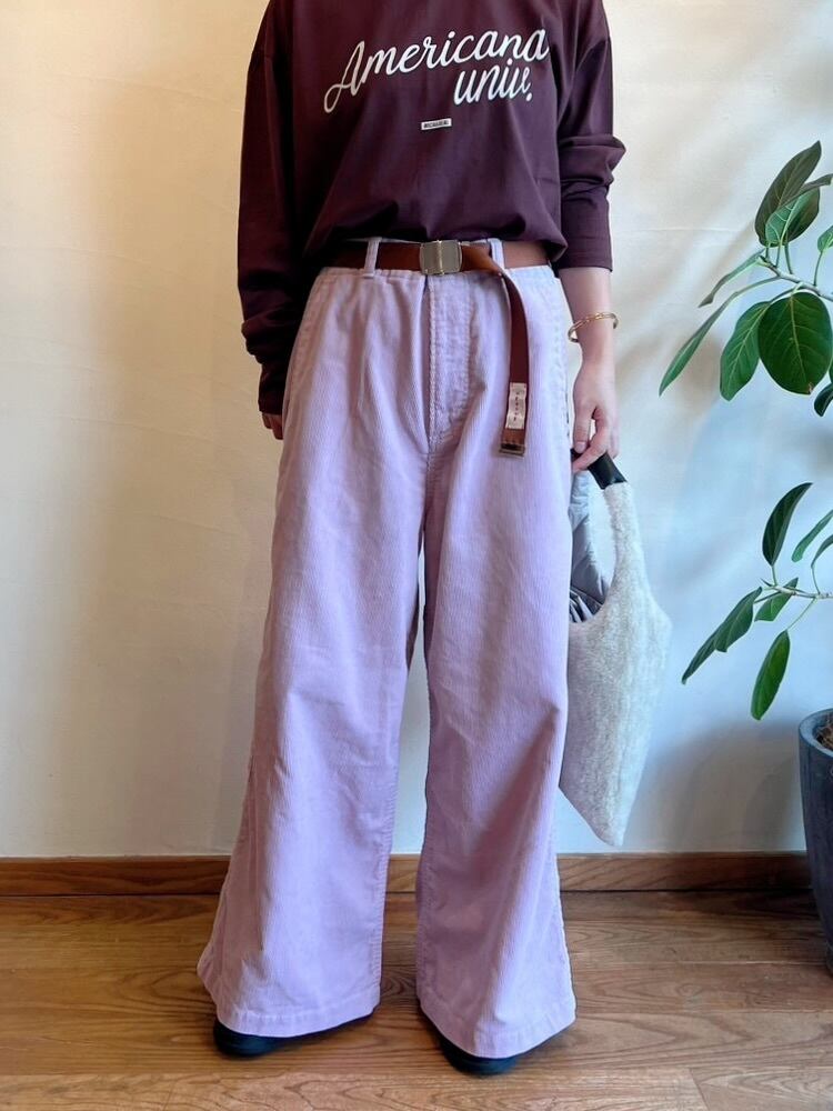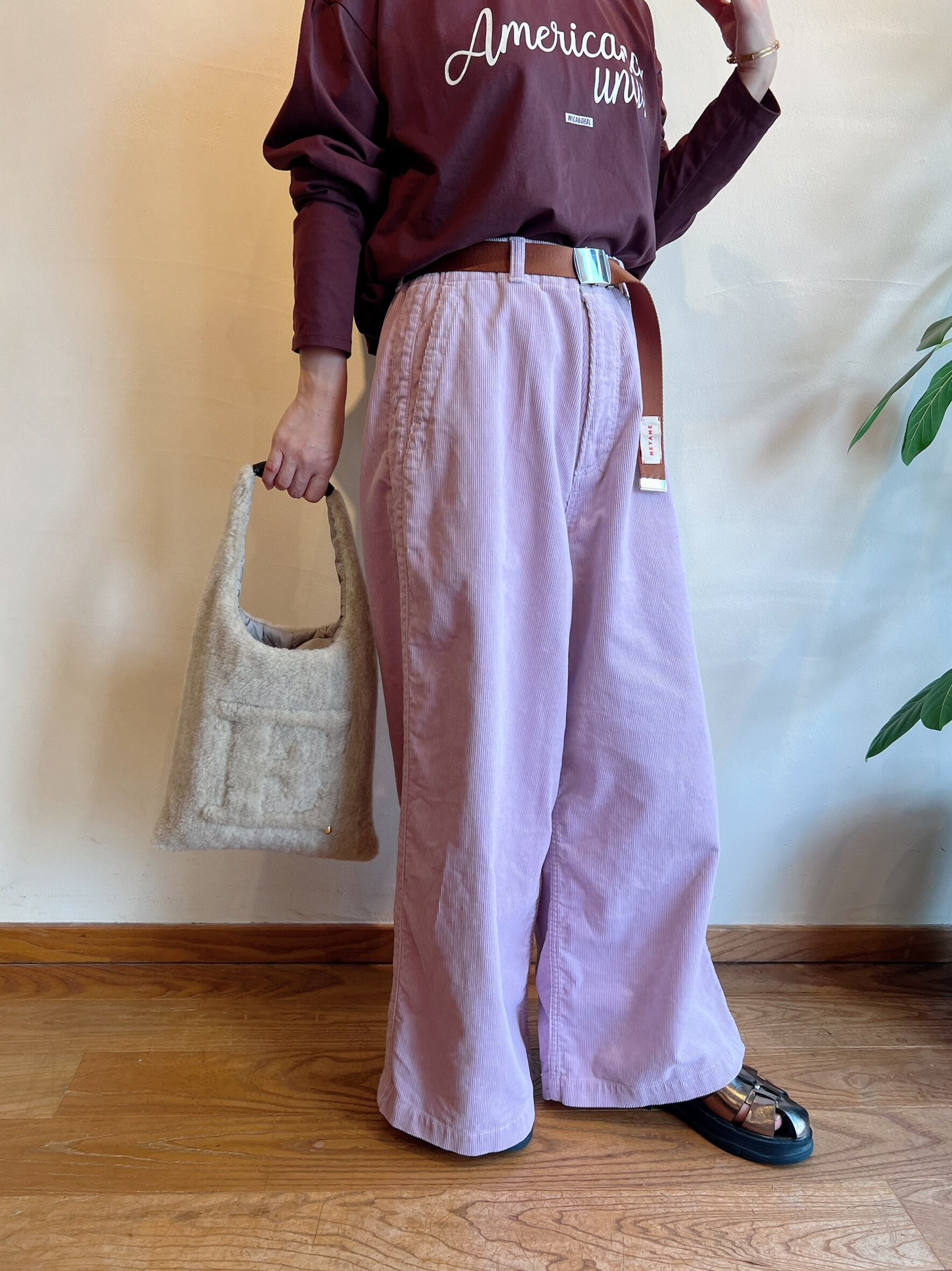 SOLD OUT 思いっきりワイドなシルエットが特徴のMEYAMEの定番パンツ SIDE LINE WIDE PANTS を秋冬はコーデュロイでお作りました。全体が間延びしないようにサイドラインを入れてシャープさを。ややコンパクトなトップスと相性抜群。”これぞコーデュロイ" といった趣のある太畝と上品な光沢と深みのある色が、スタイリングにグッと秋冬らしさをプラスしてくれます。その季節らしいアイテムを着る豊かさを感じられるパンツです。 ベルトと合わてのスタイリングもおすすめ。お家で洗濯可能。ます。
