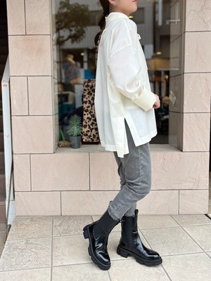 な上に、履き口はサイドゴアでゴムなので足入れは驚くほどラクです。インソールの快適さは他のMANAのシューズと同様。パンツにもスカートにもすっと馴染んで、足元に程よい主張をプラスします。