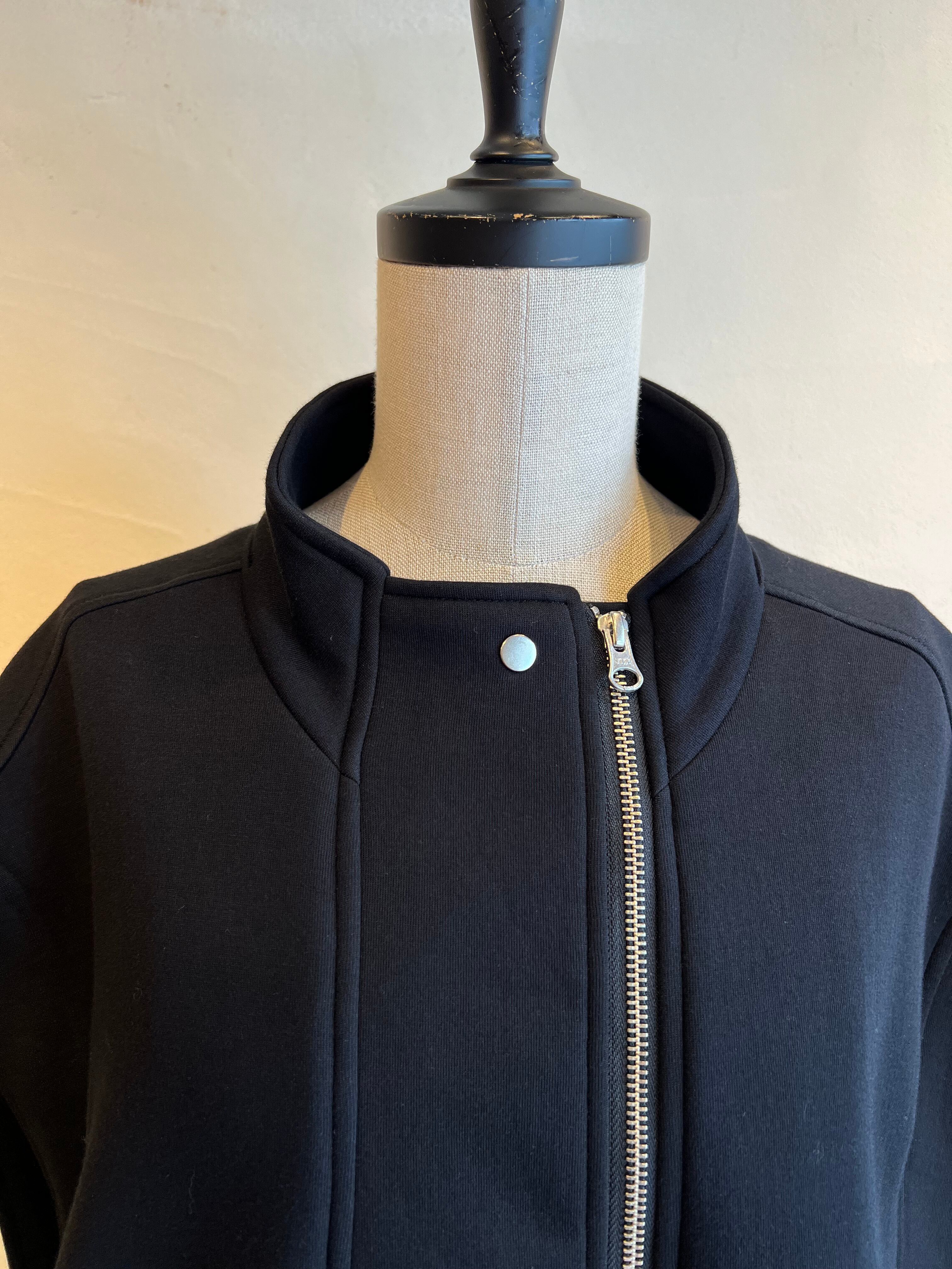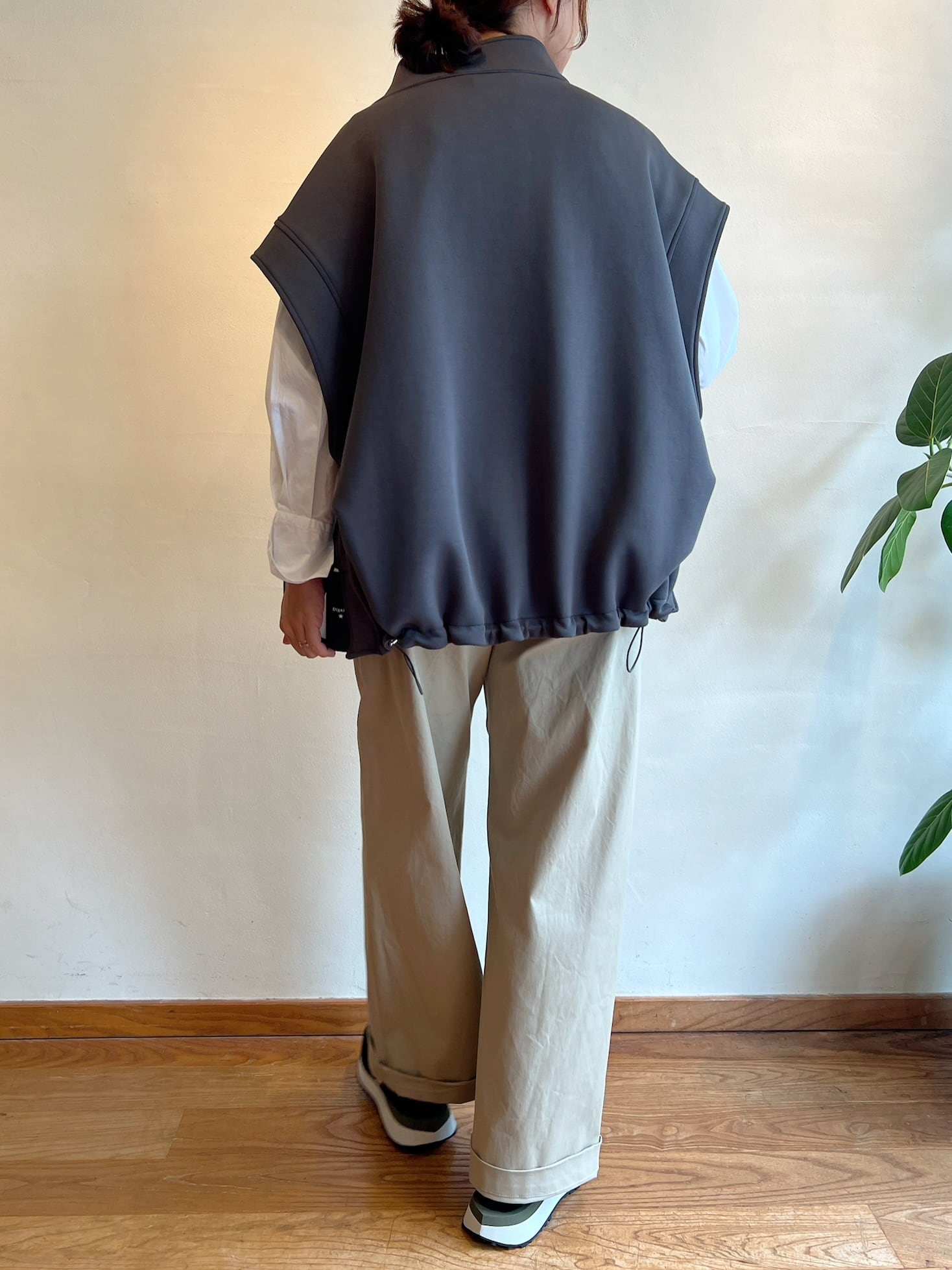 裾はドロスト仕様なのでお好みで調節できます。ダンボール素材で軽く暖かく前を閉めると立ち襟で首元まで暖かく着られます。カットソーにはもちろんウールやモヘヤなどとも相性の良い素材感でコーディネートのしやすさもポイントです。
