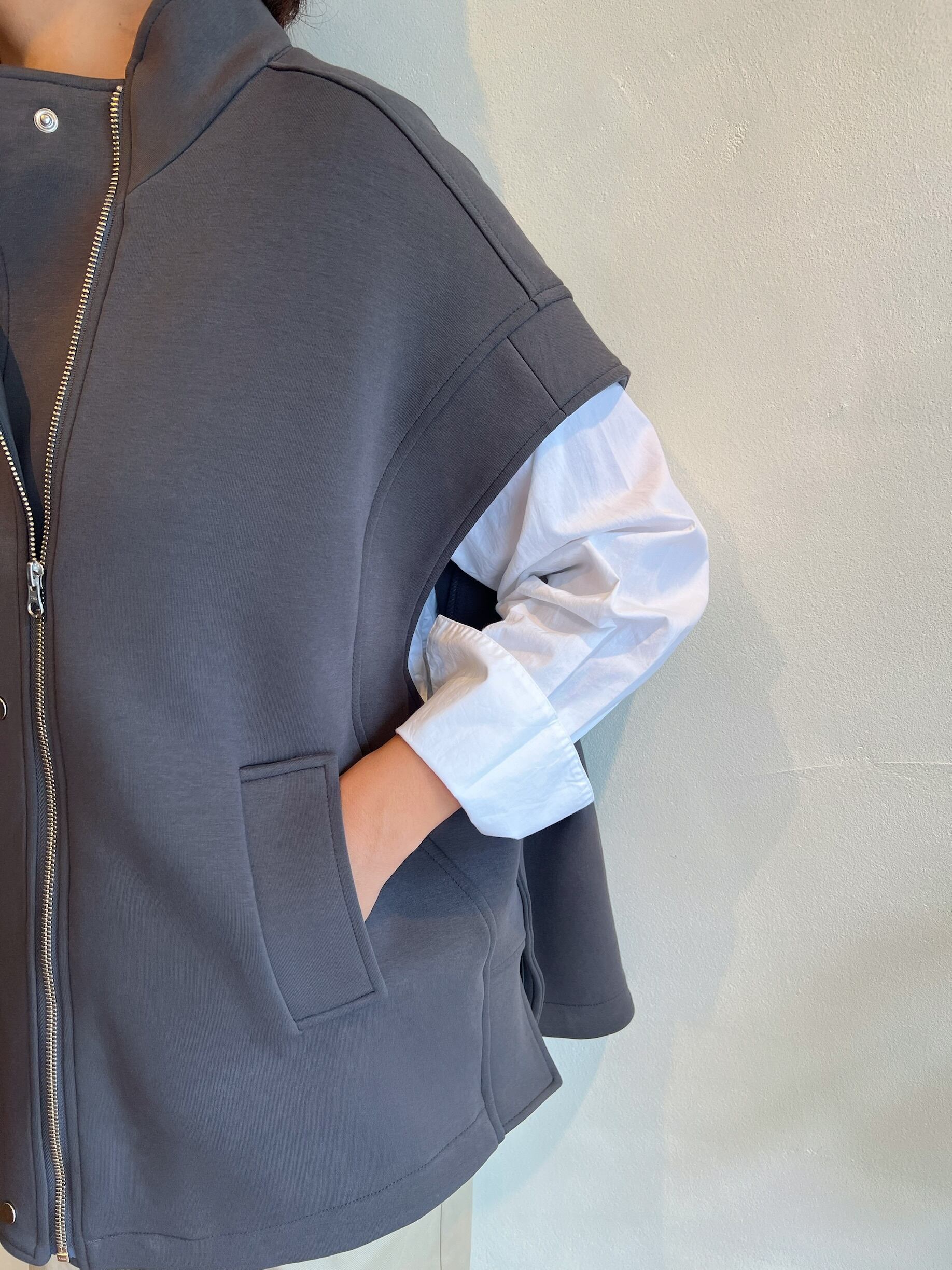 スリーブレスのスッキリとしたデザインがお洒落なジャケット。