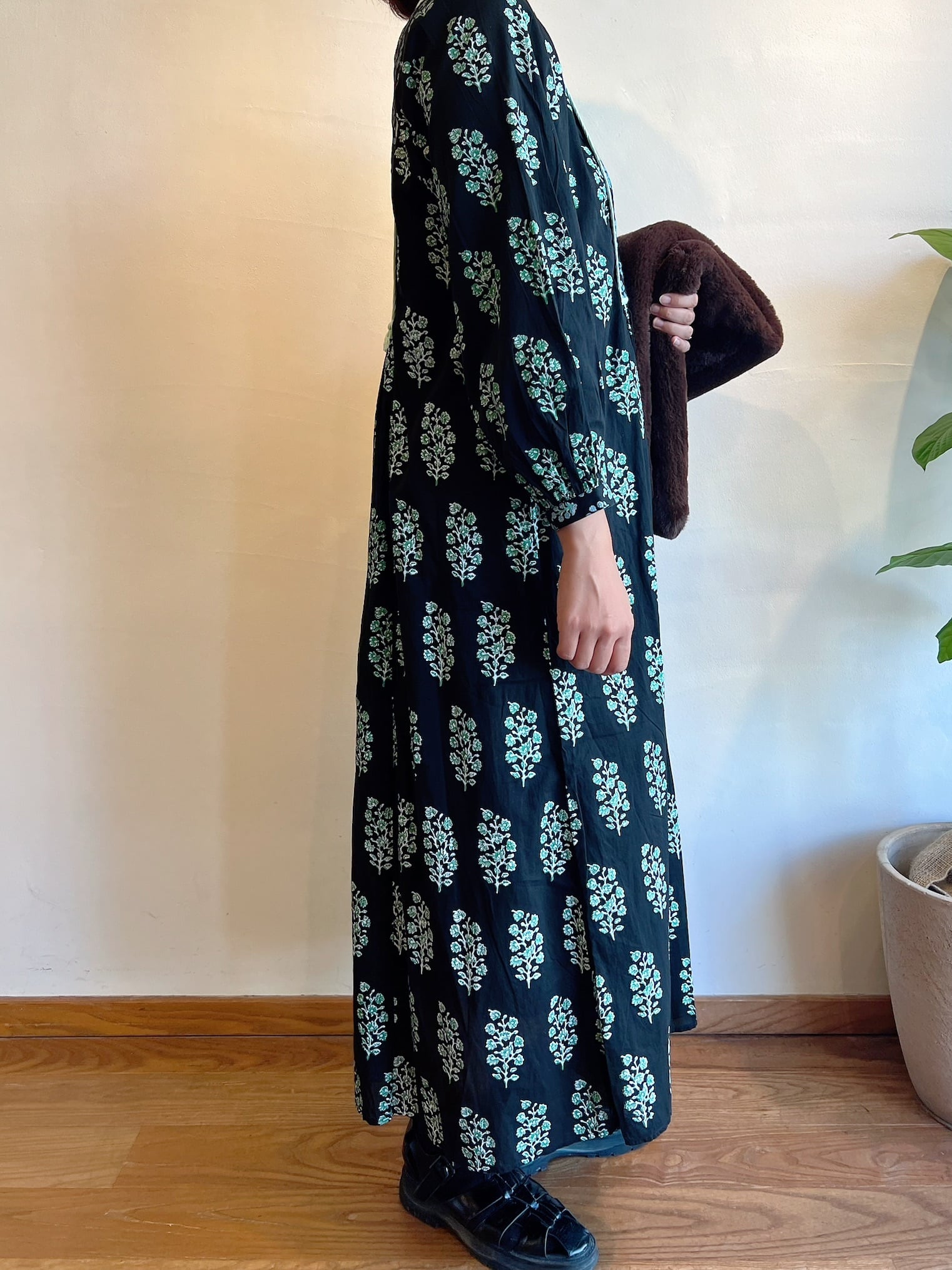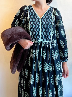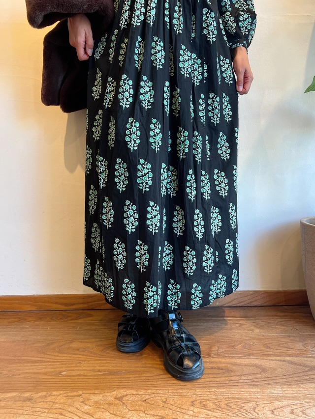 ne Quittez pas / コットンボイルエスニックコンビネーションプリントギャザードレス