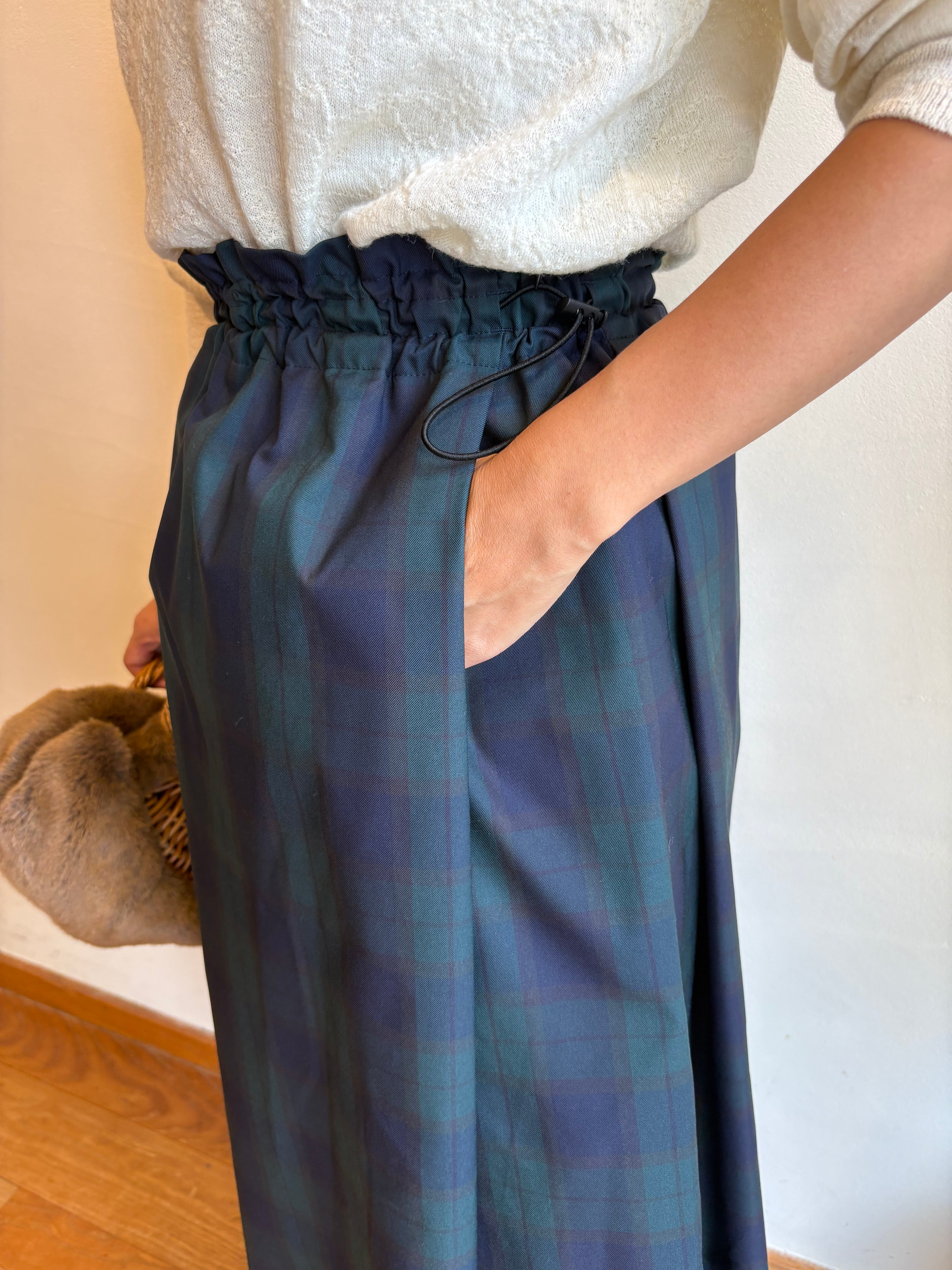□36:前丈78cm 後丈85cm ウエスト64 cm~(ゴム仕様) 裾まわり154cm(ドロスト仕様)