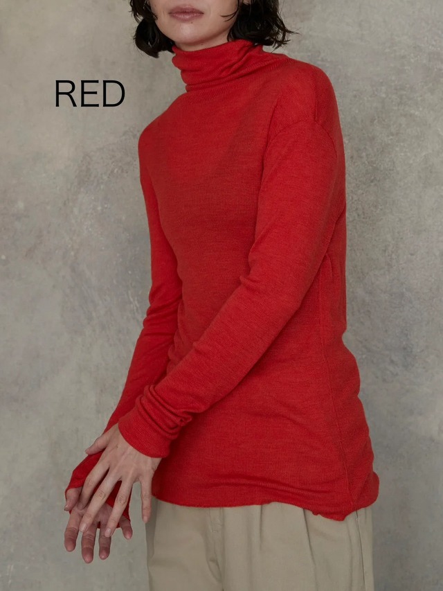 見た目の美しさから、ジャケットやコートのインナーとしてもレイヤードしやすいアイテムです。 長めのタートルは2つ折りしてきちんと着て頂いたり、クシュっとさせてニュアンスのある着こなしもオススメ。