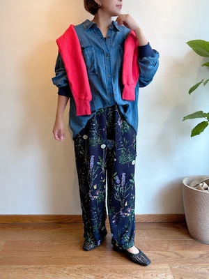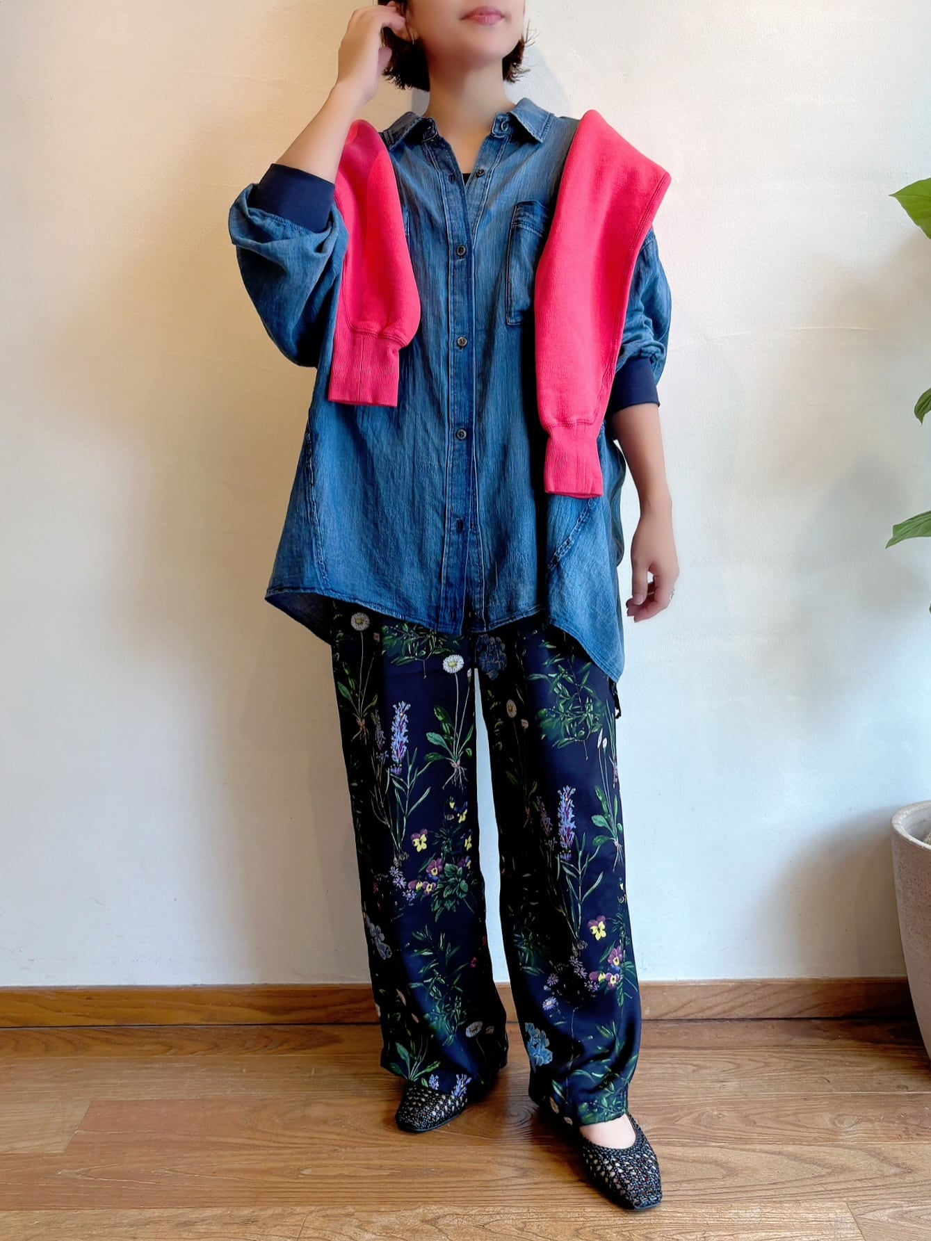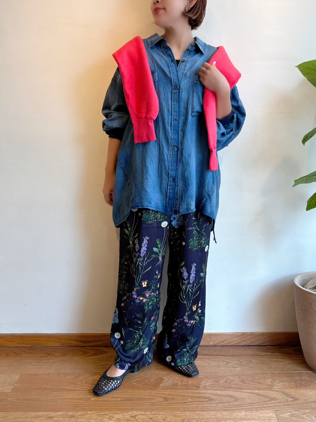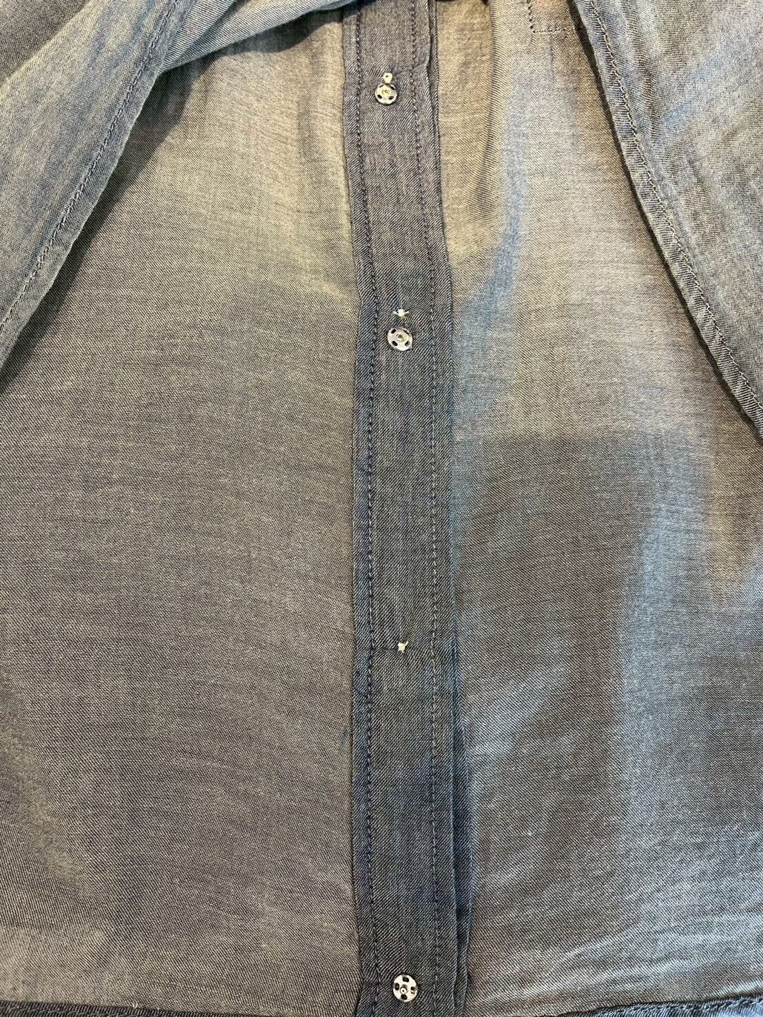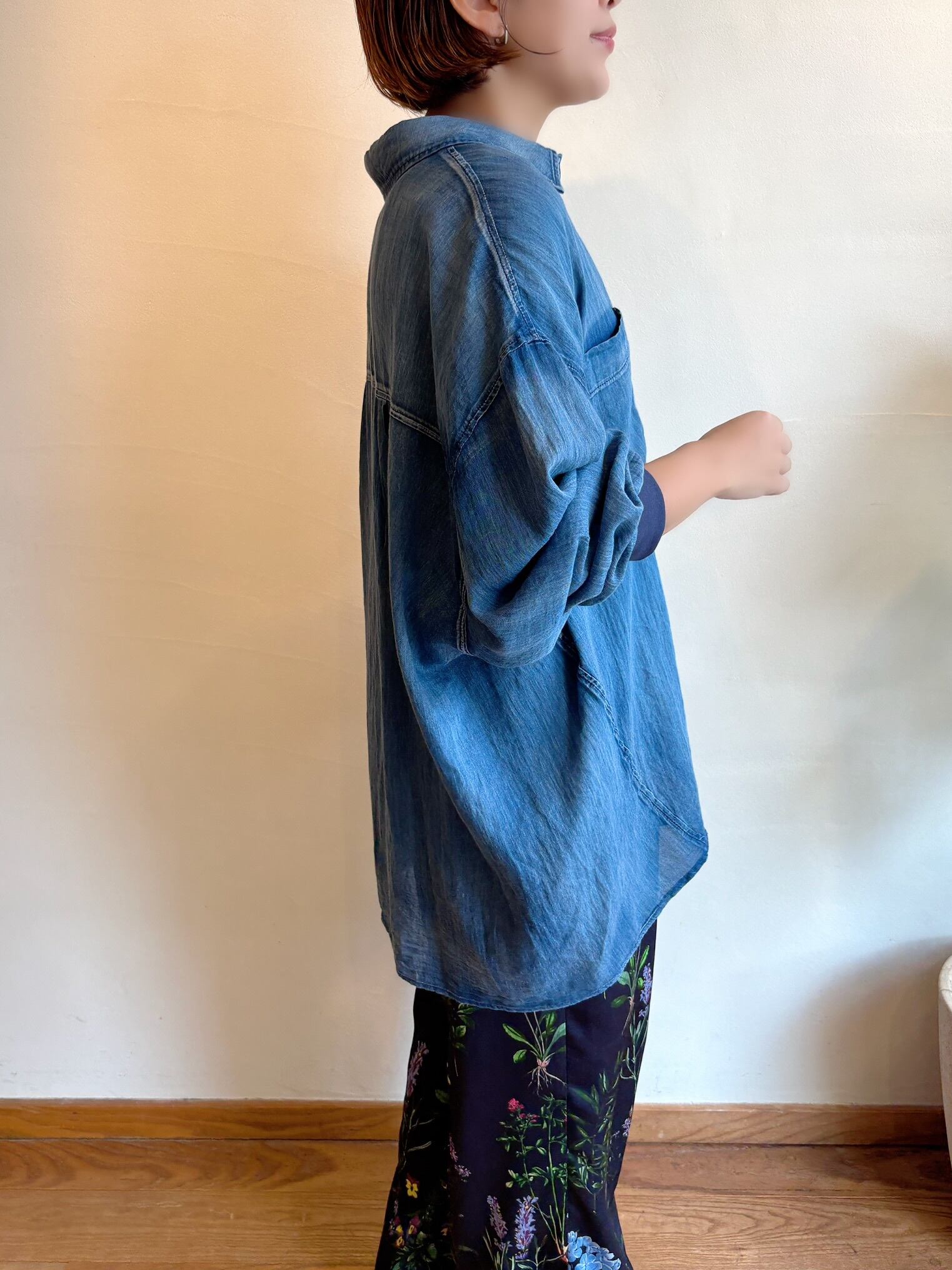 SOLD OUT シアー感のあるデニムの素材で、新鮮に見せてくれるデニムシャツ。お袖はリブ素材に仕上げ、さっとお袖を上げて快適に着用できます。裾を内側に入れ込み、内側のボタンを留めることでぽわんと丸みのあるインしたようなスタイルを作り上げることができます。(内側ボタンは2段階)そのまま着るのも、アレンジして着るのもどちらも楽しめるマルチWAYな仕様が楽しい1着です。いつものデニムシャツスタイルを新鮮に見せてくれる1着です。
