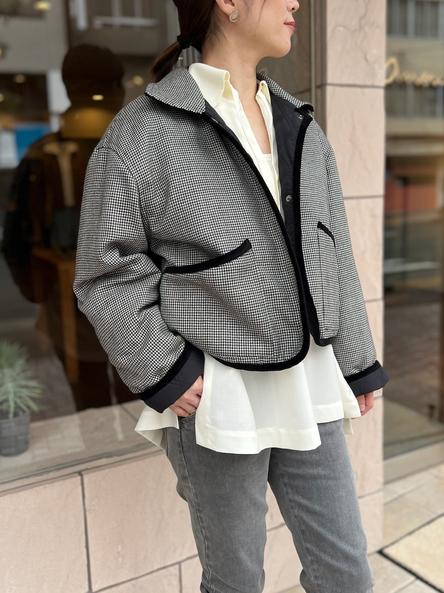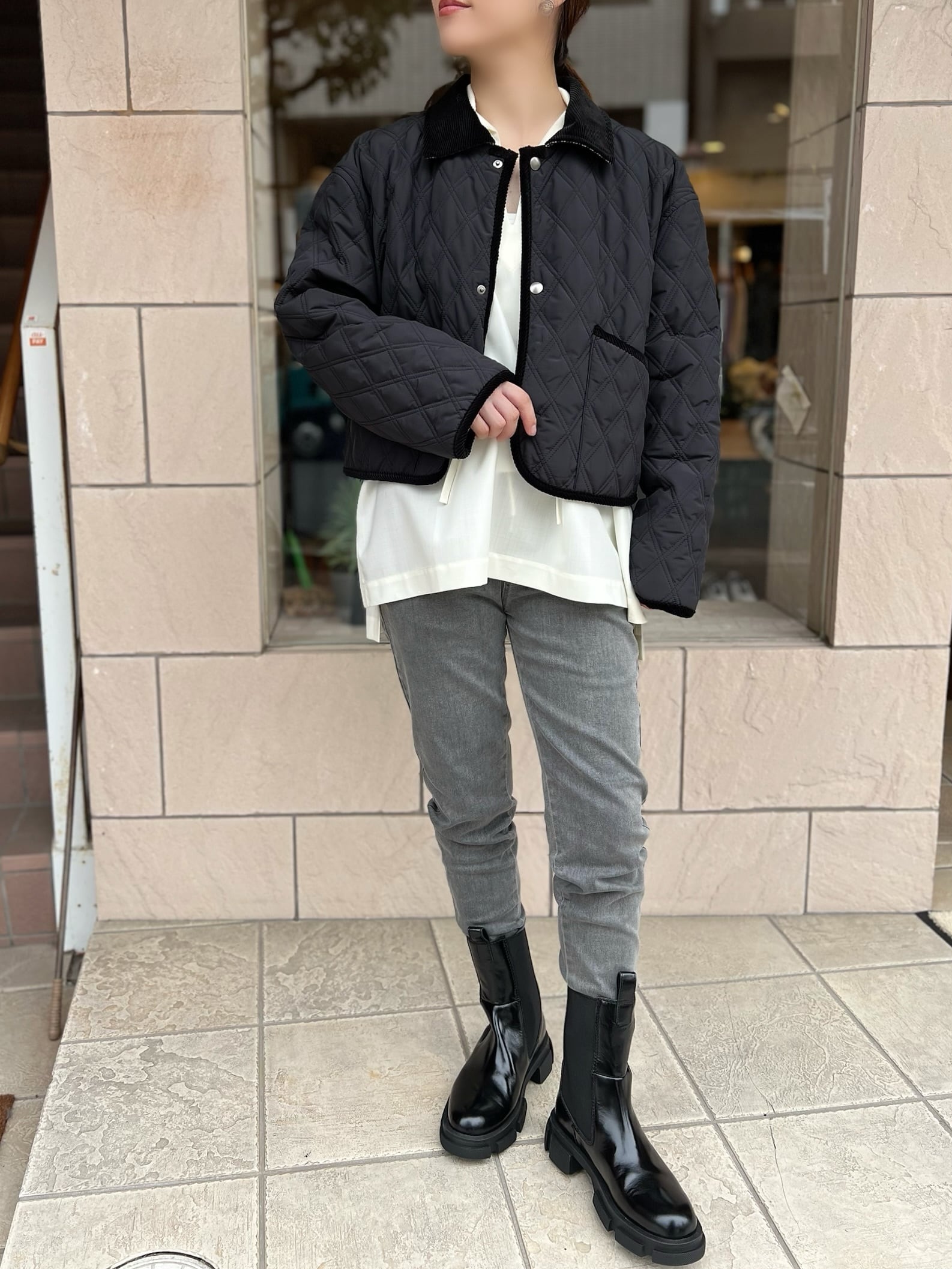 ショート丈のキルティングコートは、軽やかに羽織れる万能アウター。ジャケット感覚で取り入れられるので秋口から活躍し、室内でも違和感なく着られるのが魅力です。動きやすく、どんなボトムスとも合わせやすいのも嬉しいポイント。重ね着やスタイリング次第で、ほっこり感を回避しておしゃれに着こなせます。