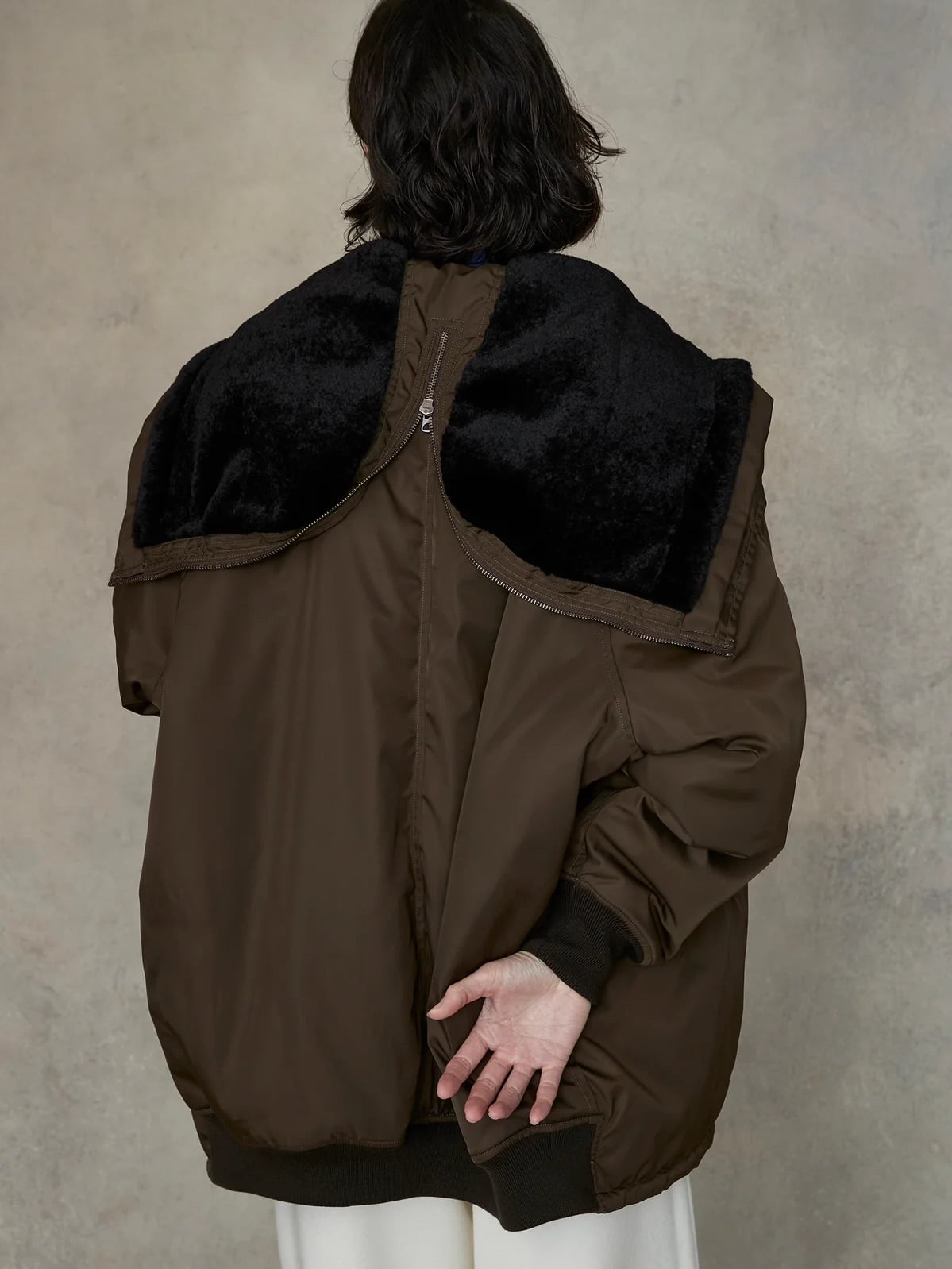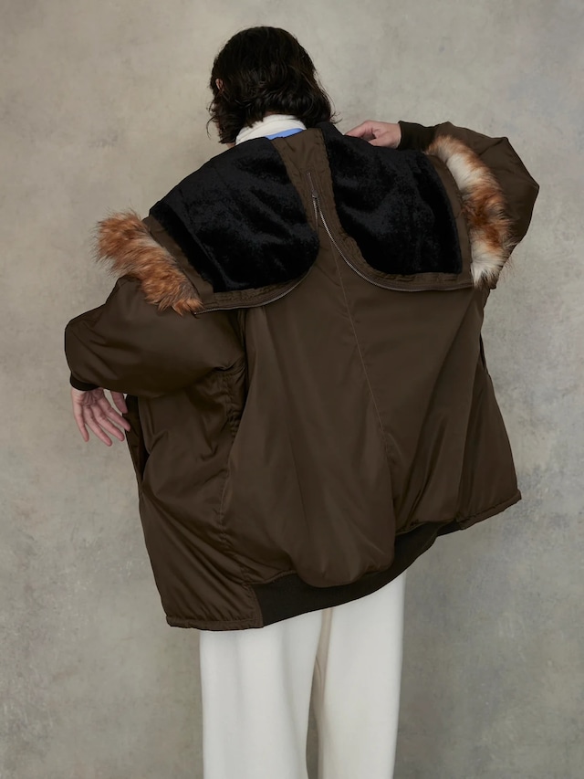 ■N-2B特有のフードを割って着るスタイルもおすすめ