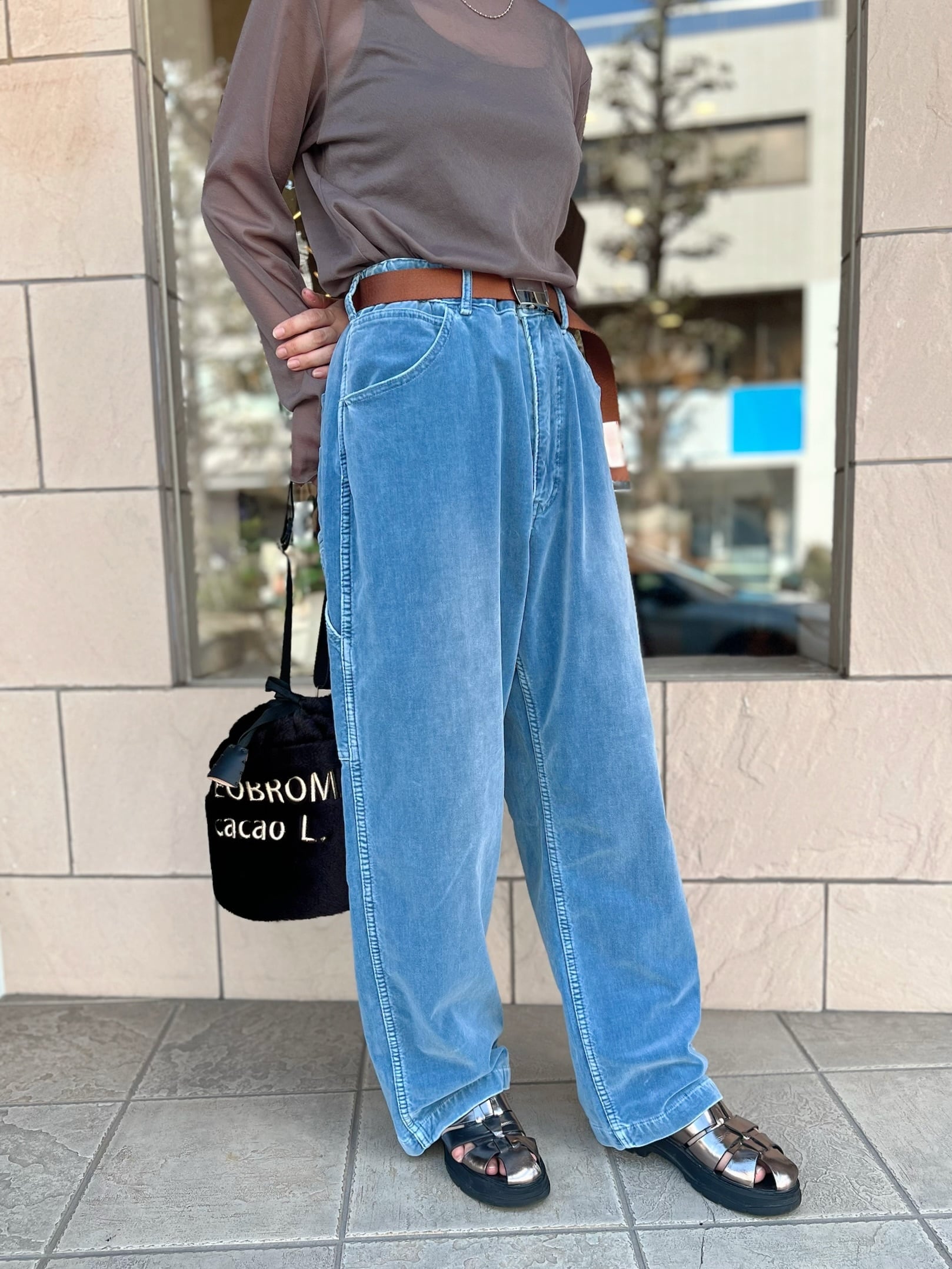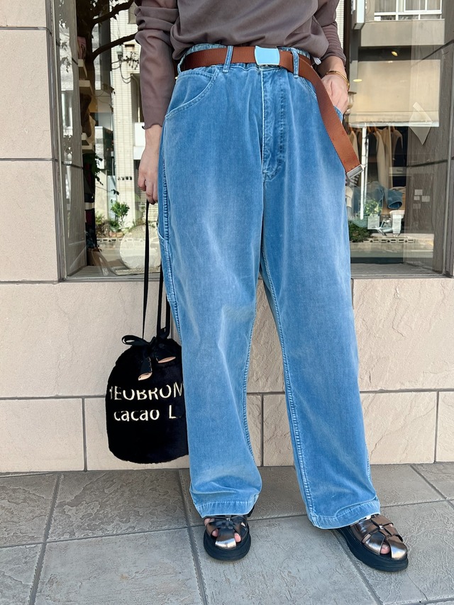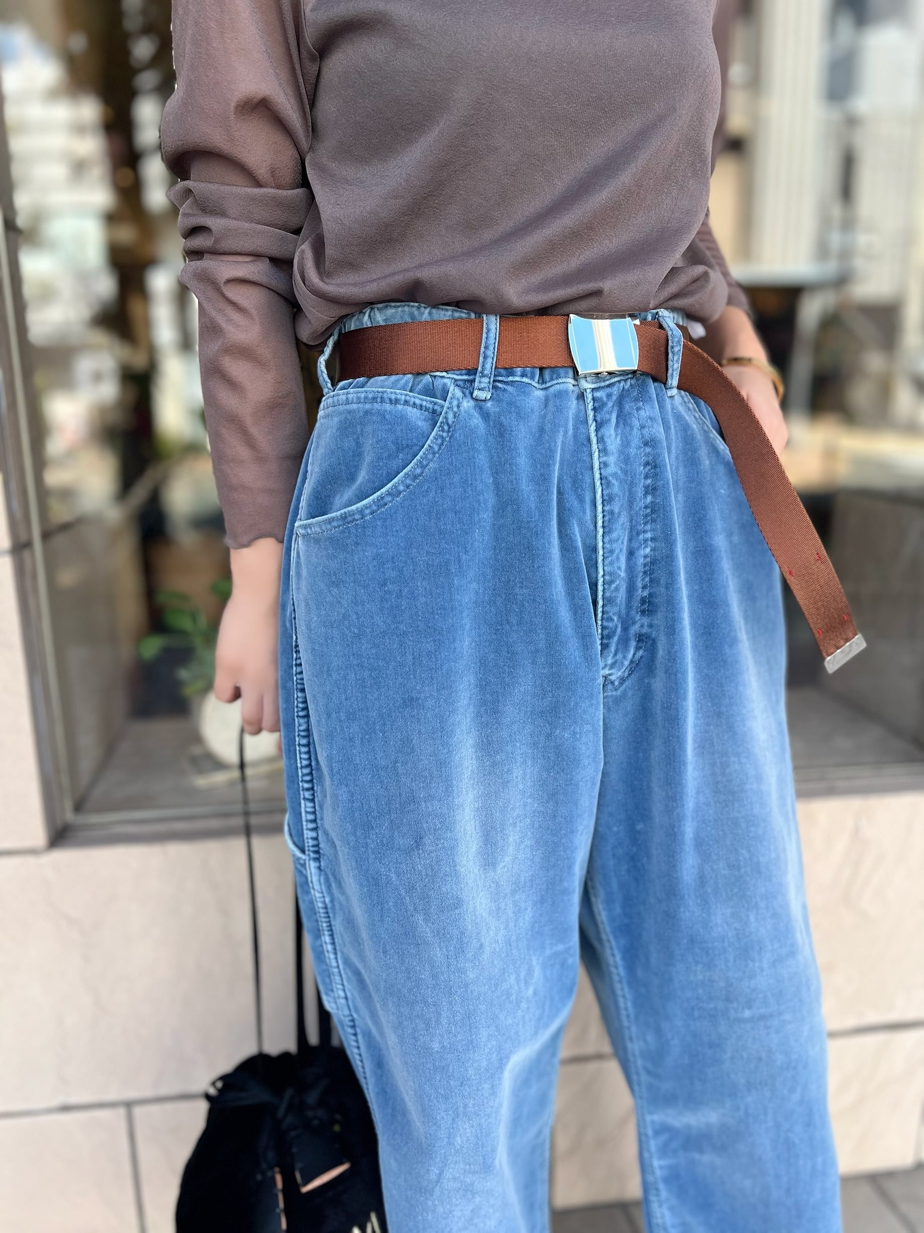 デニムパンツを温かな別珍(ベルベティーン)素材で仕立てました。