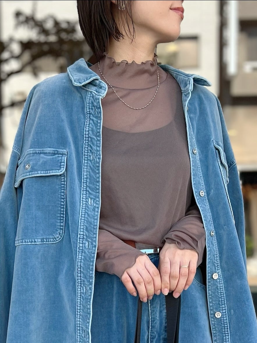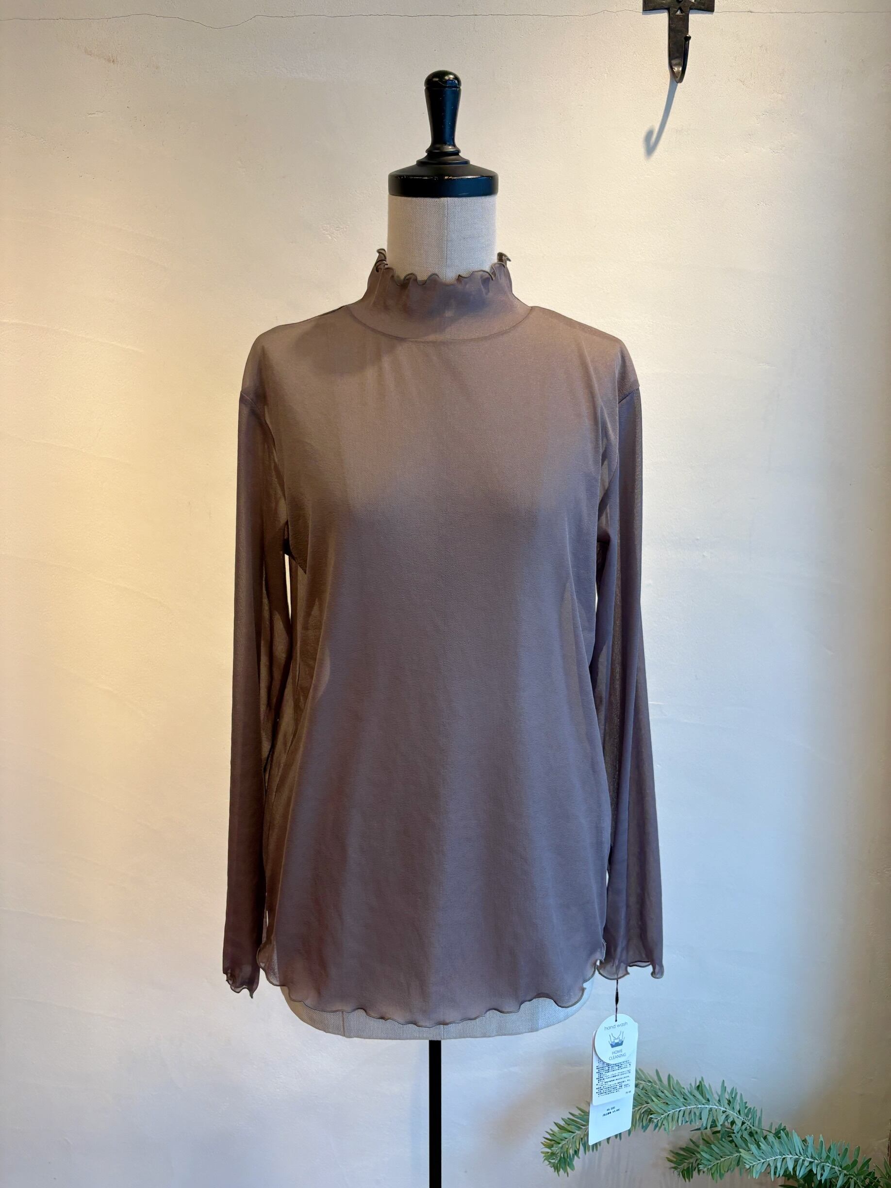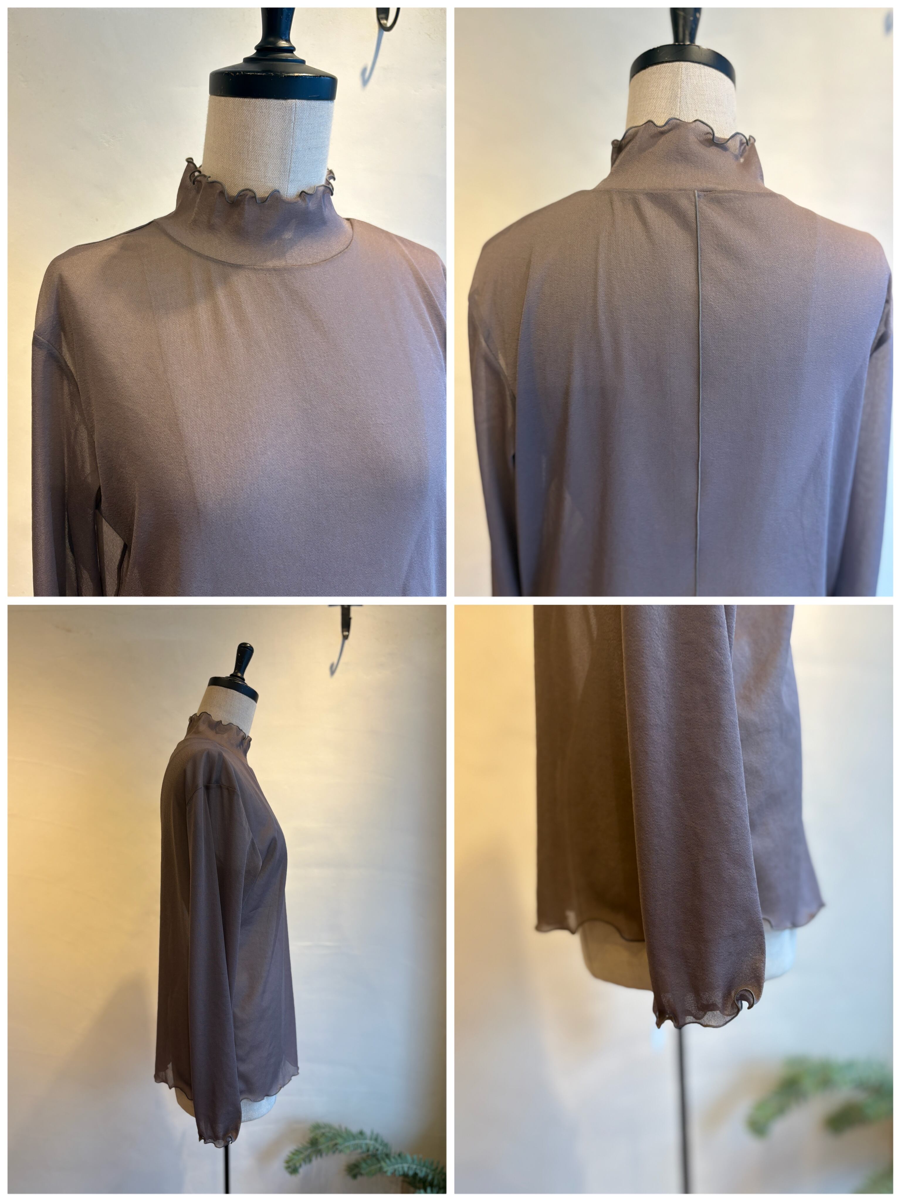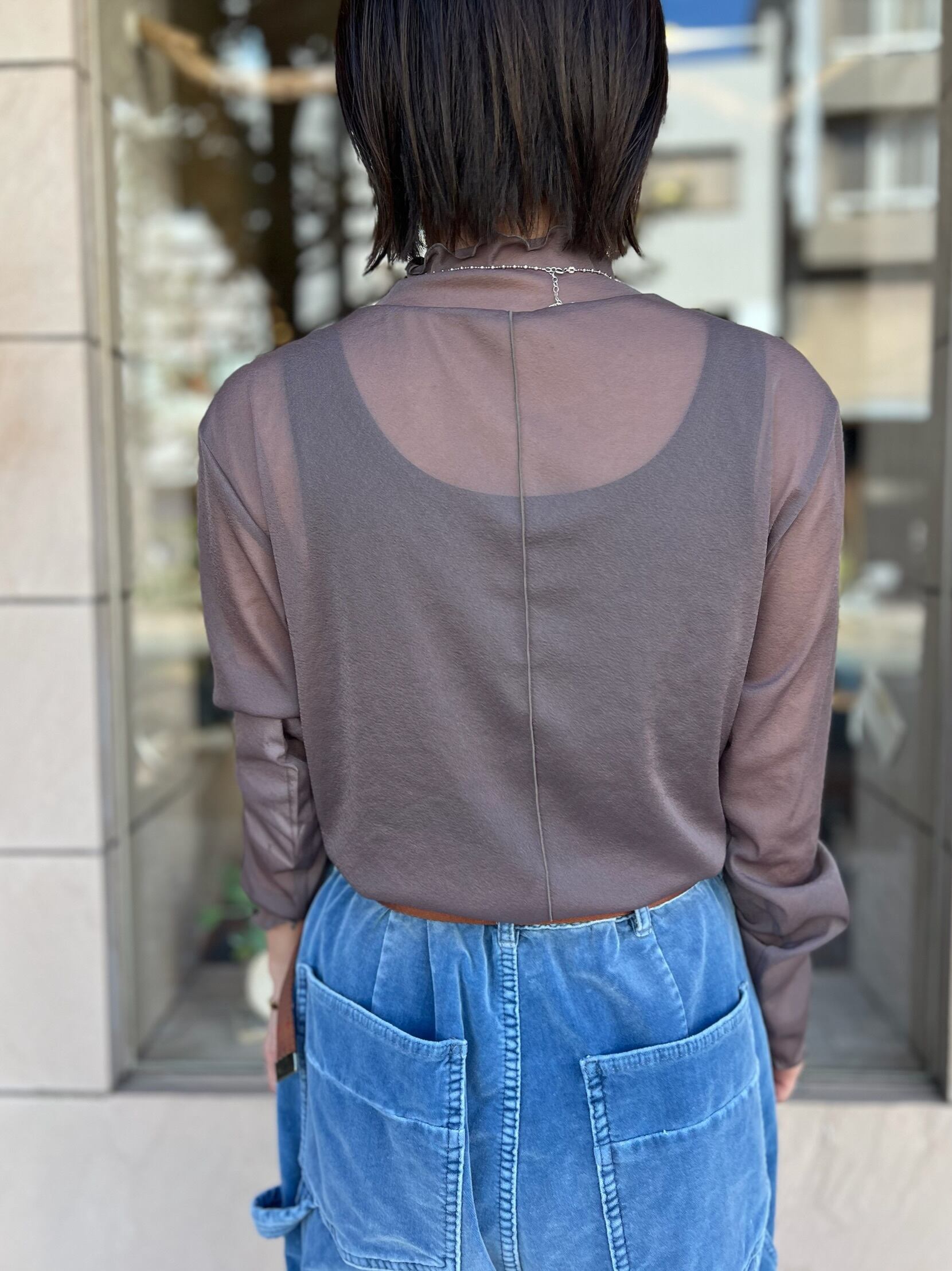 軽やかな透け感が魅力のトリコットシフォン素材を使用したハイネックトップス。窮屈感のないストレスフリーな着心地なので、程よい透け感がスタイリングに抜け感を与え、キャミソールやワンピースとのレイヤードスタイルにぴったり。インナーとしてもメイントップスとしても活躍し、シーズンレスで使える万能アイテムです。