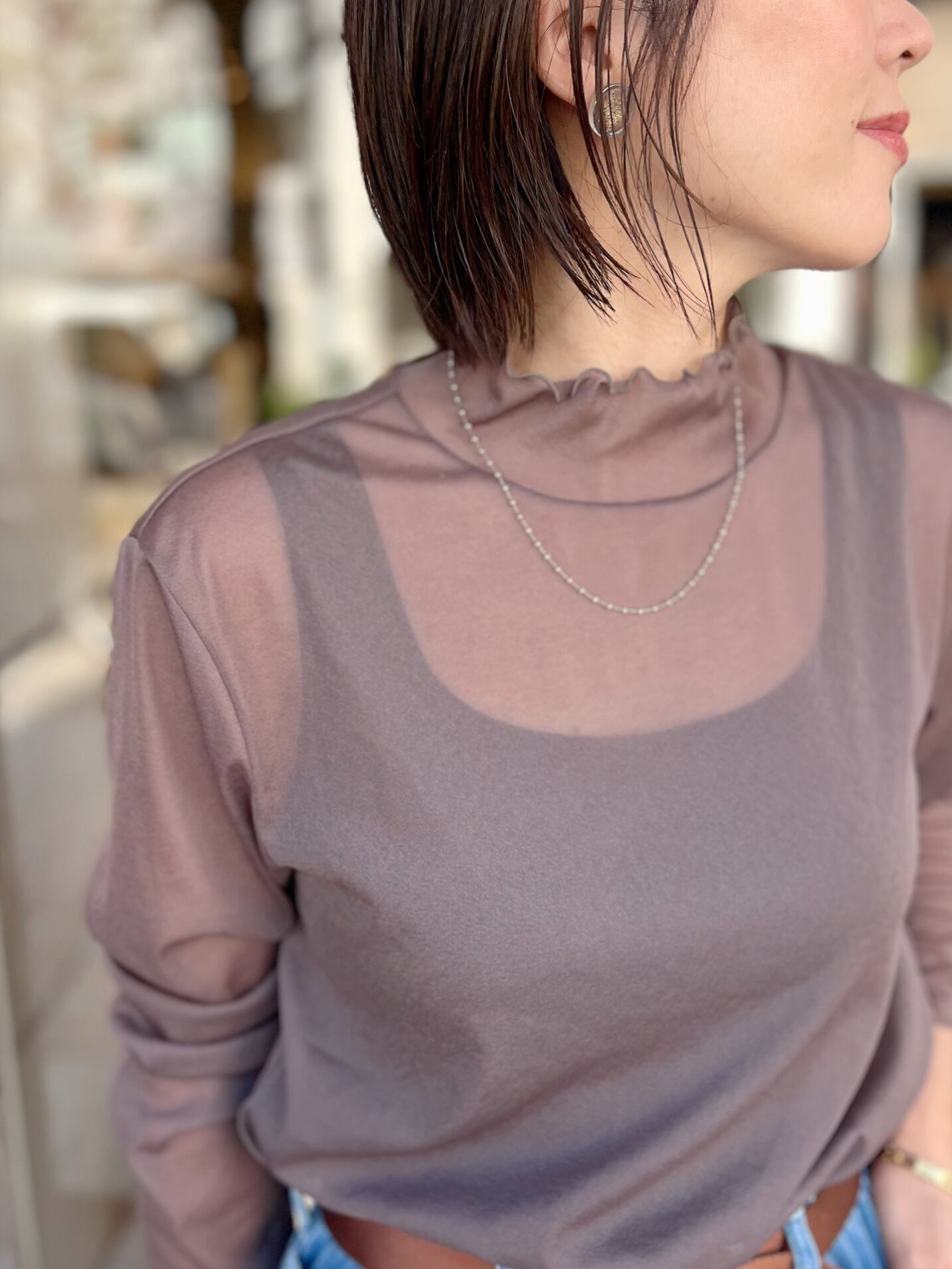 trois / トリコットシフォン シアーハイネック