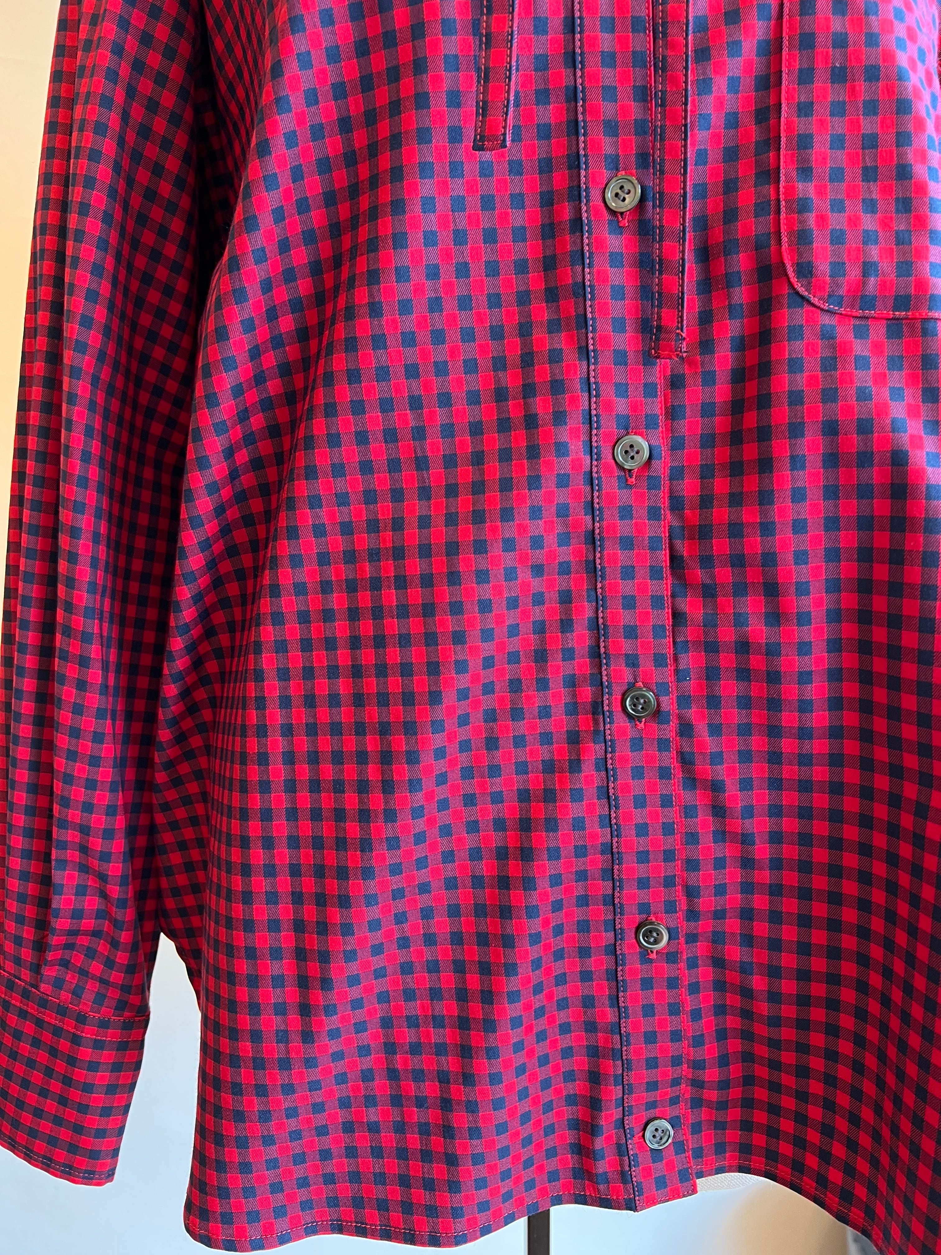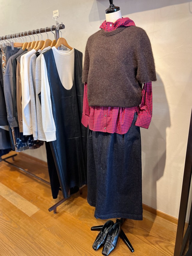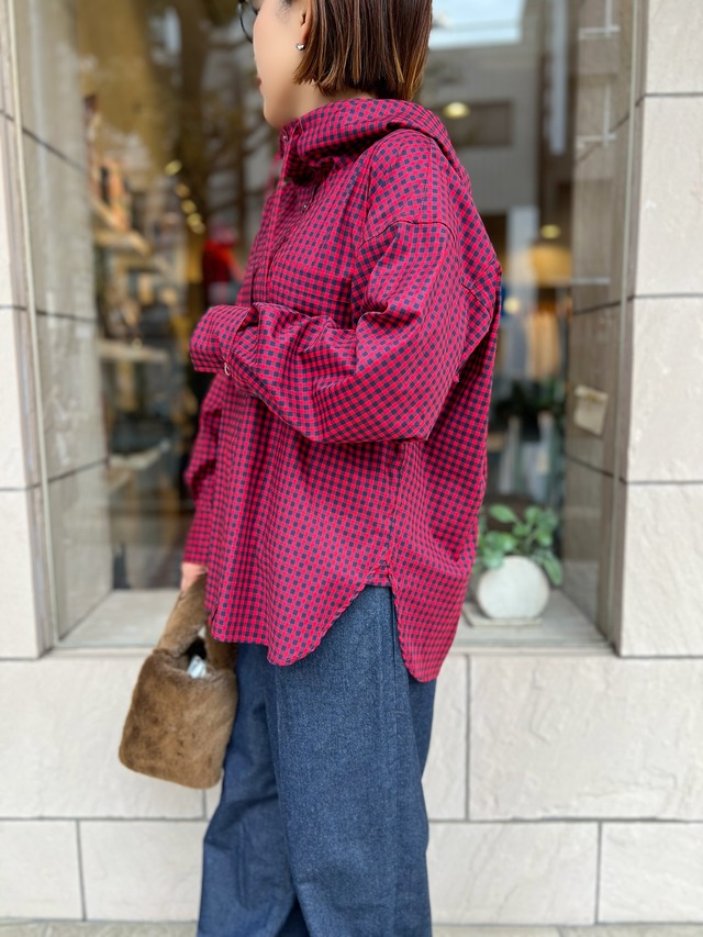 lelillのシャツといえば、ノーアイロン、マシンウォッシュ可がデフォルトですが、今回も耐しわや、乾きの早さにアドバンテージのあるブロードを採用。(チェックにはツイルを使用しています)デザインは秋なのでレイヤード使いも加味して丈を短くリニューアルしています。