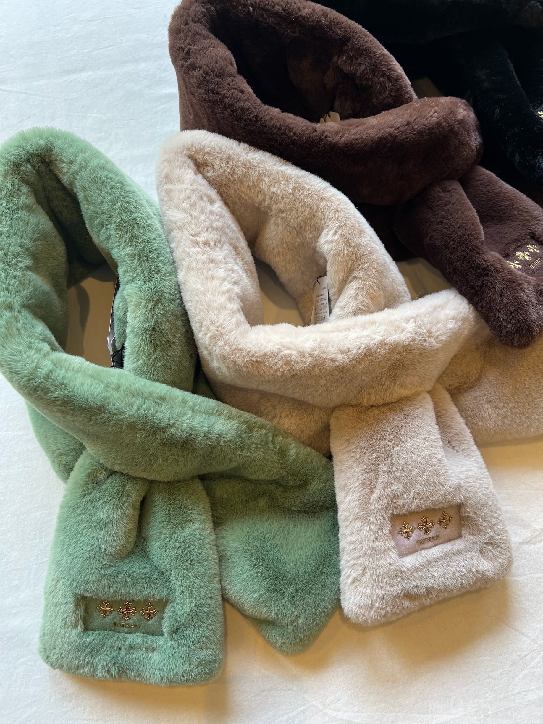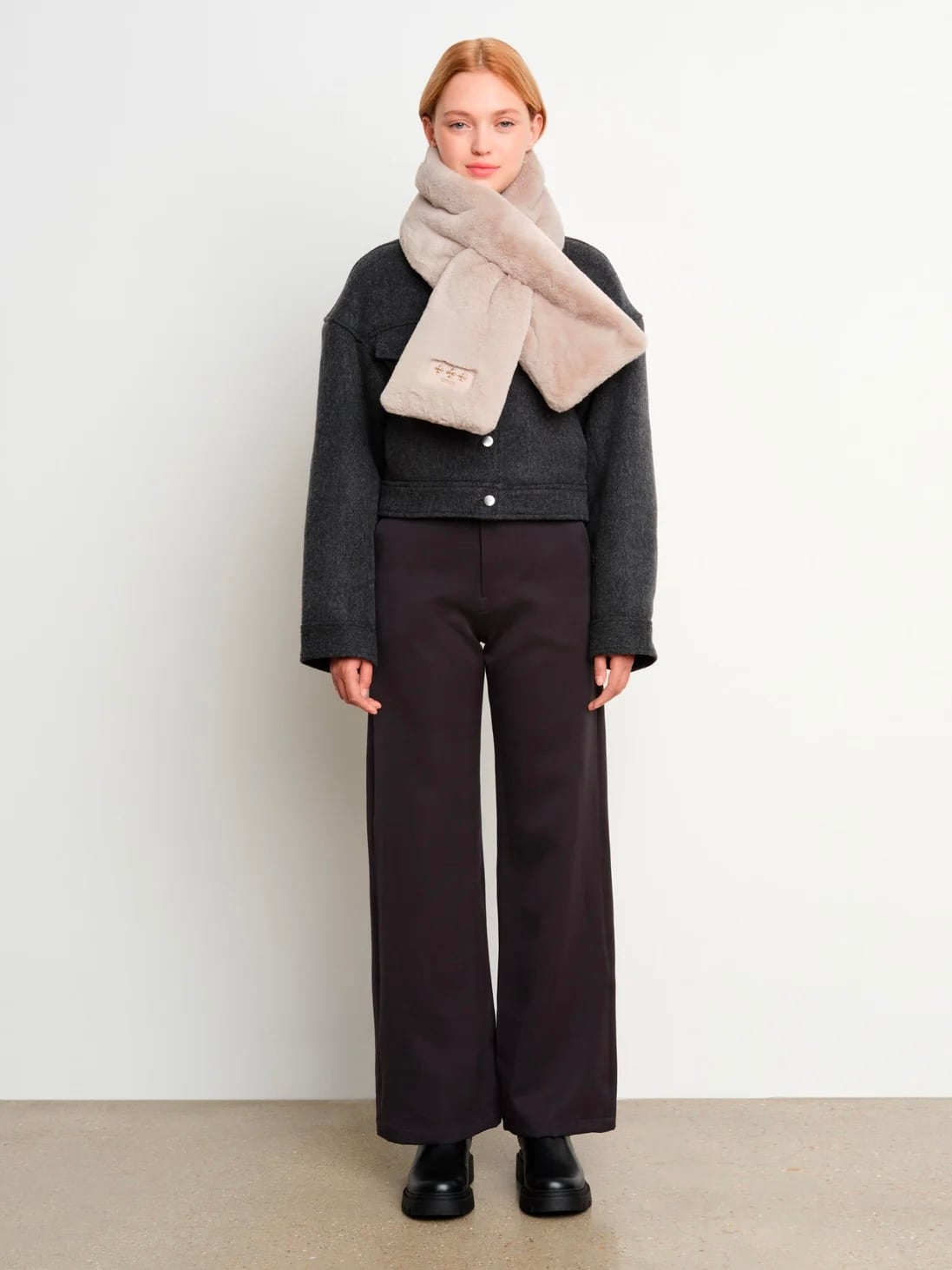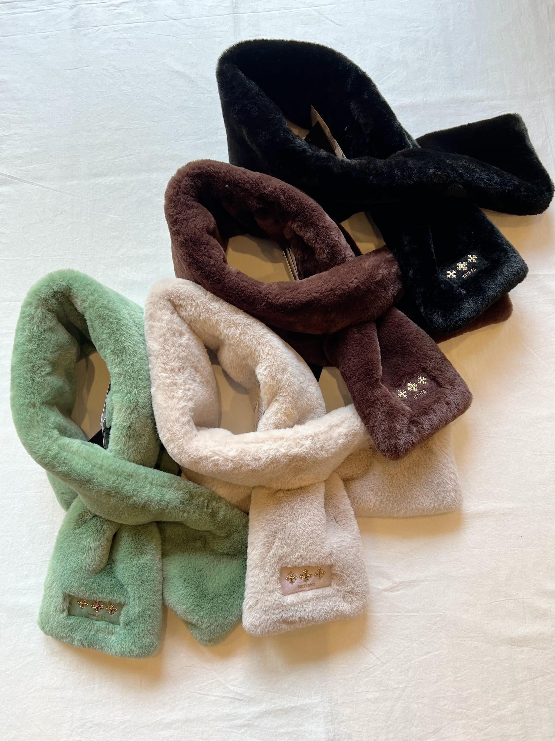 程よいボリュームで、すっきりと巻くことができるTATRASのボアマフラー。