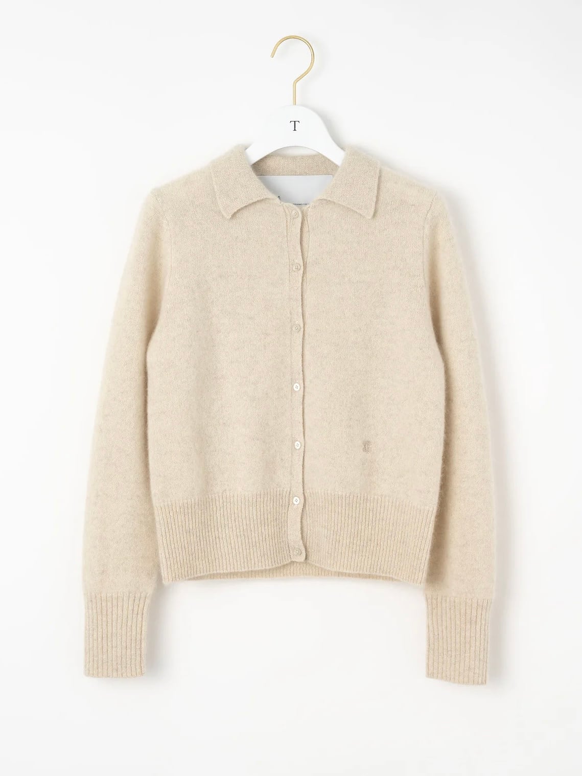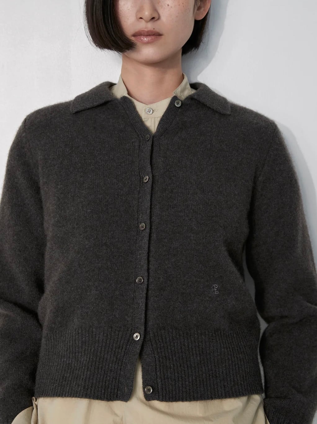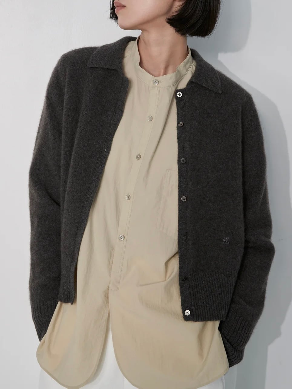 ミニマルでオーセンティックな襟付きヤクカーディガン。