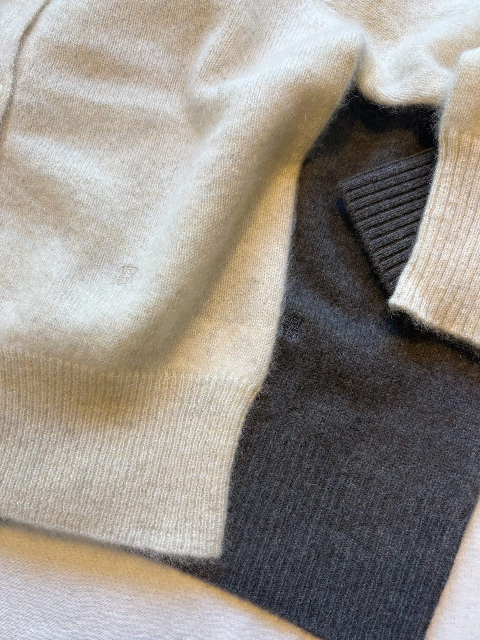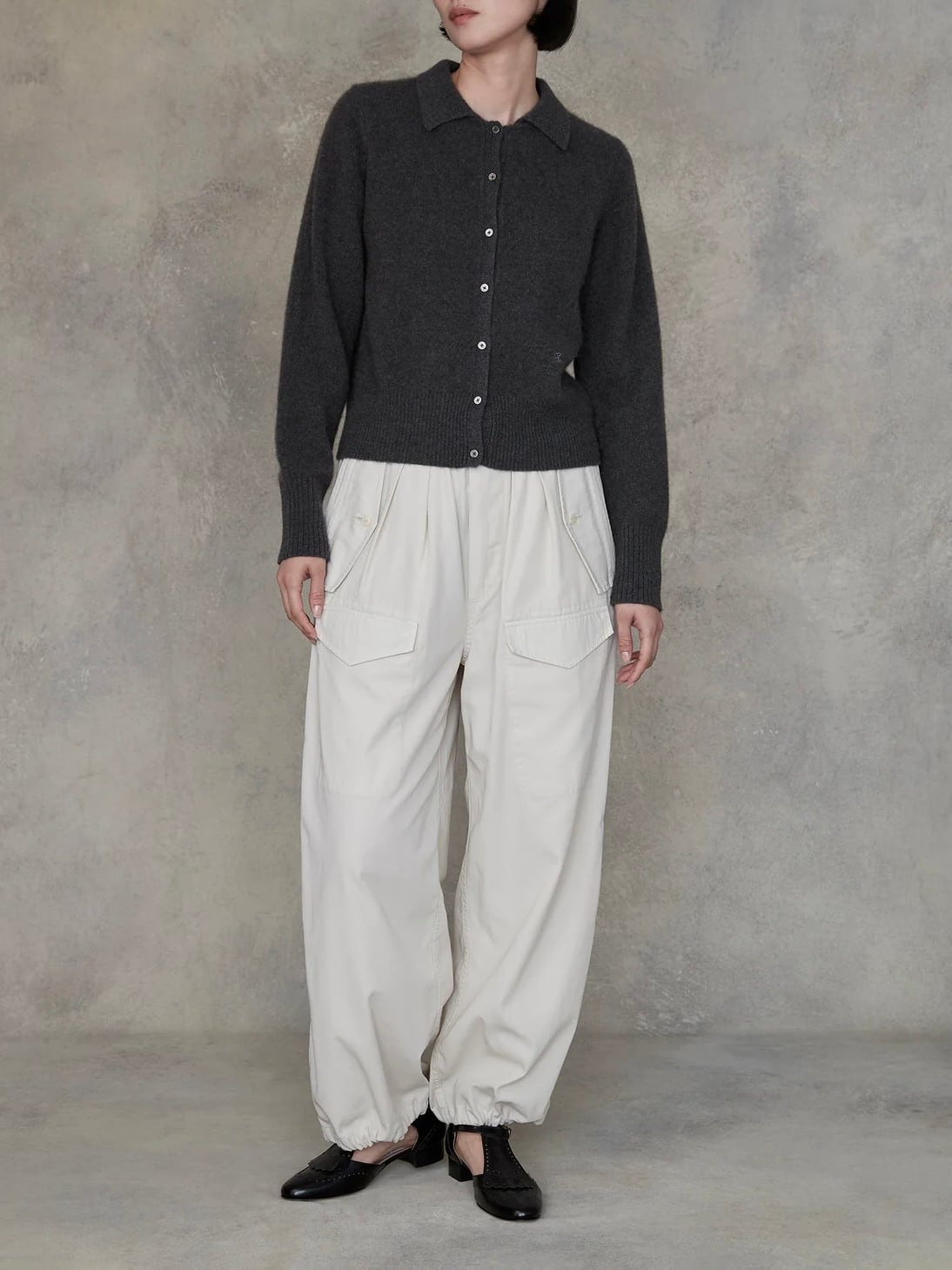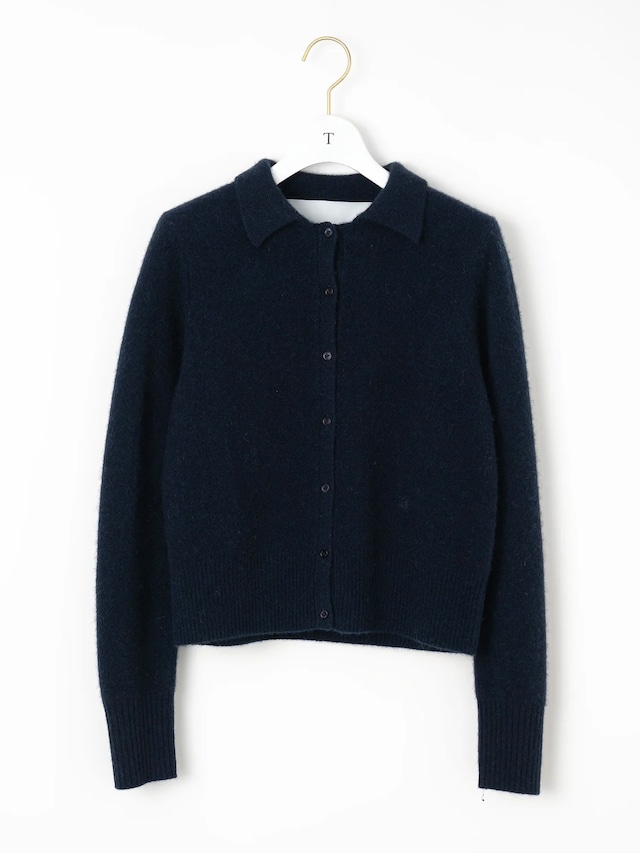 ミニマルでオーセンティックな襟付きヤクカーディガン。