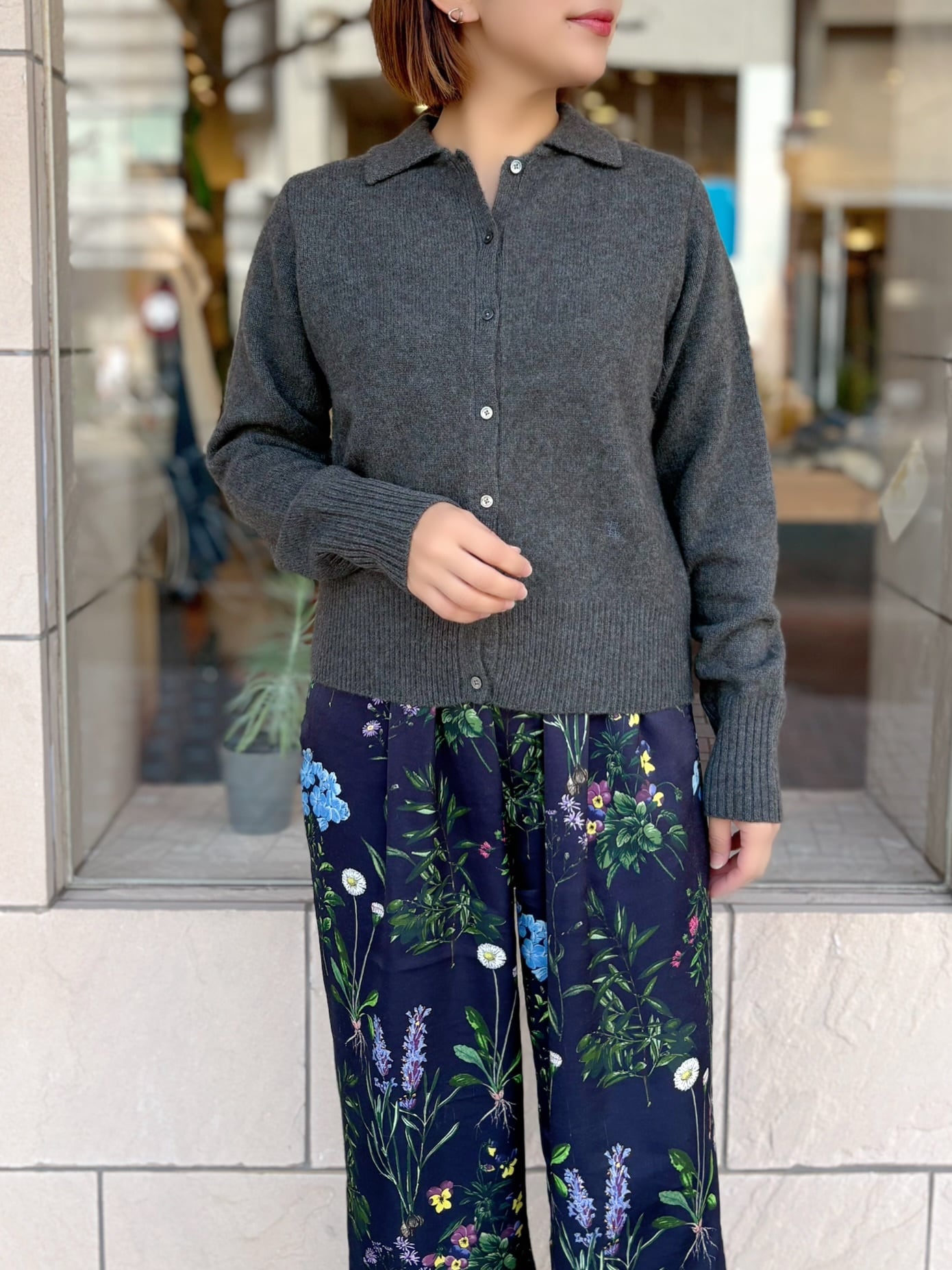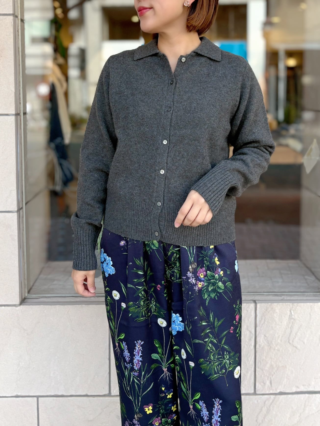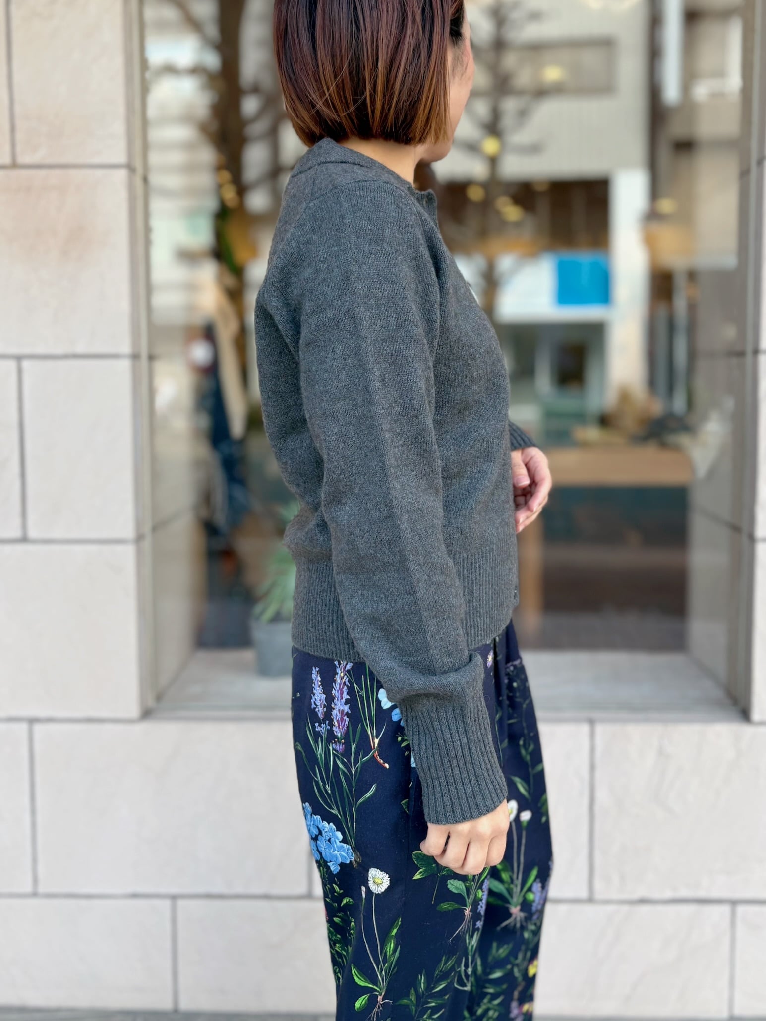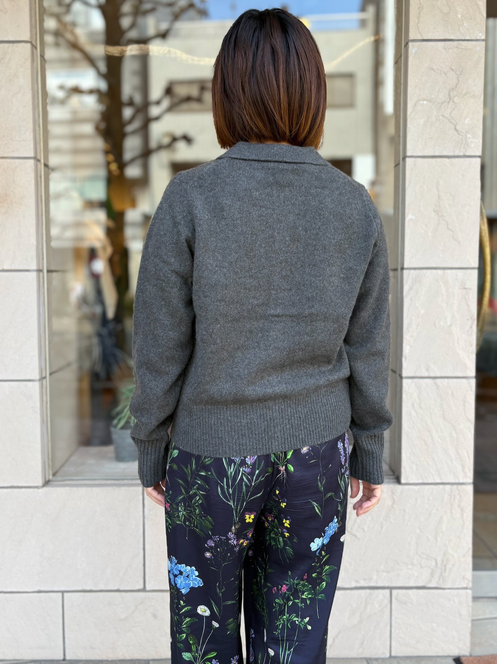 きちんと感と抜け感のバランスが絶妙なポロカーディガンは、1 枚でこなれた印象に。