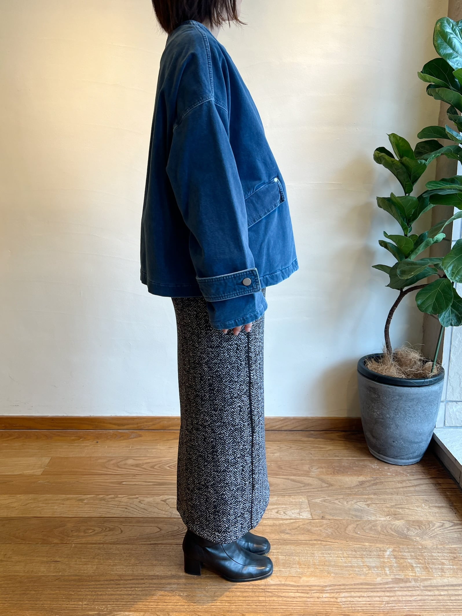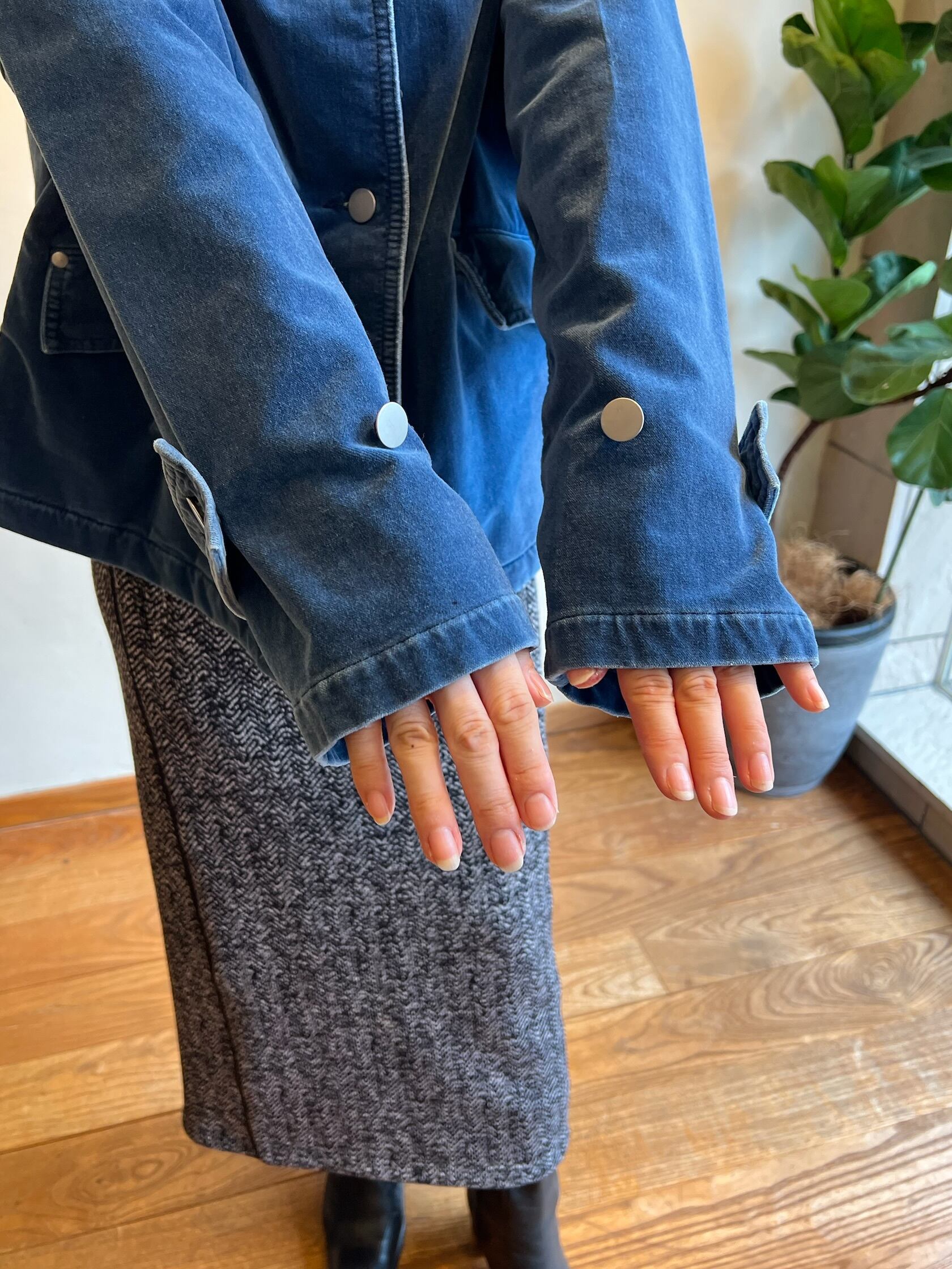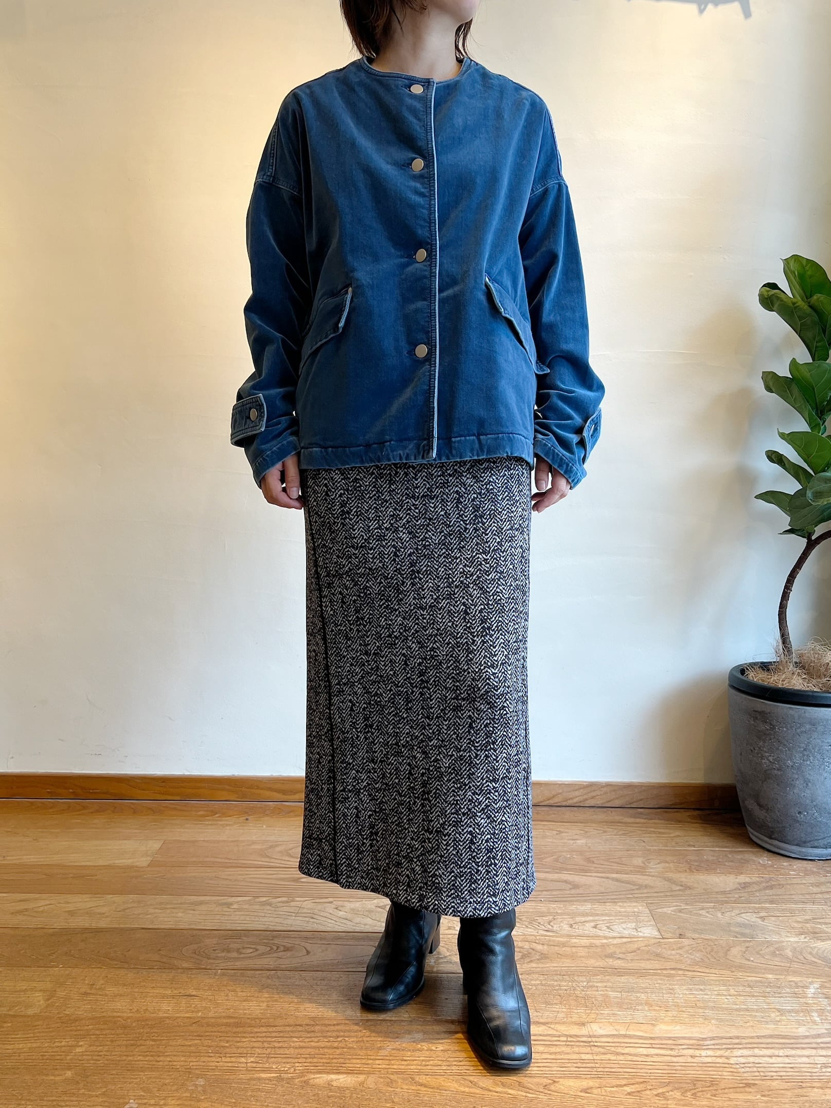 とても温かい!と好評なDignite collier(ディニテコリエ)の別珍デニムシリーズから、ノーカラージャケットが登場です。