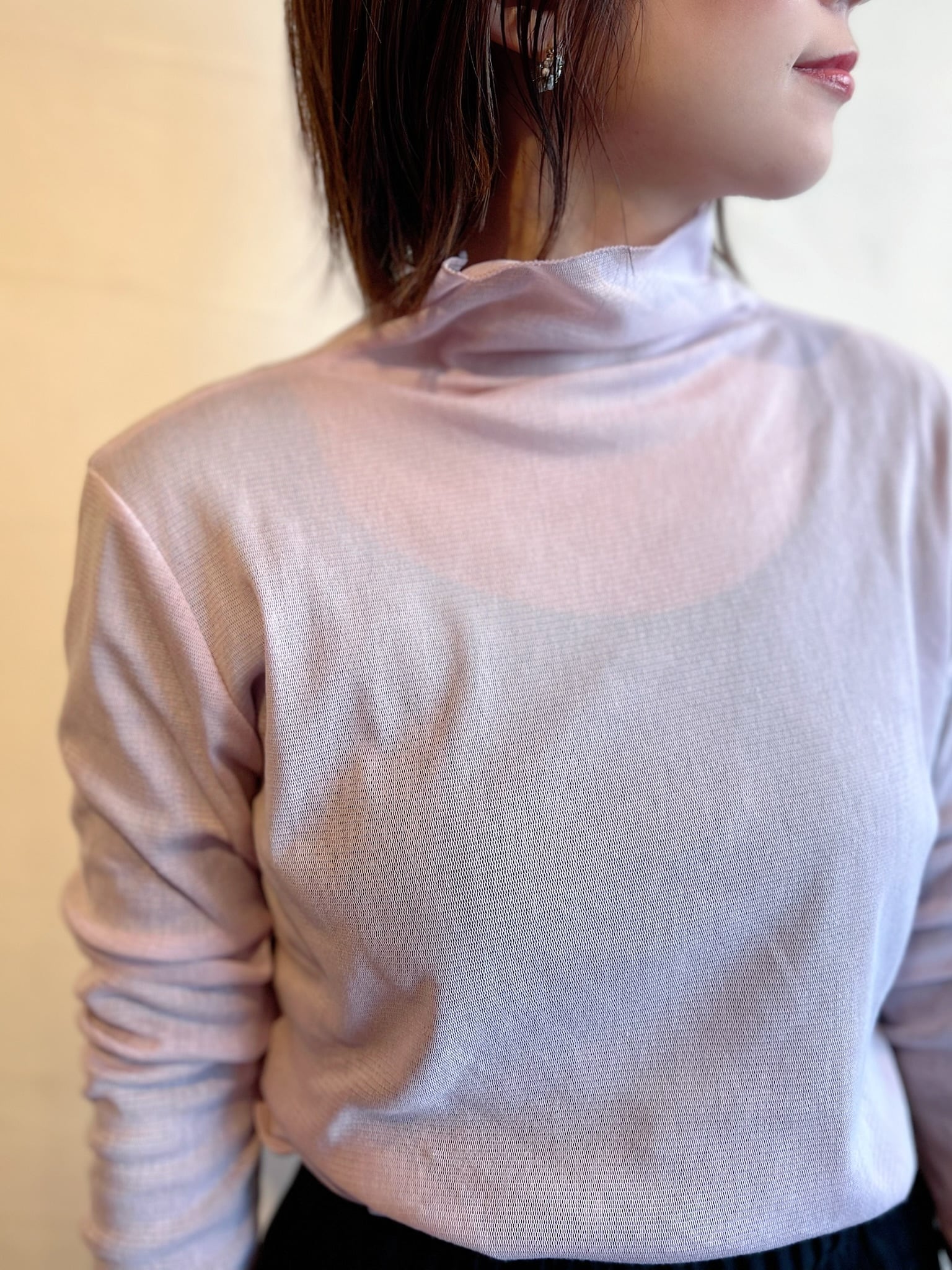 今季らしいスタイリングの幅が広がるチュールプルオーバー。大人の女性にぴったりなチュールハイネックアイテムです。首元や、袖元をくしゅくしゅとする事でニュアンス感が生まれます。一枚でメイントップスとしても、シャツやニット、ジャケットなどのインナーとしても着回しやすく幅広い活躍が期待できます。
