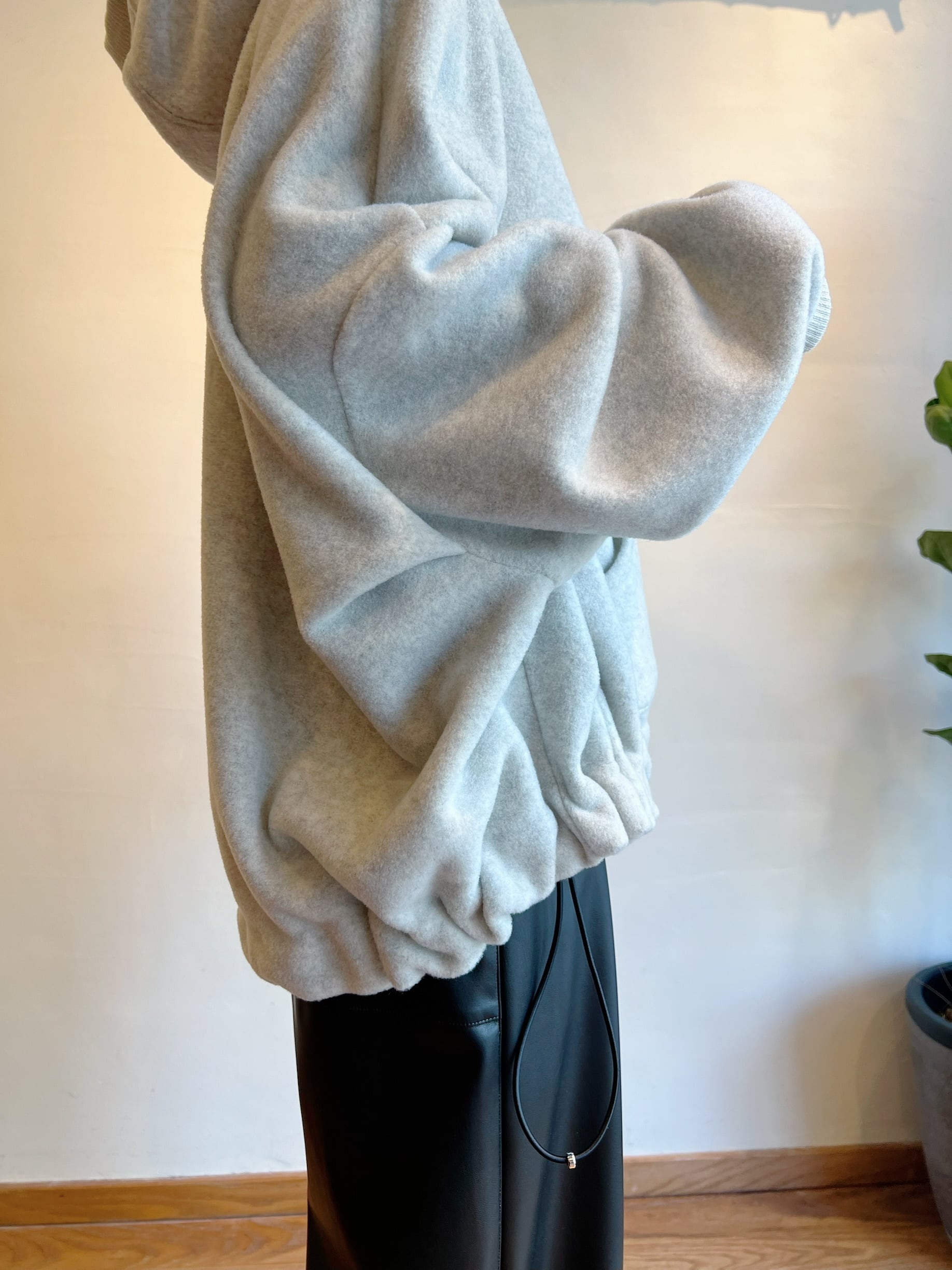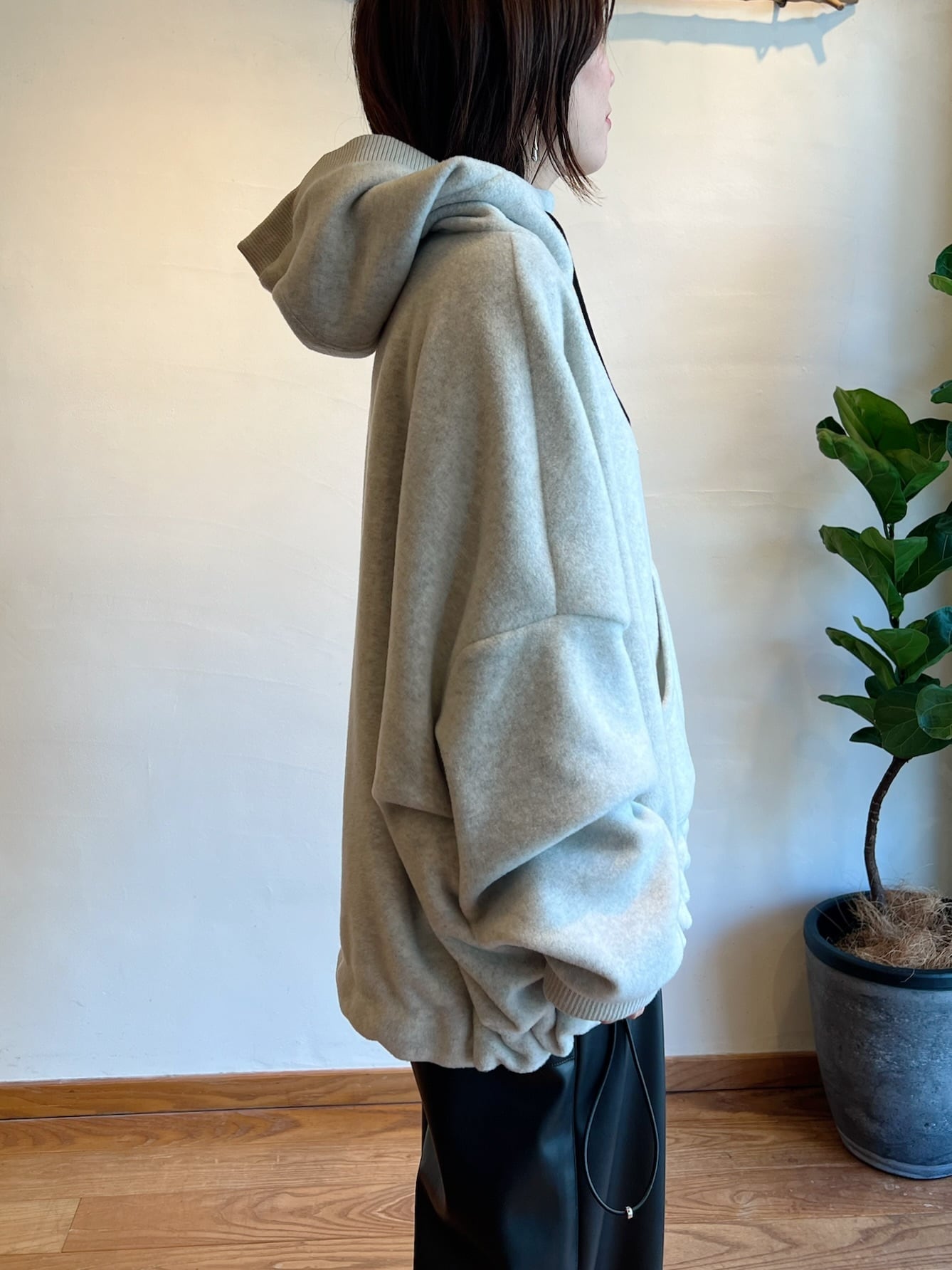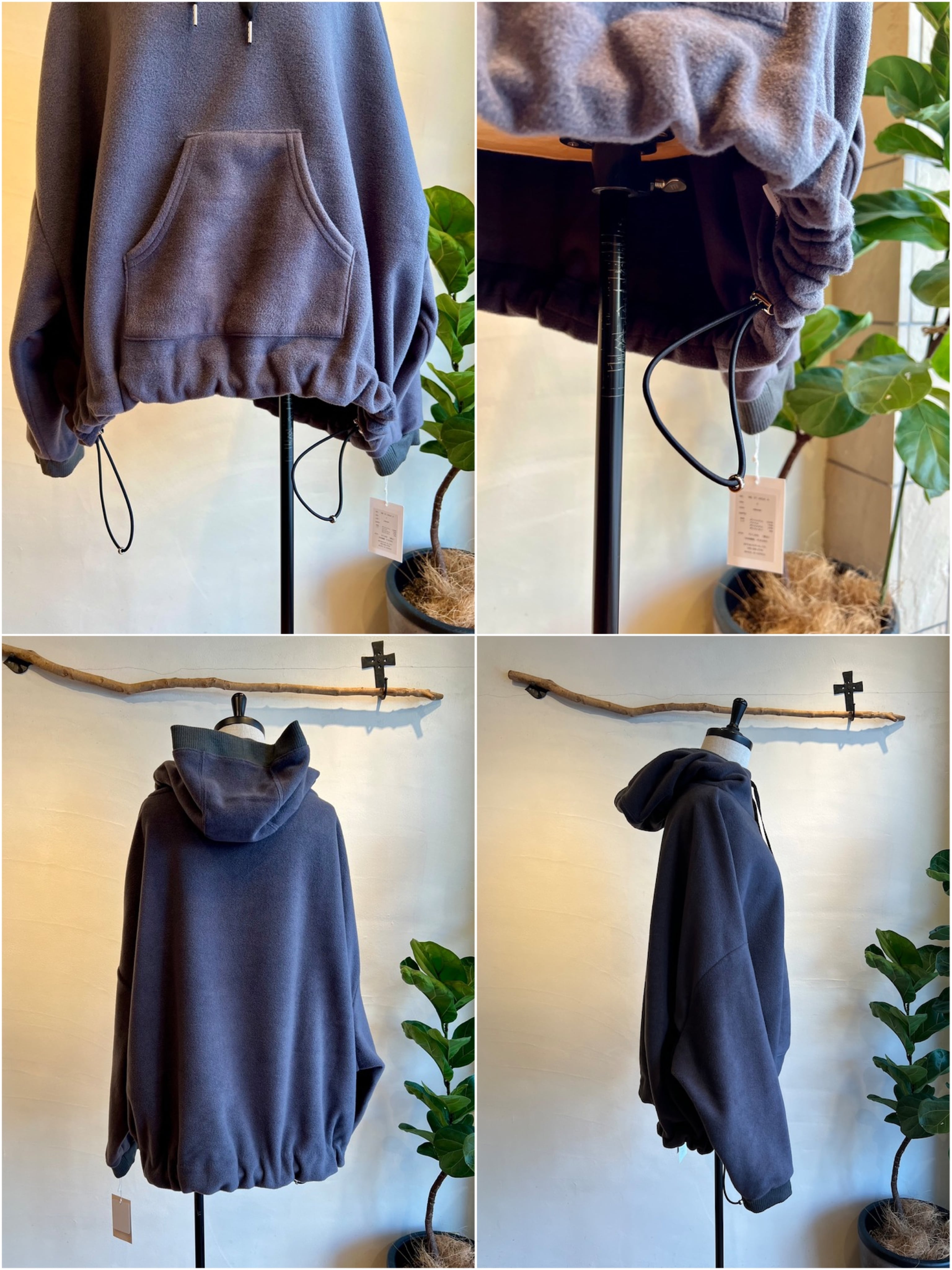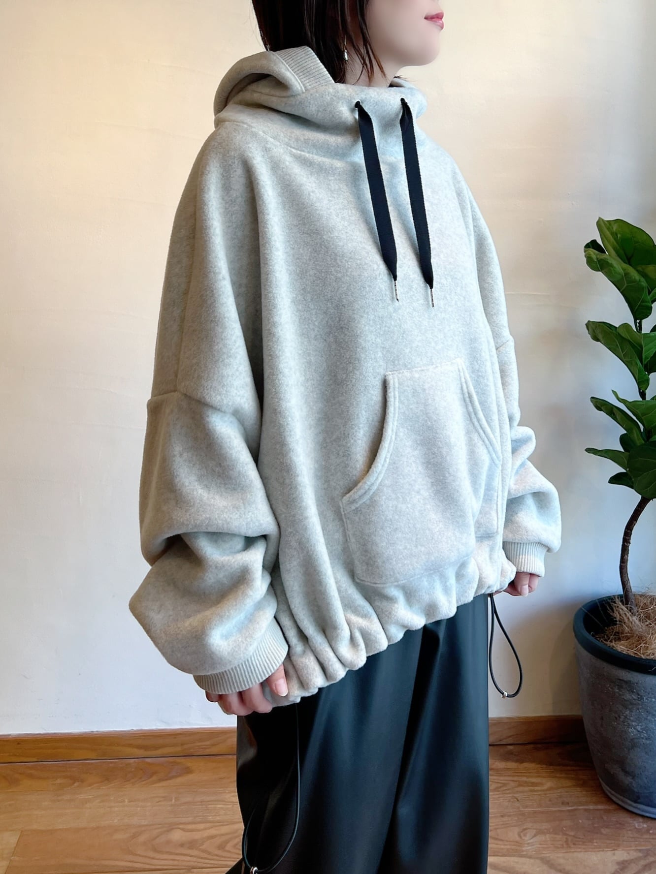 こだわりのデザインが詰まったふんわりと柔らかな質感のフーディー。裏起毛なのでとても暖かく、襟元が立ち襟になっている為、寒い冬も首元までしっかりと暖めてくれる。更に裾のドローコードを閉めて頂けば風も通さずコート要らずなほど暖かい一枚です。短すぎず腰が隠れる丈感ですがスカートにもよく合うデザインです。寒がりさんや、ニットは苦手な方にとってもおすすめです♪