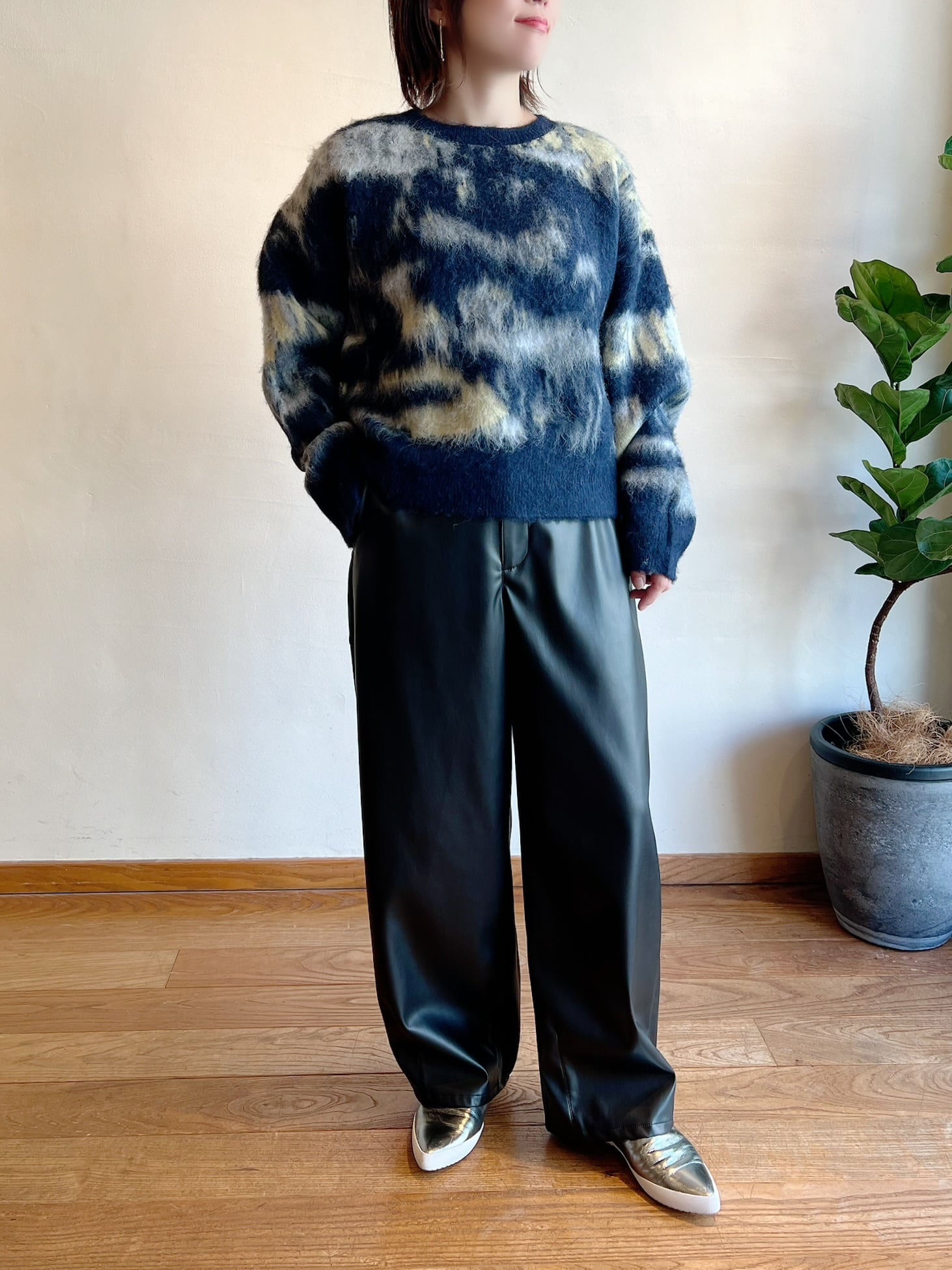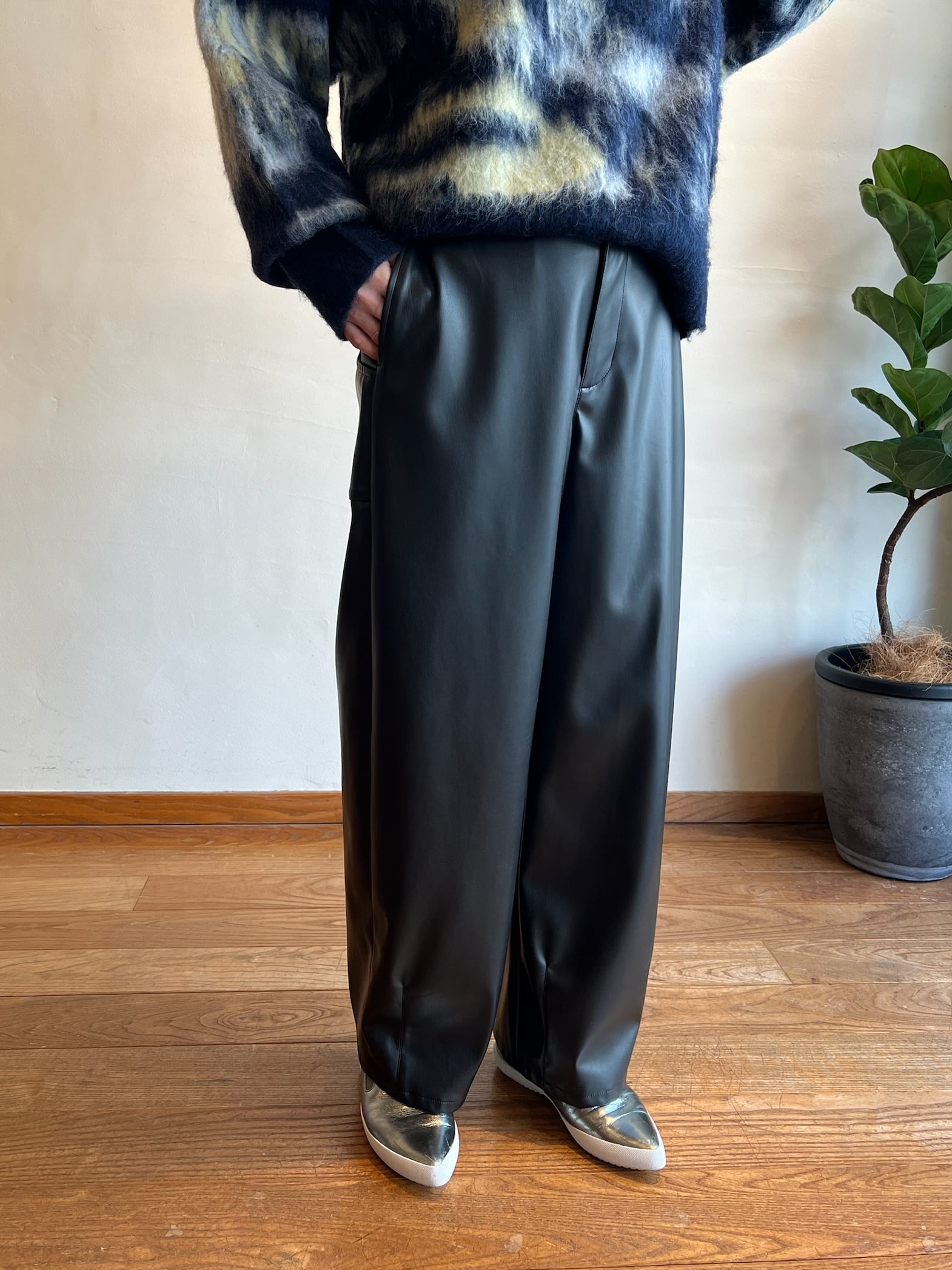 Srieee / フェイクレザーカーブパンツ