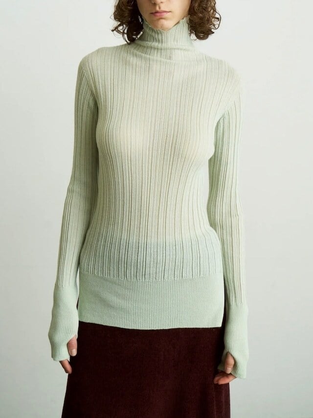 unfil / ロイヤル ベビー アルパカ ランダム リブ編みニット ハイネック P/O