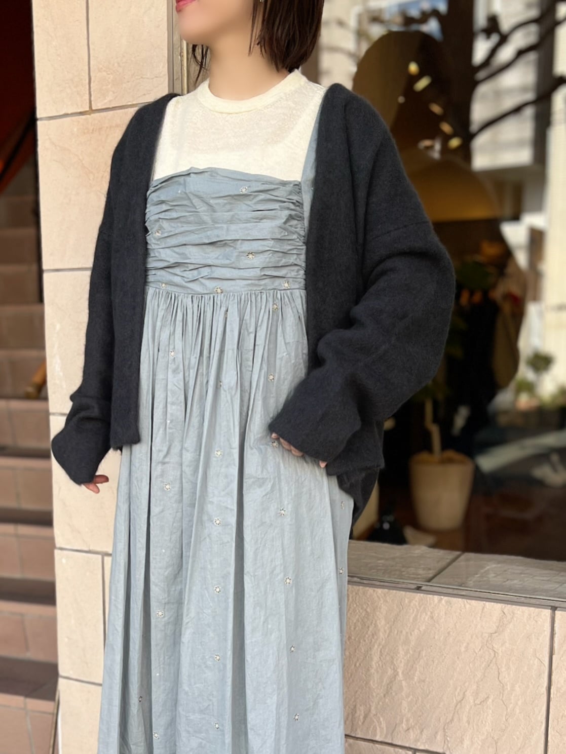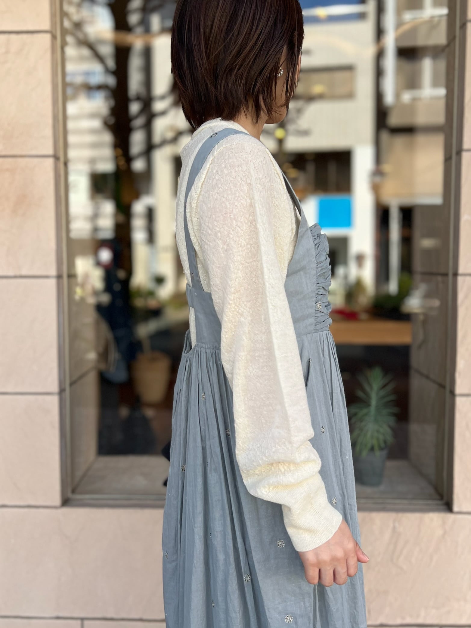 アルパカはペルーの標高3500〜5000mの高地で飼育されるラクダ科の動物です。その原毛は羊より柔らかく滑りのある風合いが特徴です。刈り取られた原料の中でもわずか1% 程しか取れないとされるロイヤルベビーアルパカを使い、極細番手に紡績した素材です。直接肌に触れてもチクチク感がなく、ストレスのない風合いに仕上がっています。(所々編み目に独特なヨレとシボ感が出ていますが素材ならではの特徴となりますのでご了承下さい)