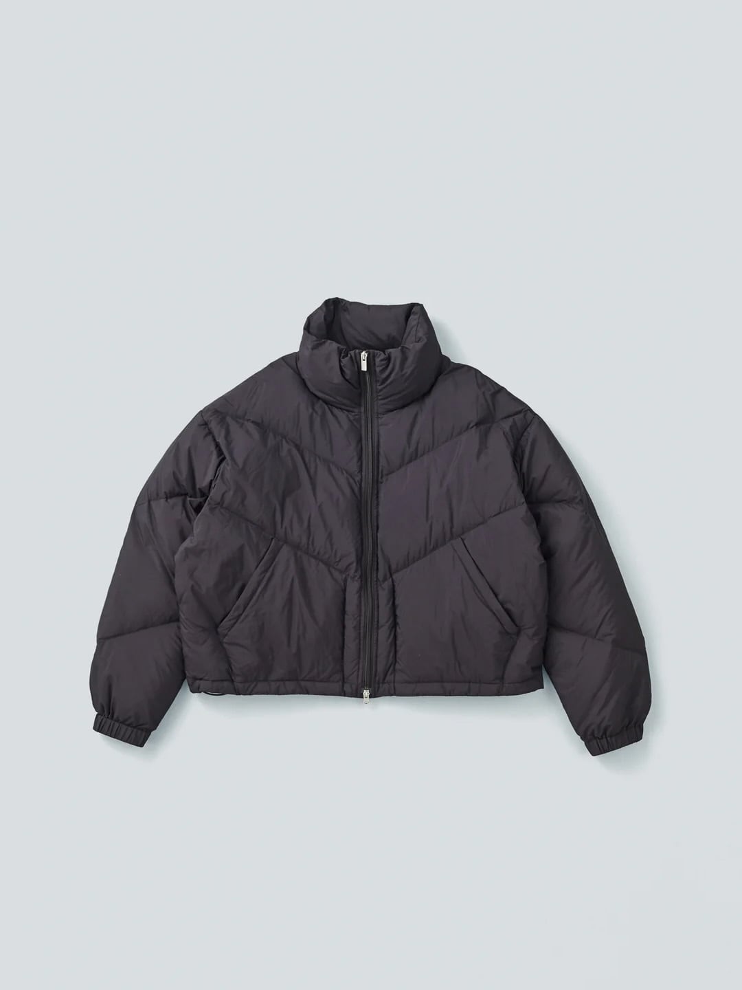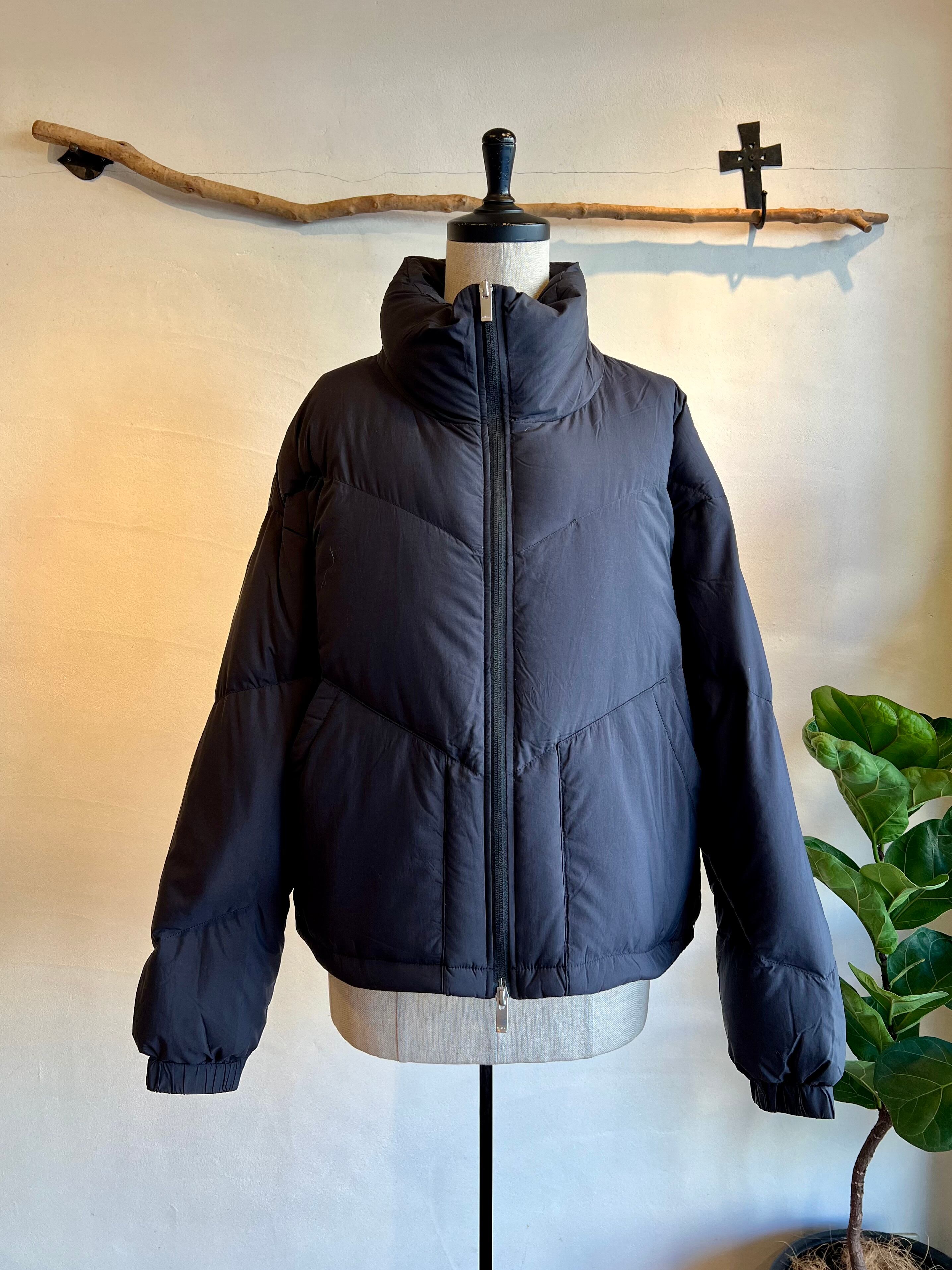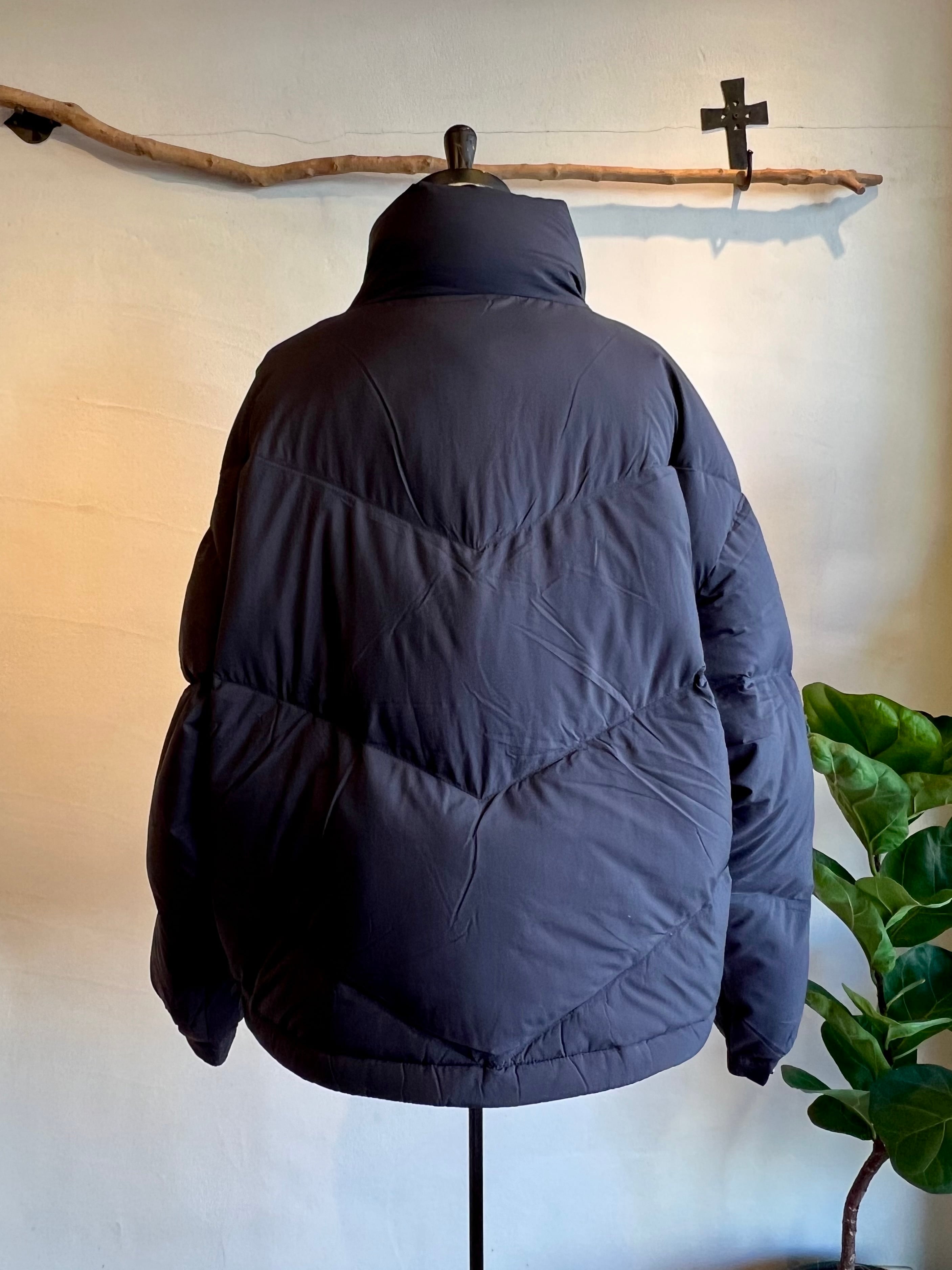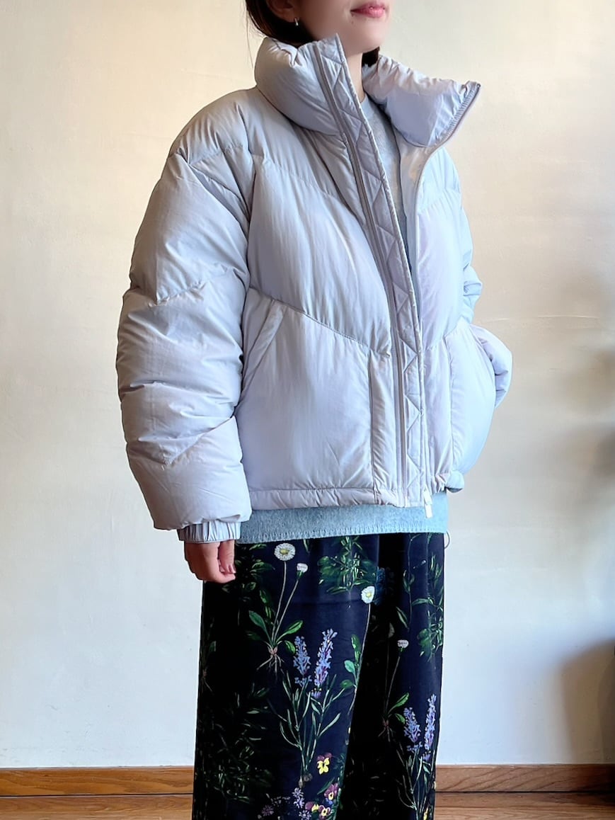 ゆったりとしたワイドスクエアシルエットのダウンジャケット。ボリューム感のあるスタンドカラーで、首元まで暖かく包み込んでくれます。上下から開閉できるダブルジッパーや斜めに入ったキルティングステッチなどスポーティーなディテールデザインですが、光沢を抑えたマットな素材感で上品な印象に仕上げました。袖口のドットボタン、裾のメタルストッパーでシルエットの調整が可能です。