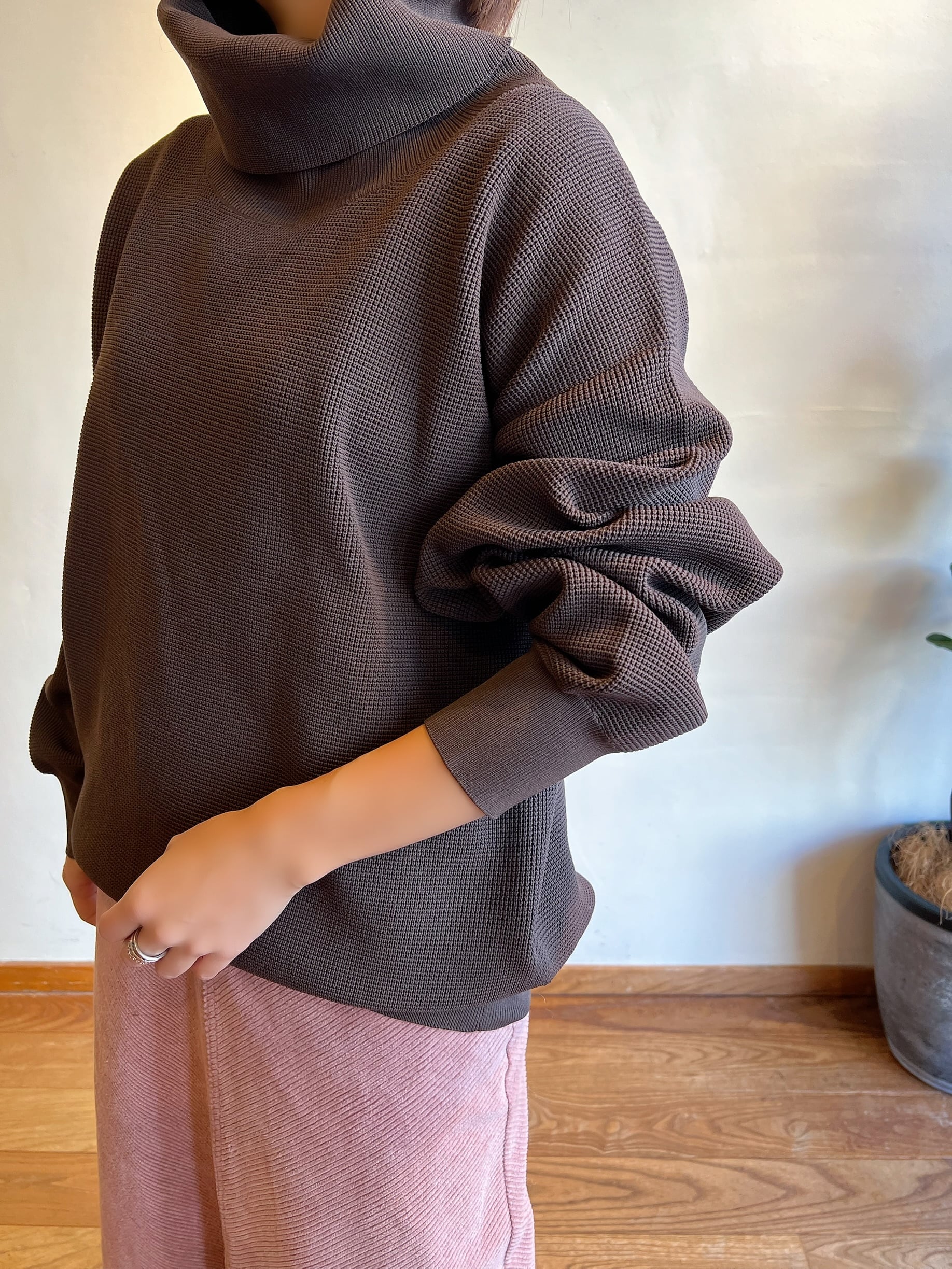 lelillと言えば・・・のハイテクリブニットシリーズ。昨年大人気ですぐに完売してしまったハイテクワッフタートルをベースに、今年はレイヤードしやすいように袖をスリム化。他のハイテクシリーズ同様、型崩れ、ピリングにも強く、おまけに洗濯機で洗える、まさにヘビロテするために生まれたタートルネックセーターに仕上げています。また、こちらは広い天幅と深い前下がりを持たせ、首が短い、首に生地が当たるのが苦手・・・・などのタートルに苦手意識を持ってる方でも着やすくデザインしているので、タートル初心者も含め、是非お試しして戴きたいモデルです。着た瞬間感じる、快適な軽さ、軽量速乾、ニットにありがちなピリングや型崩れが起こりにくく、ご自宅でお洗濯OK!