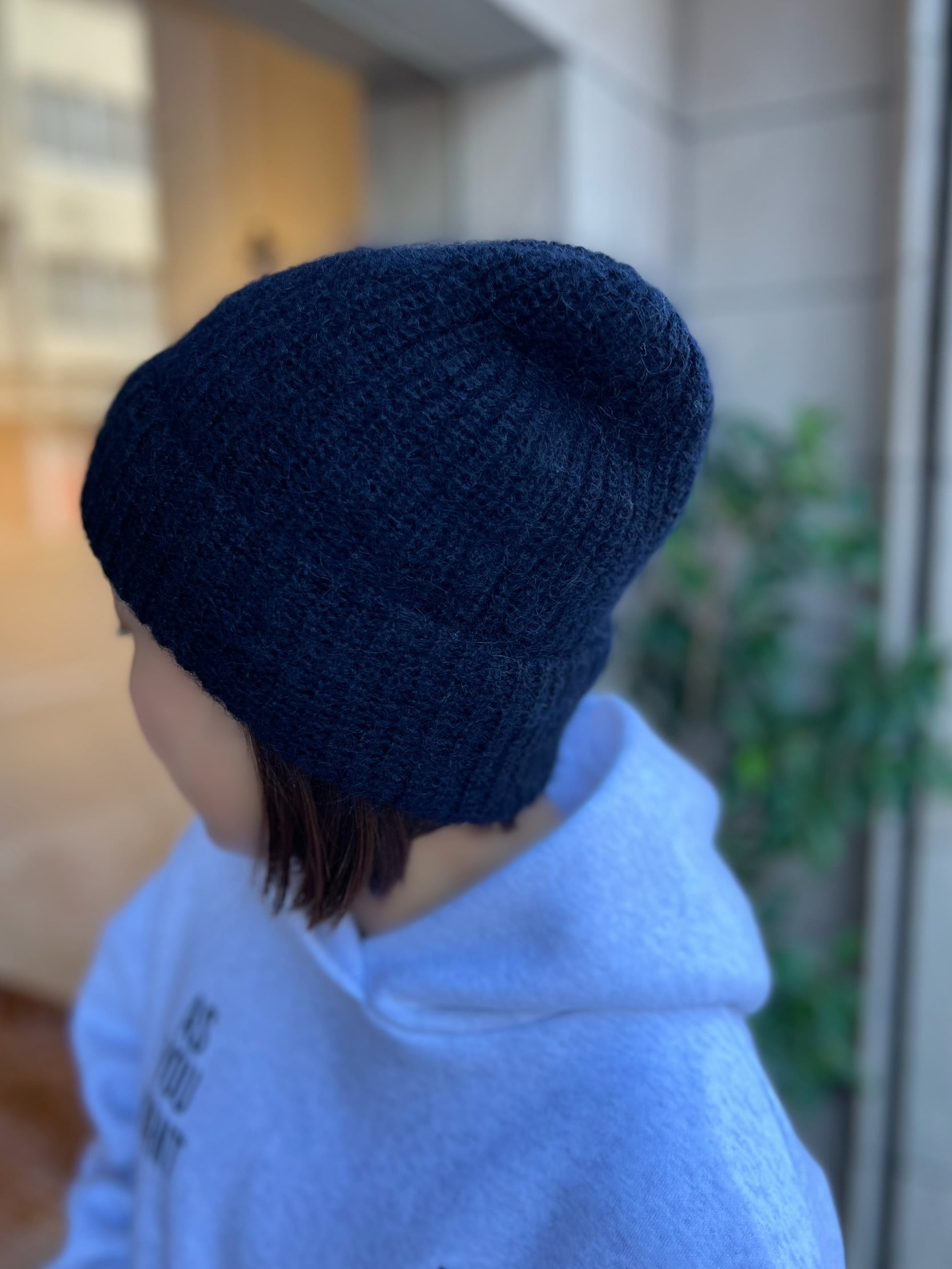 上質なキッドモヘヤを使用したニットビーニー。上質なモヘヤならではのヘアリーな表情が魅力。深い折り返しがポイントで、旬なムードを演出してくれます。コーディネイトにプラスするだけでこなれたスタイリングに昇華させてくれるアイテムです。