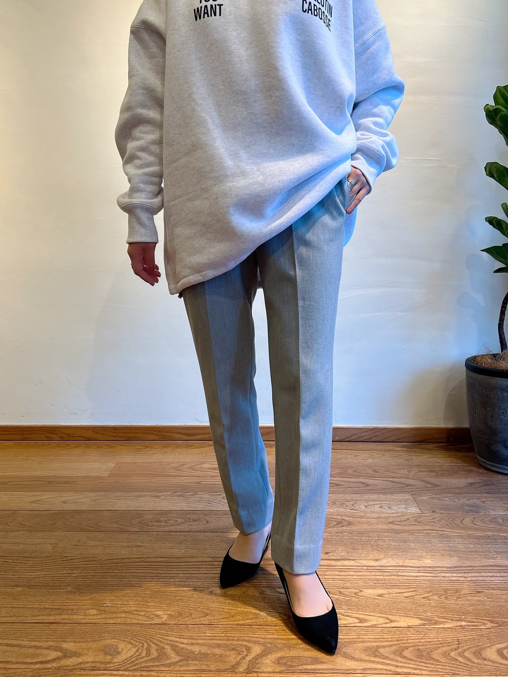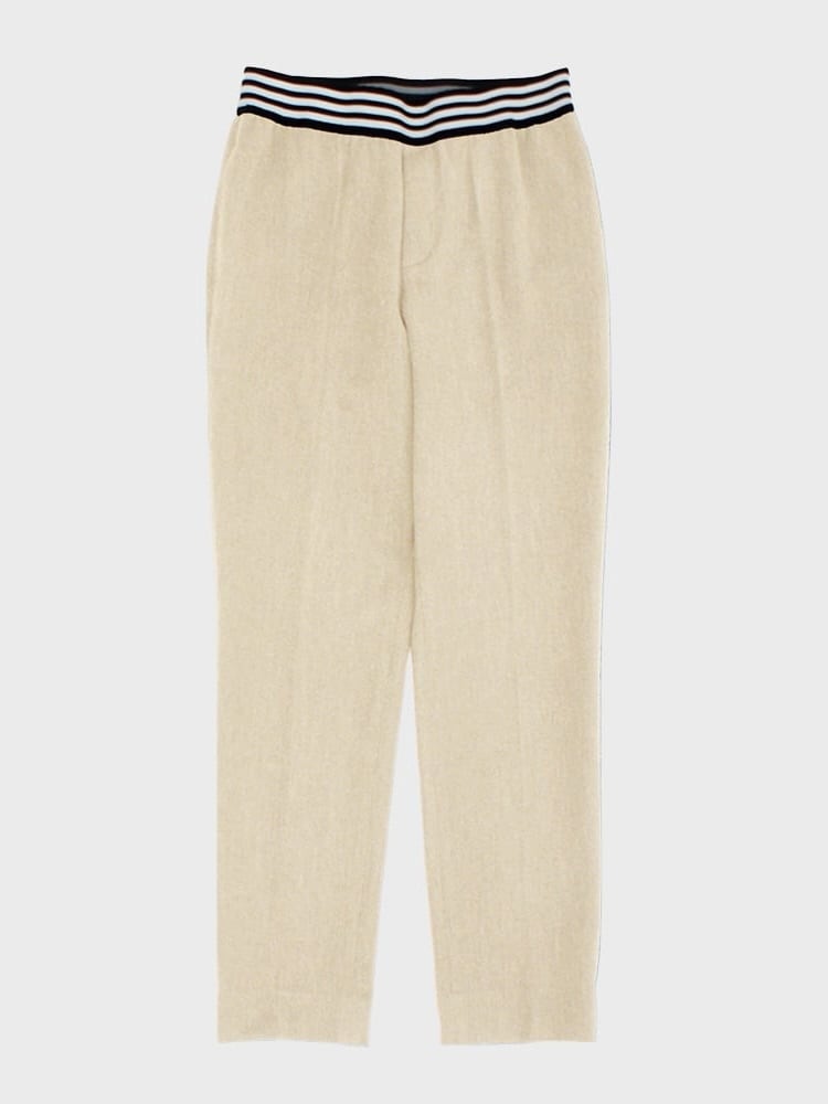 カジュアルにもきれいめにも着て頂けるオールラウンダーパンツ。特性である軽さ、そしてストレッチがありながら身体のラインを拾いにくいパーフェクトな素材。ウエスト部分にボーダーゴムを採用しており、ストレスフリーなのはもちろん、見えても可愛いデザインです。どんなコーディネートにも使える、安心して着用して頂ける間違いのないパンツです。