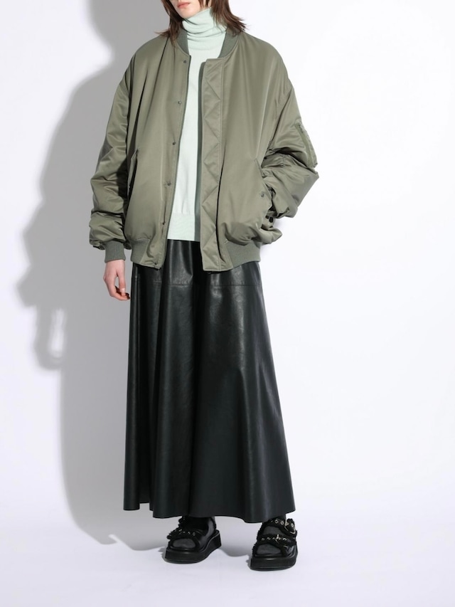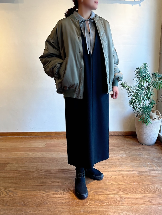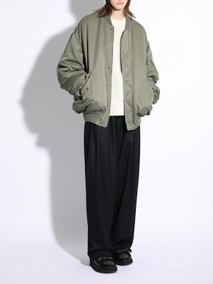 高密度に織り上げられた程よい肉感としなやかさを持ち合わせ、美しい光沢感が特徴のツイル素材を使用したフライトジャケット。メンズのフライトジャケットを思わせるオーバーシルエットで仕立てた一着はモード感をともなうクラスカジュアル感が魅力です。シームパッカリング縫製でヴィンテージ感のある表情を生み出し、衿や袖口、裾には上質なウール混リブを採用した、細部にまでこだわった唯一無二の一着です。