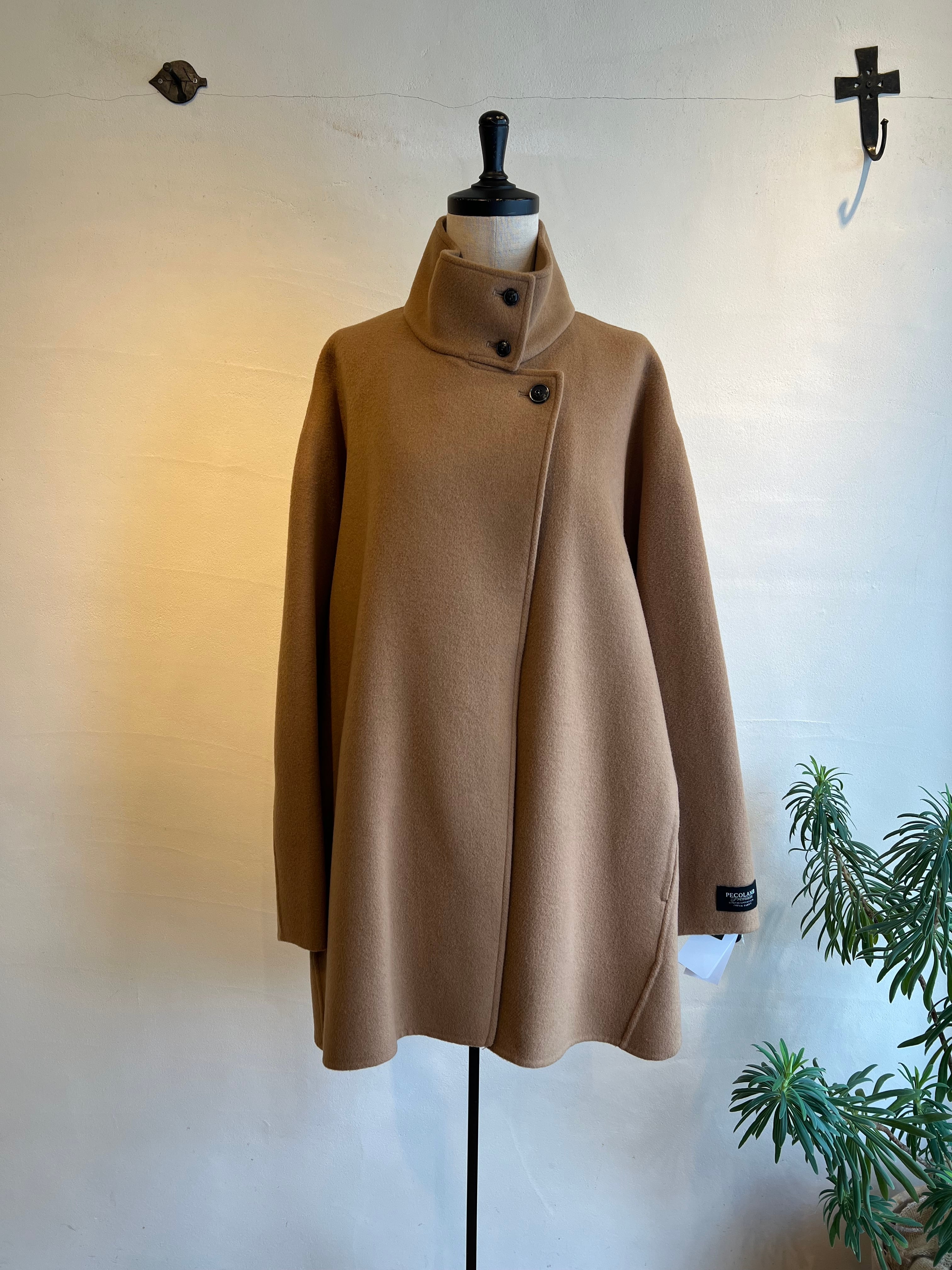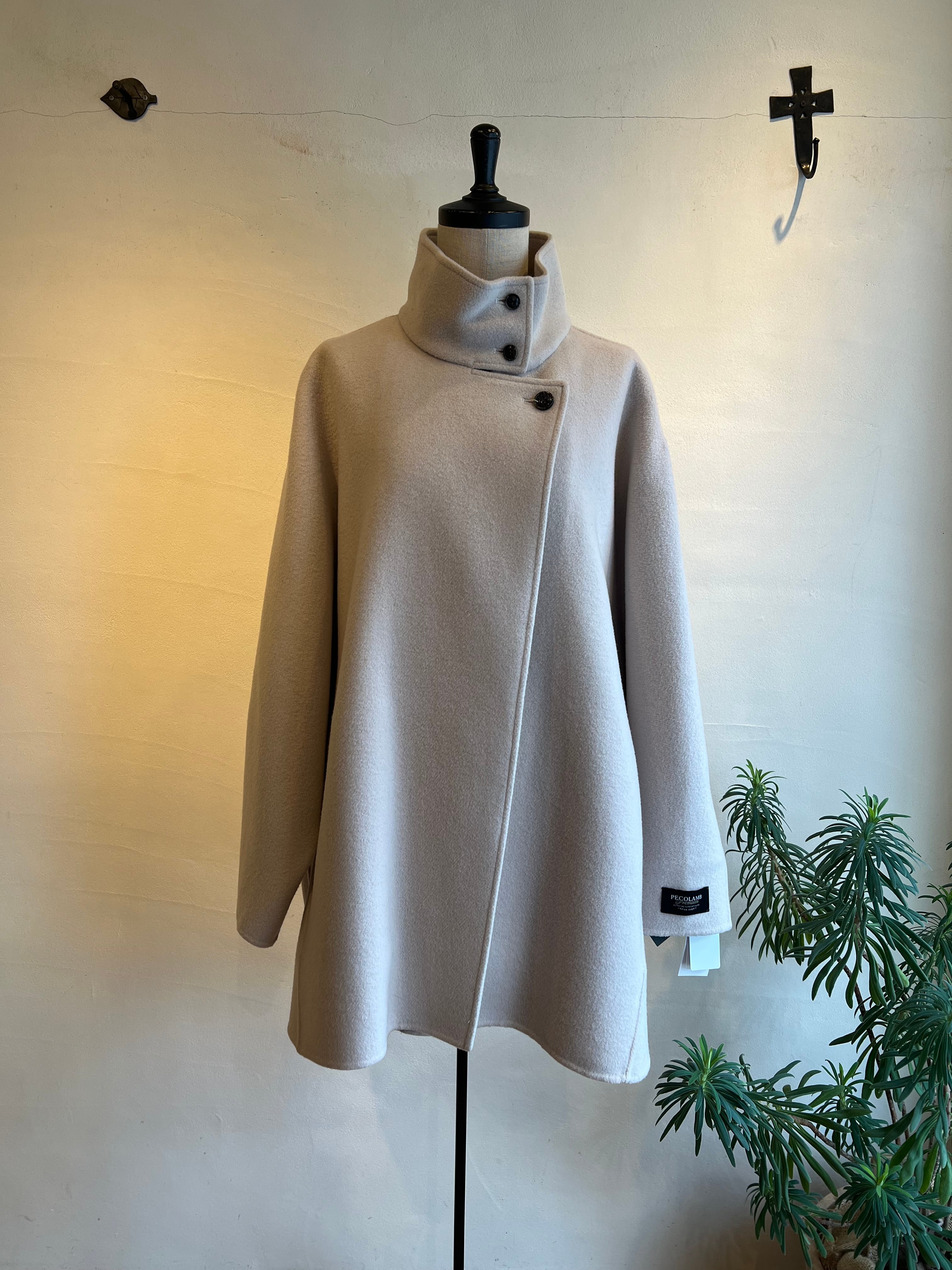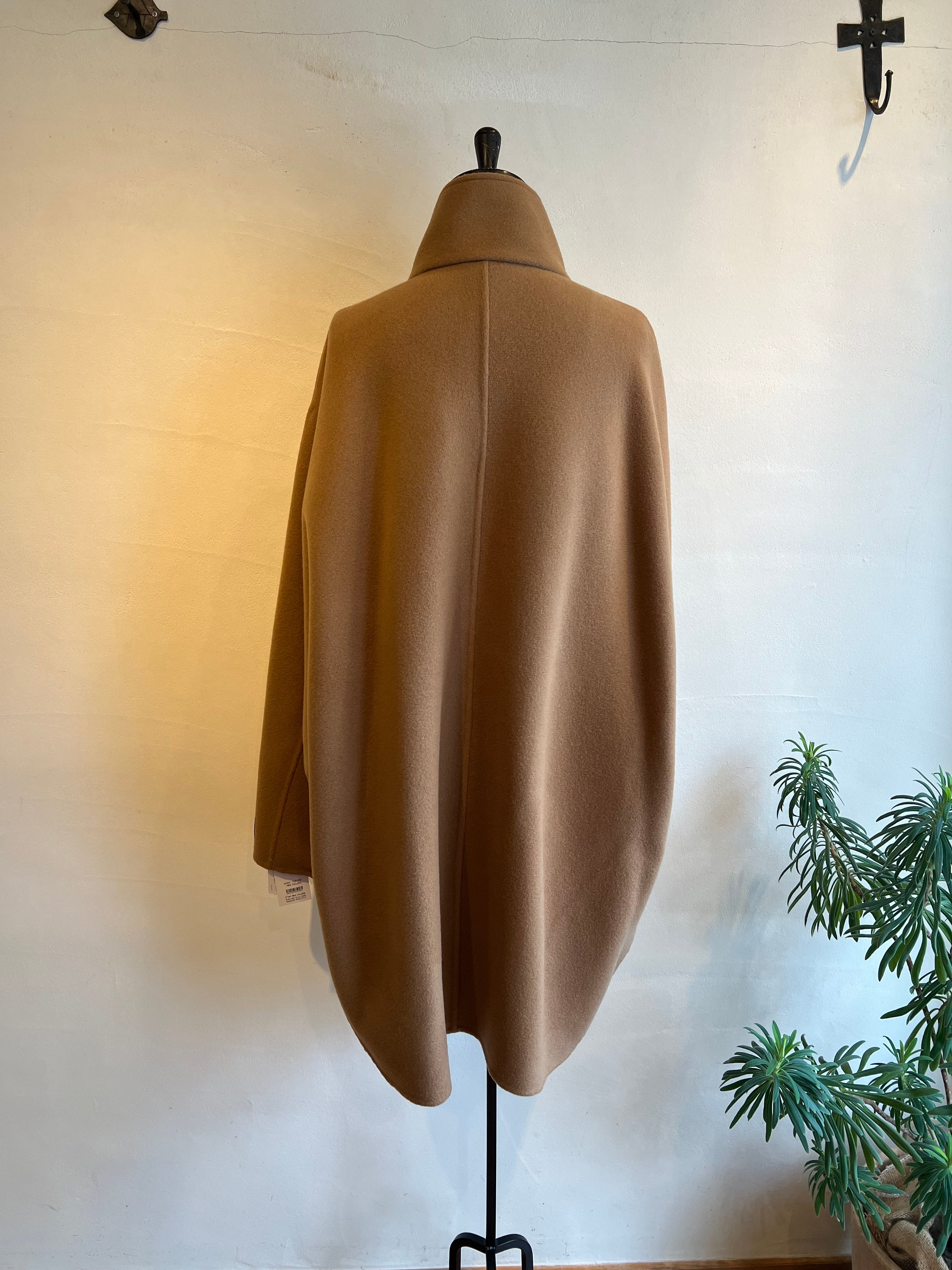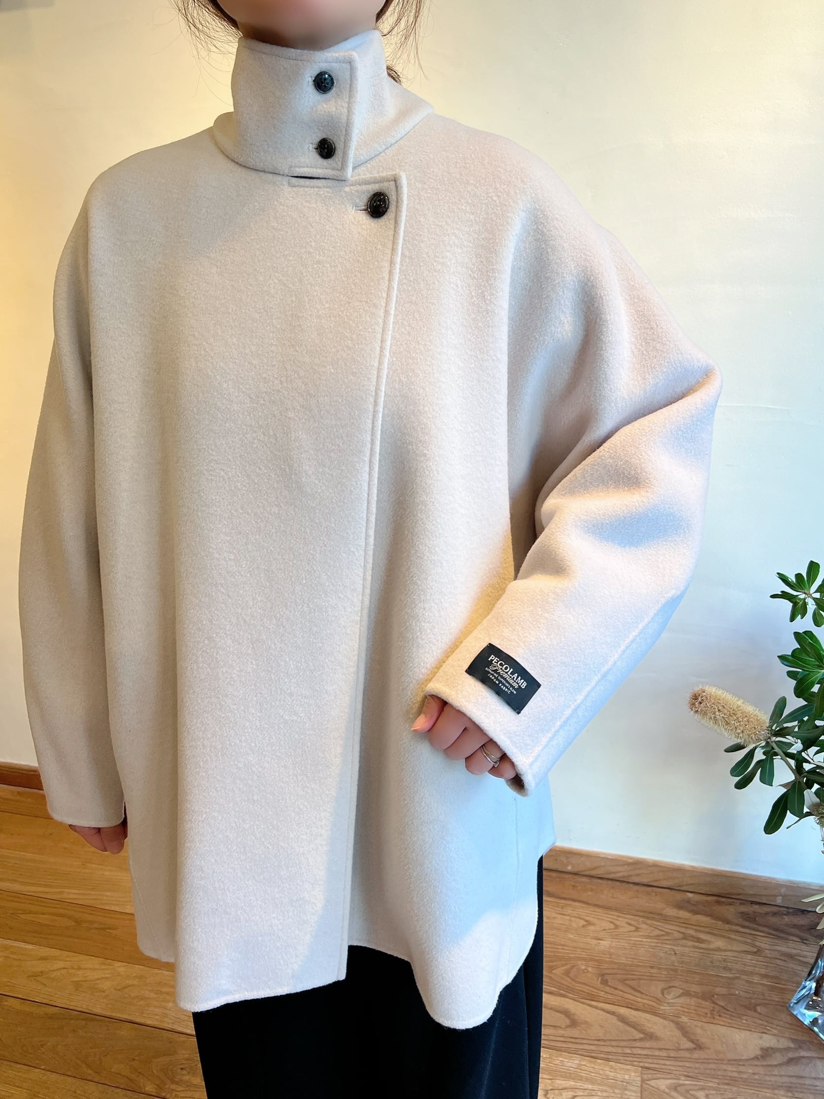柔らかなウールを使ったダブルフェイスのドルマンコート。 さりげないエレガンスを持ちながら、軽やかでありながら暖かさを実現。リラックスしたシルエットは、どんなスタイルにもフィットし、着こなしの幅を広げてくれます。大きなドルマン袖が特徴で、ゆったりとした着心地が魅力的です。衿元や裾のデザインもポイントになっており、カジュアルなスタイルにもフォーマルなシーンにも活躍します。