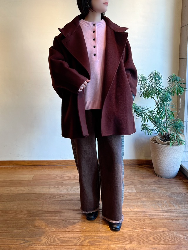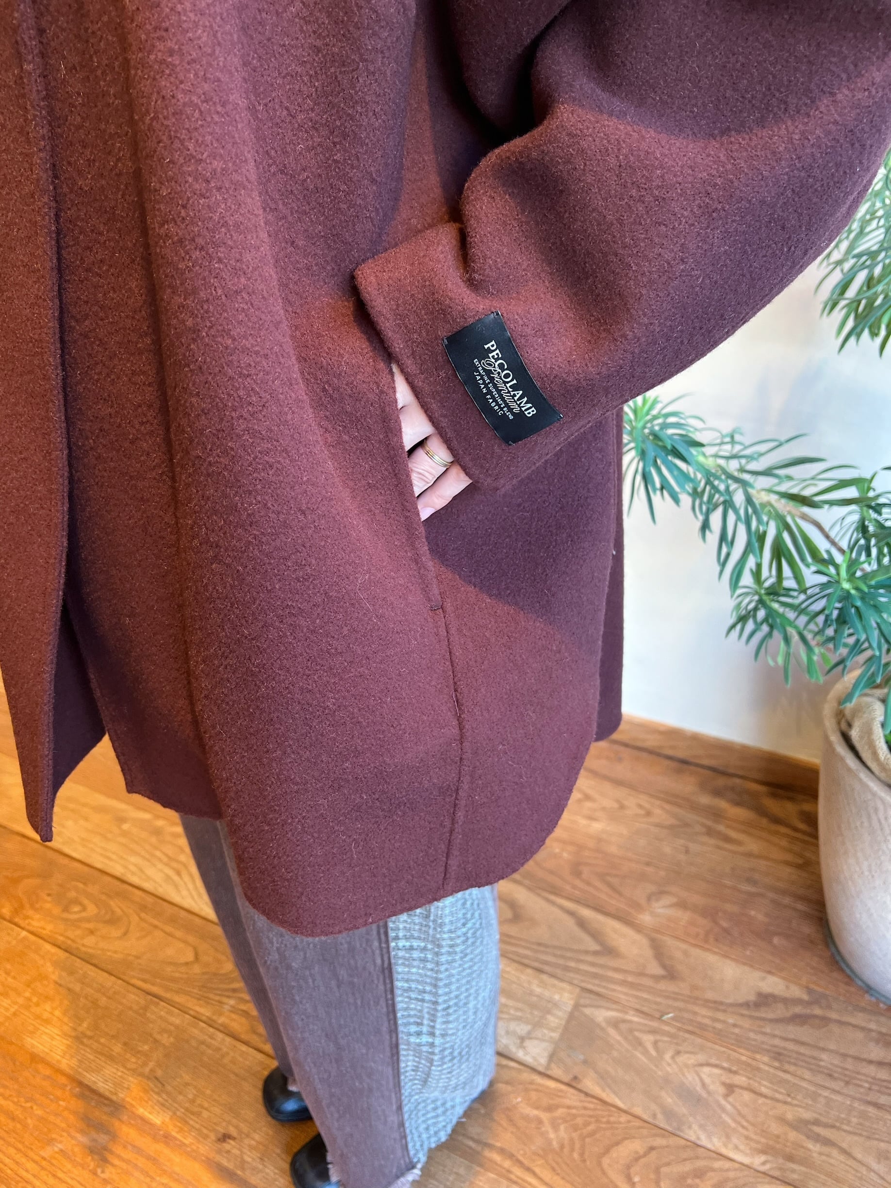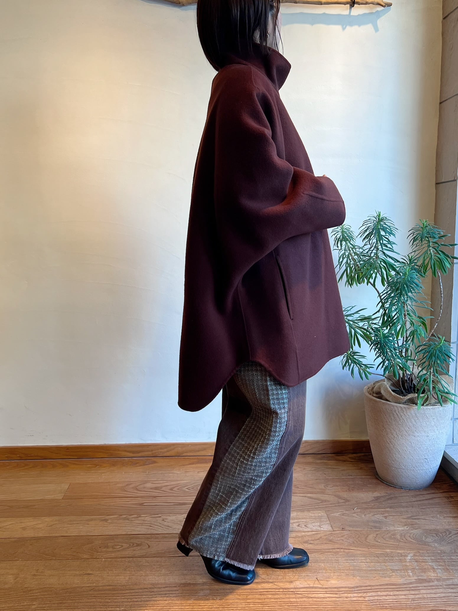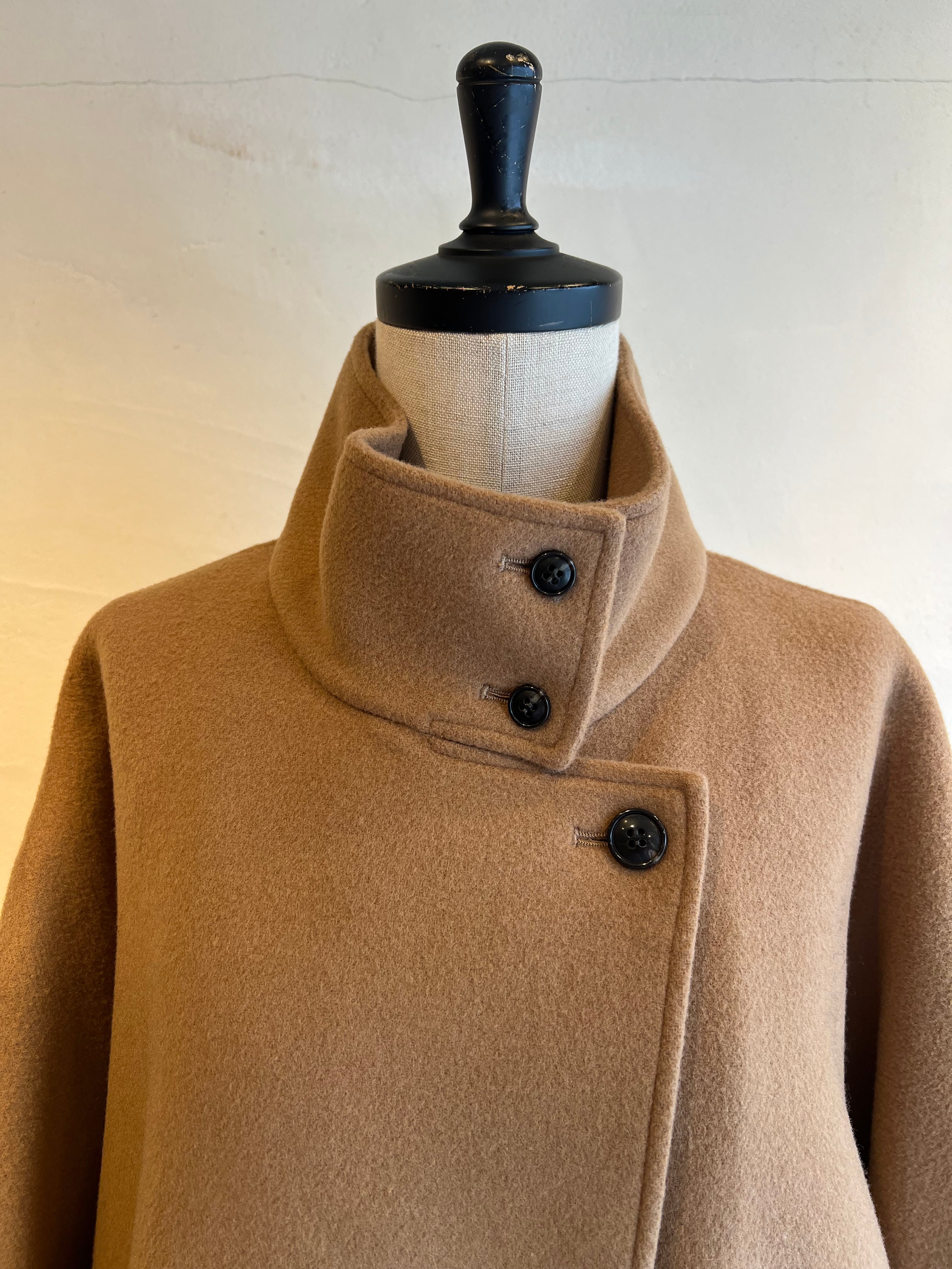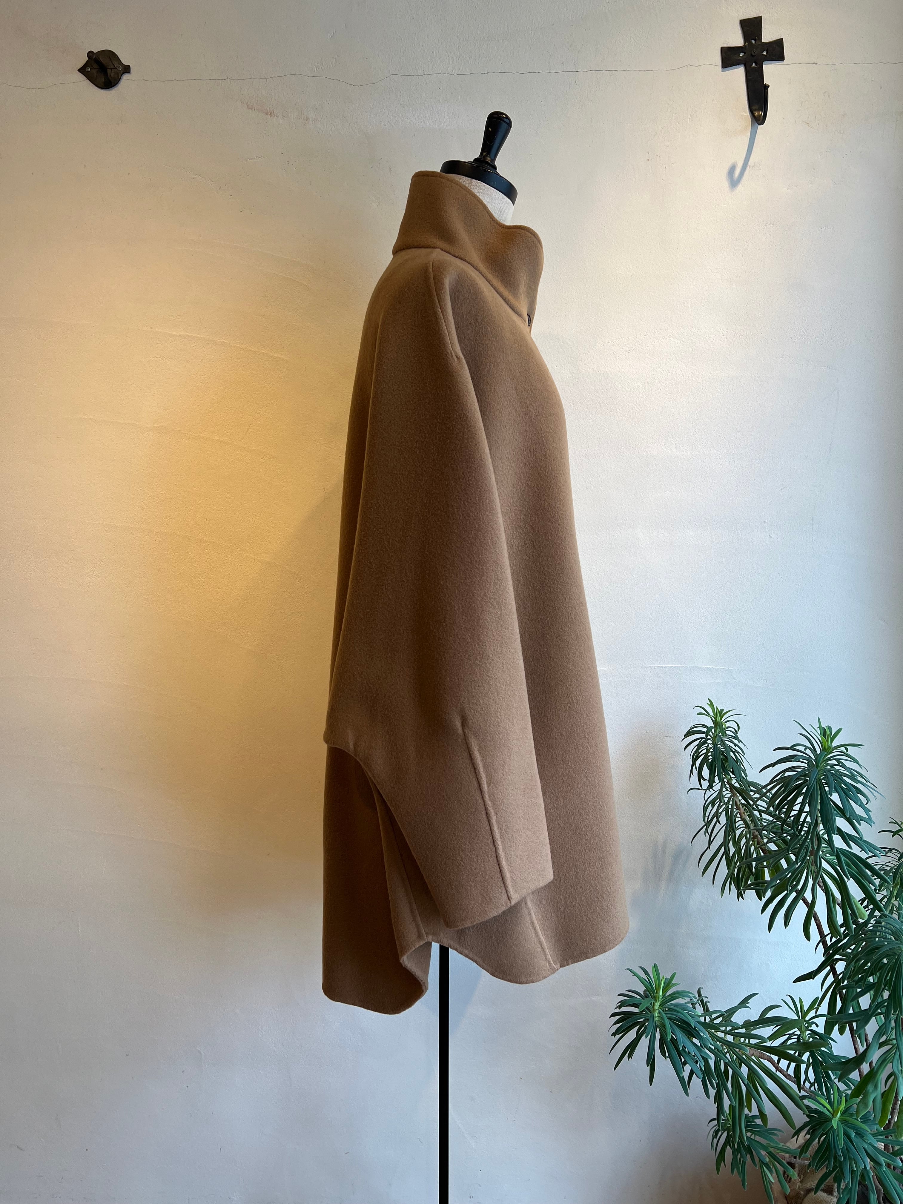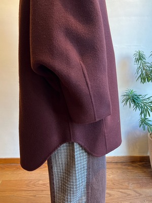 柔らかなウールを使ったダブルフェイスのドルマンコート。 さりげないエレガンスを持ちながら、軽やかでありながら暖かさを実現。リラックスしたシルエットは、どんなスタイルにもフィットし、着こなしの幅を広げてくれます。大きなドルマン袖が特徴で、ゆったりとした着心地が魅力的です。衿元や裾のデザインもポイントになっており、カジュアルなスタイルにもフォーマルなシーンにも活躍します。