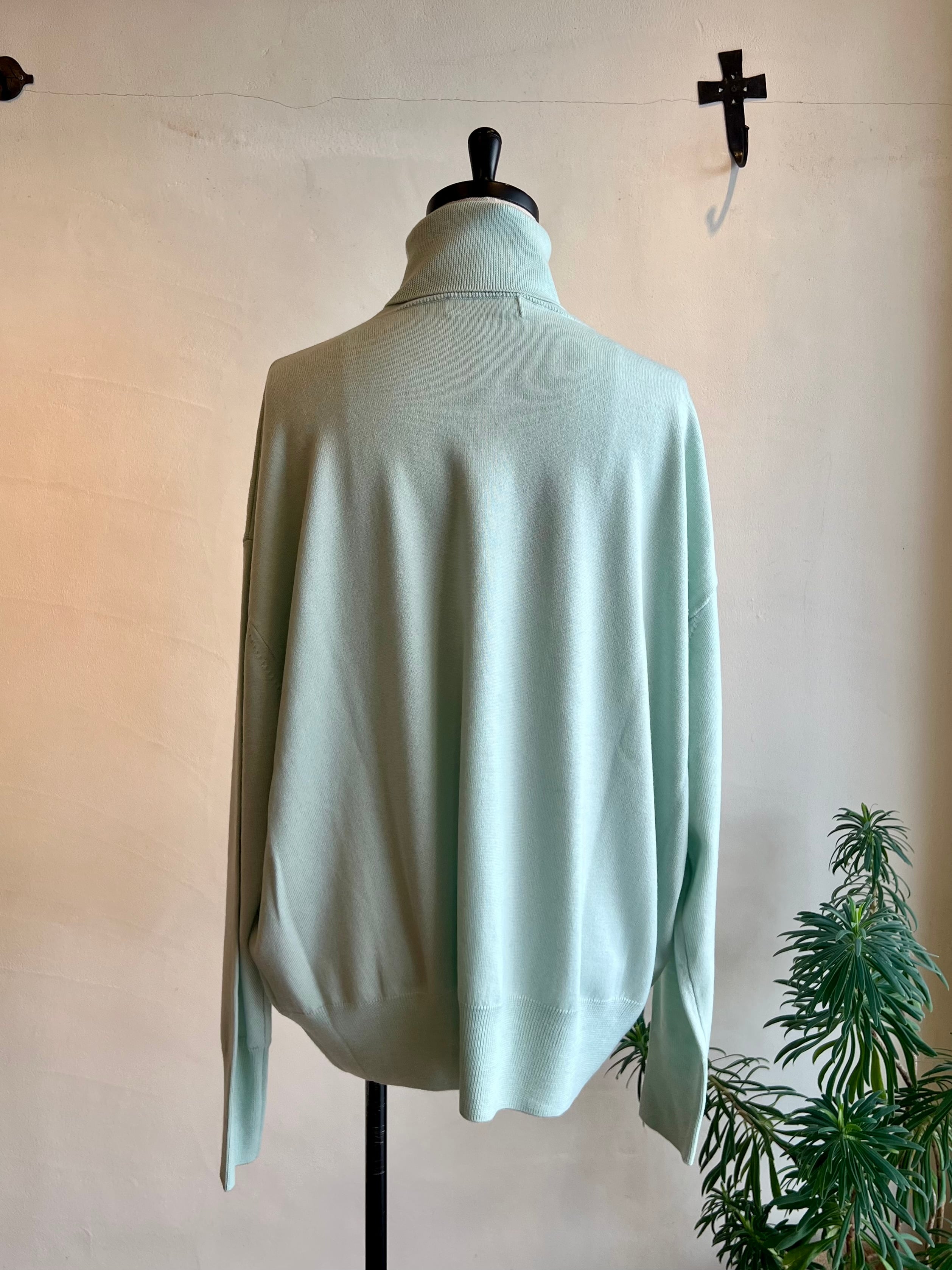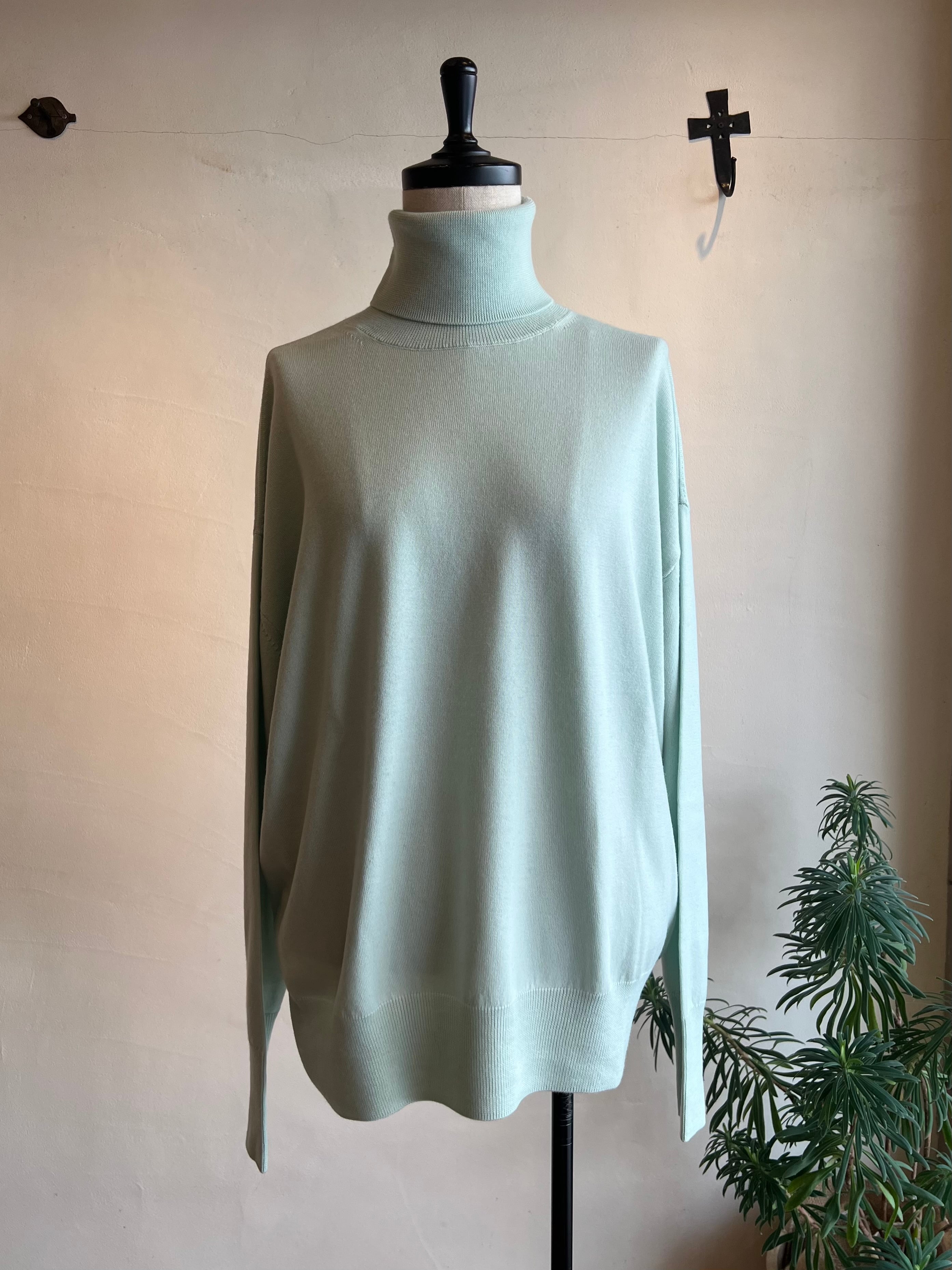 柔らかく滑らかな風合いが特徴の上質なエクストラファインメリノウールを使用したタートルネックニット。絶妙なゆとりのオーバーサイズ感と、冬から初春に向けて映えるカラーリングがポイント。単品使いはもちろん、レイヤードスタイルのインナーとしても幅広い着こなしに活躍する一着です。