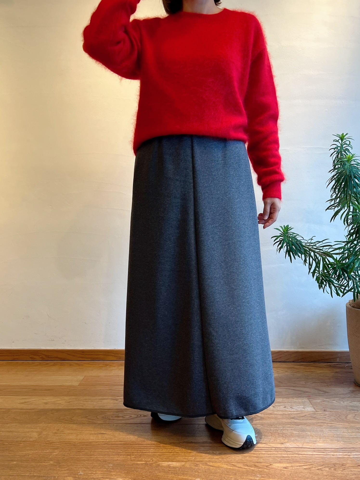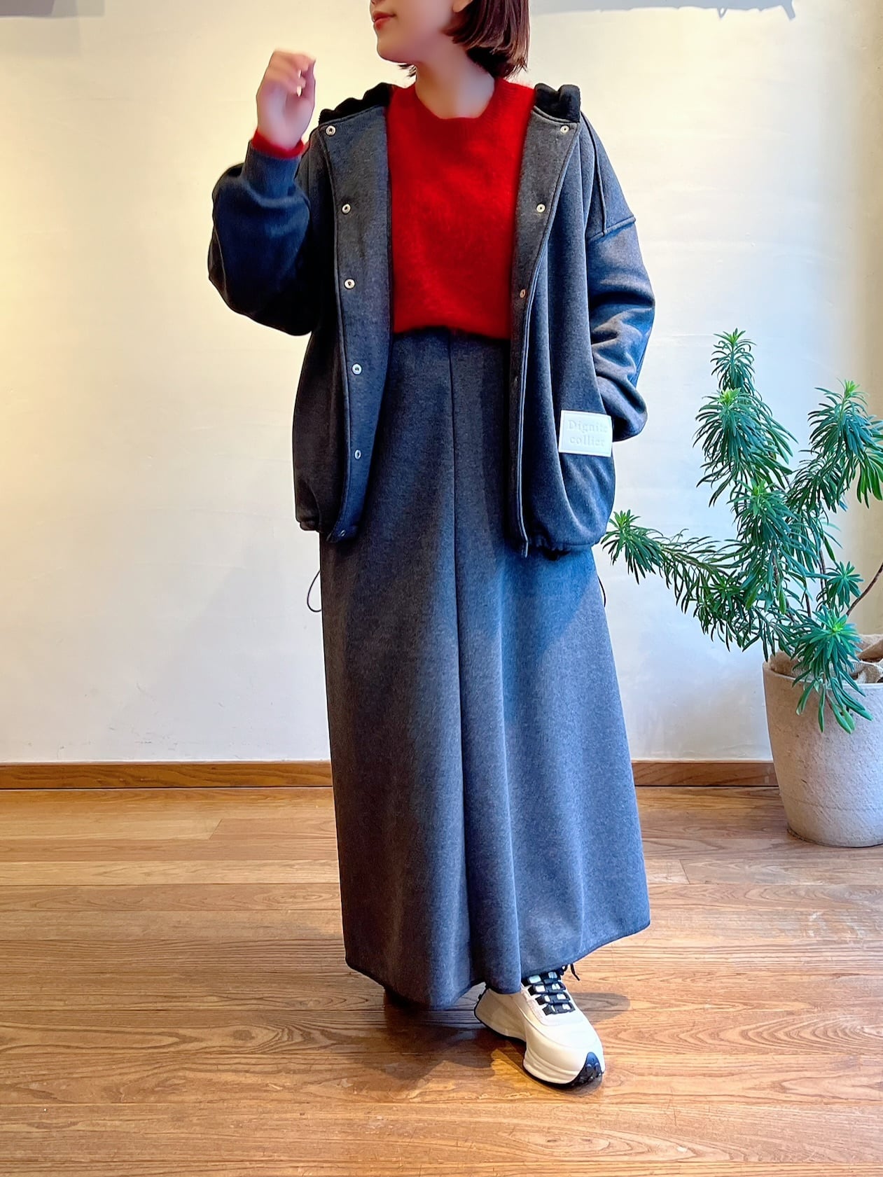 フレアシルエットですがセンターラインが入っている為、縦にスッキリ見えします。