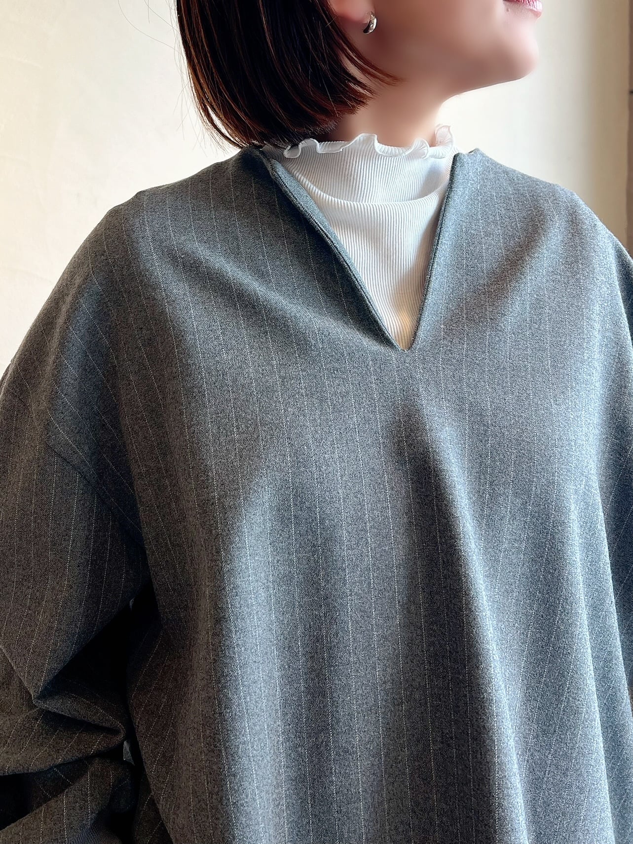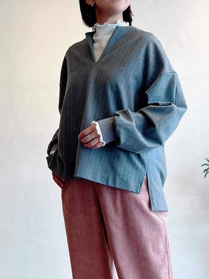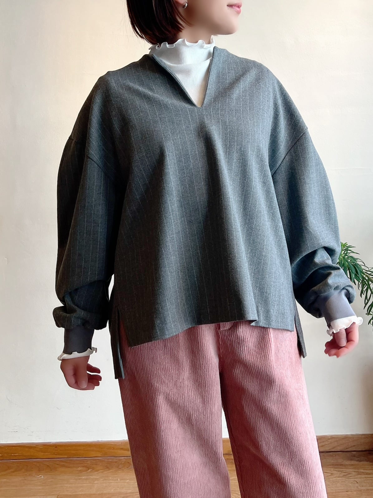 ソフト起毛のストレッチ性に優れた生地を使用したプルオーバーは、柔らかな肌触りと快適な着心地を実現します。体のラインを優しく包み込み、リラックスした雰囲気を演出。季節を問わず楽しめるシンプルなデザインで、どんなコーディネートにもマッチします。